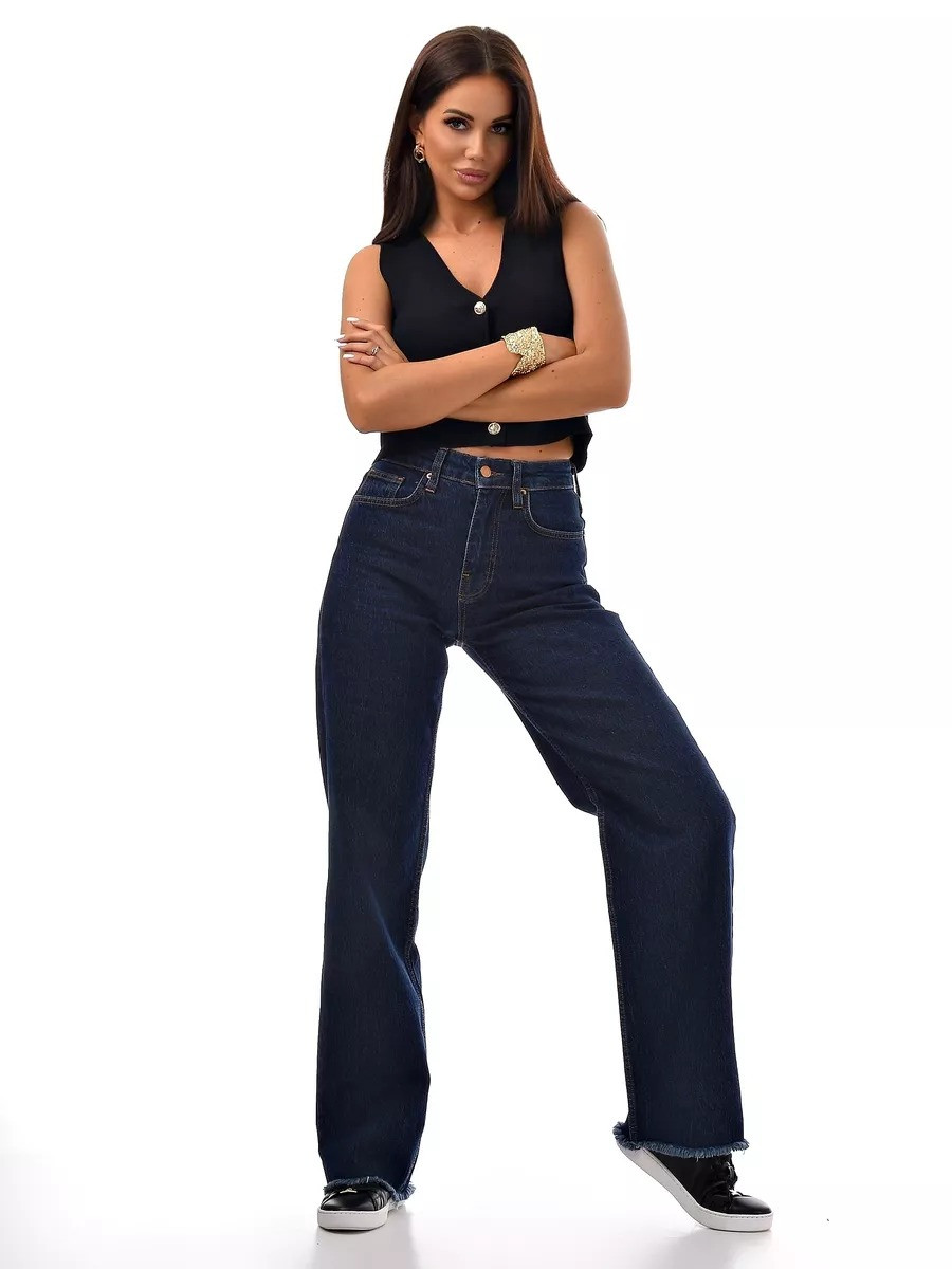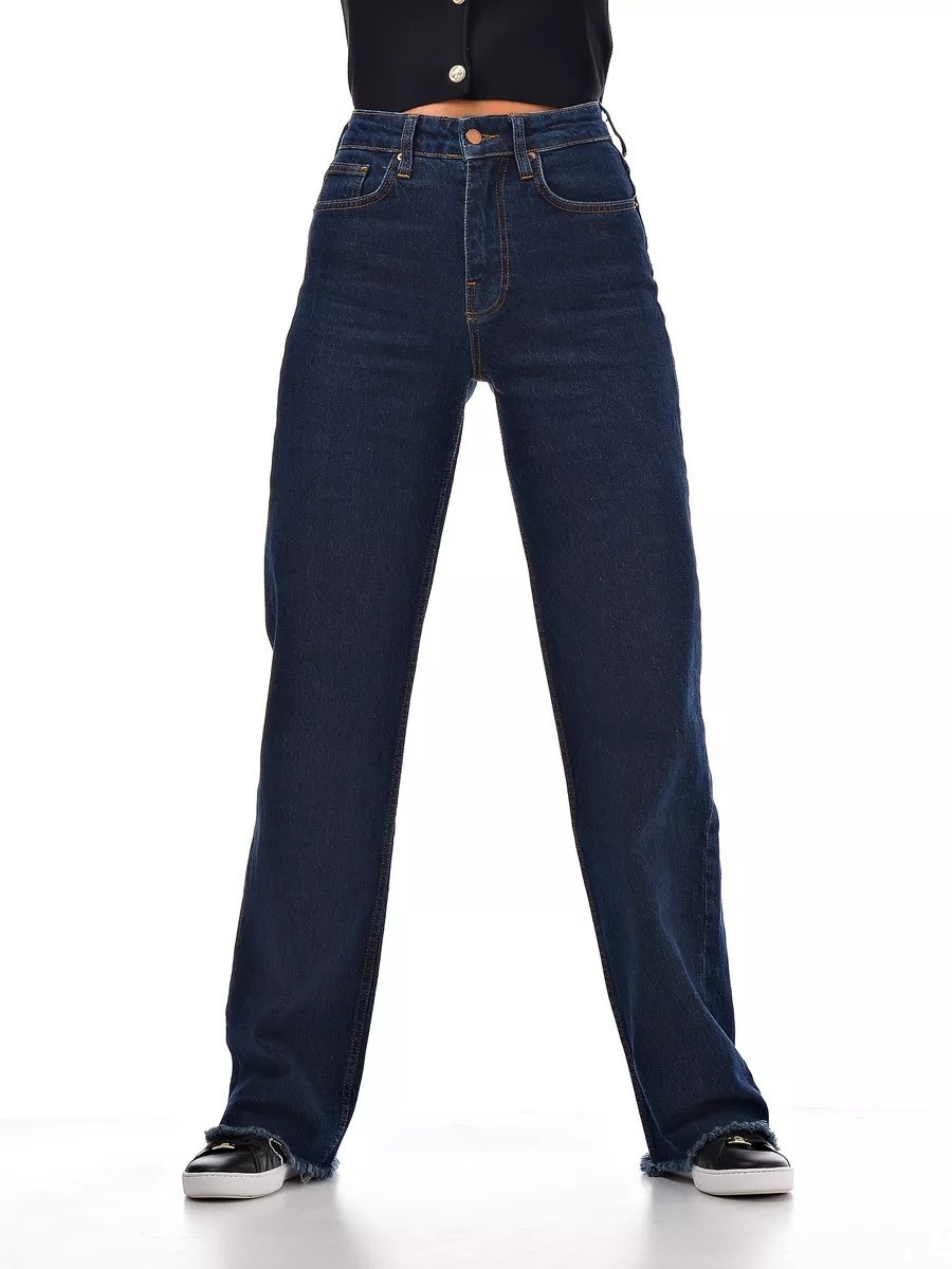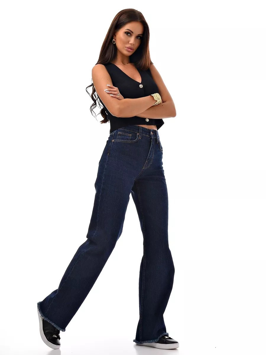 Базовый синий цвет + модная бахрома = джинсы, которые будут актуальны всегда. Высокая посадка подчеркивает фигуру, а плотный турецкий деним держит форму идеально.