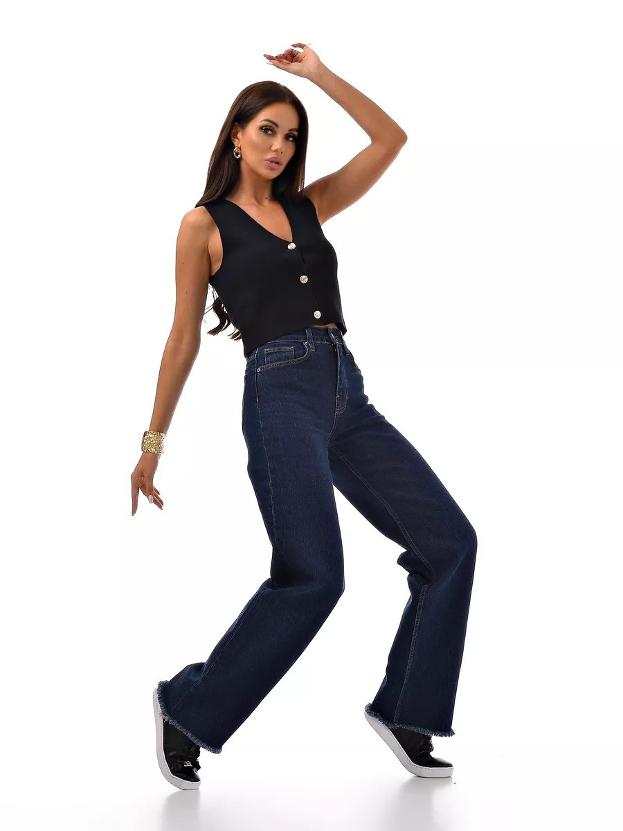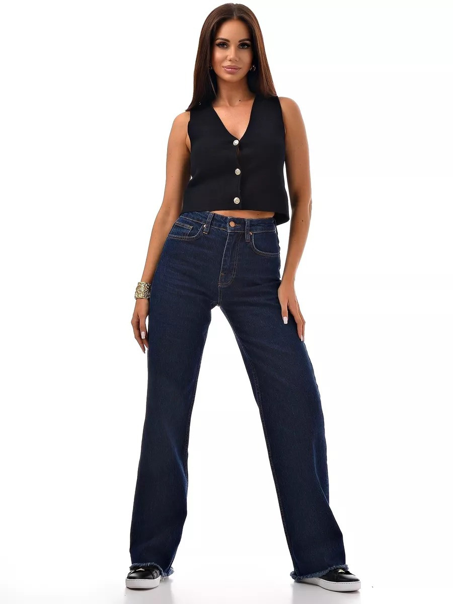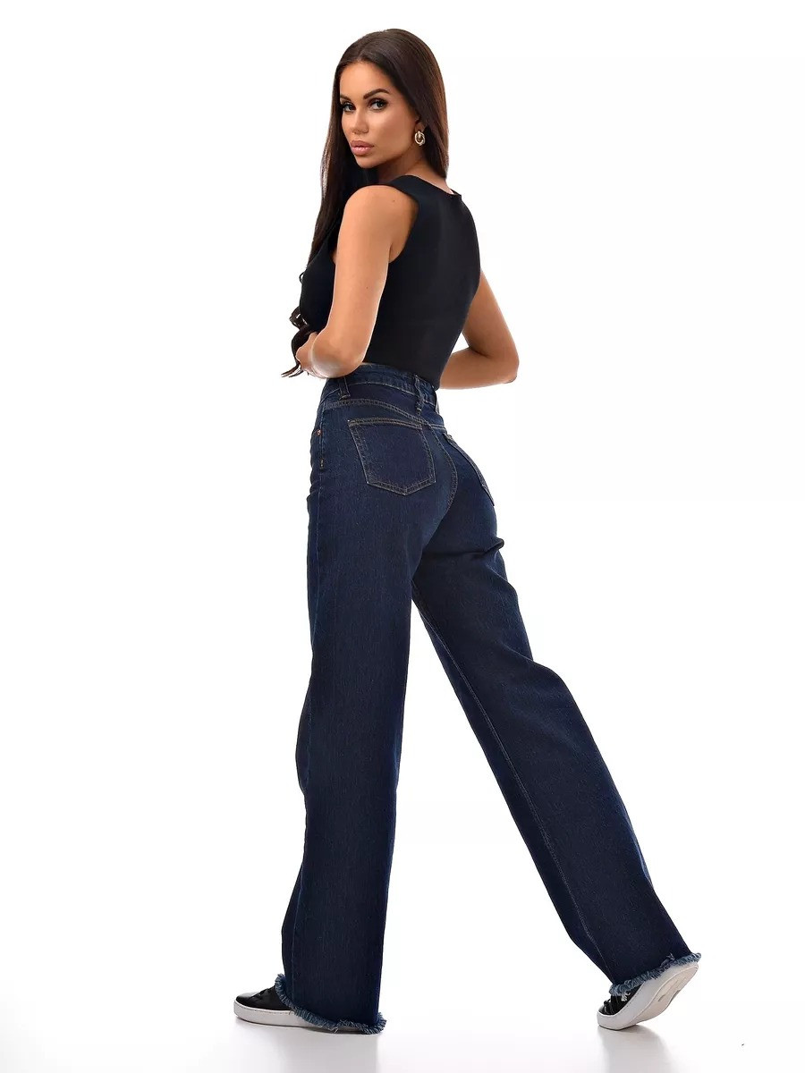 Базовый синий цвет + модная бахрома = джинсы, которые будут актуальны всегда. Высокая посадка подчеркивает фигуру, а плотный турецкий деним держит форму идеально.