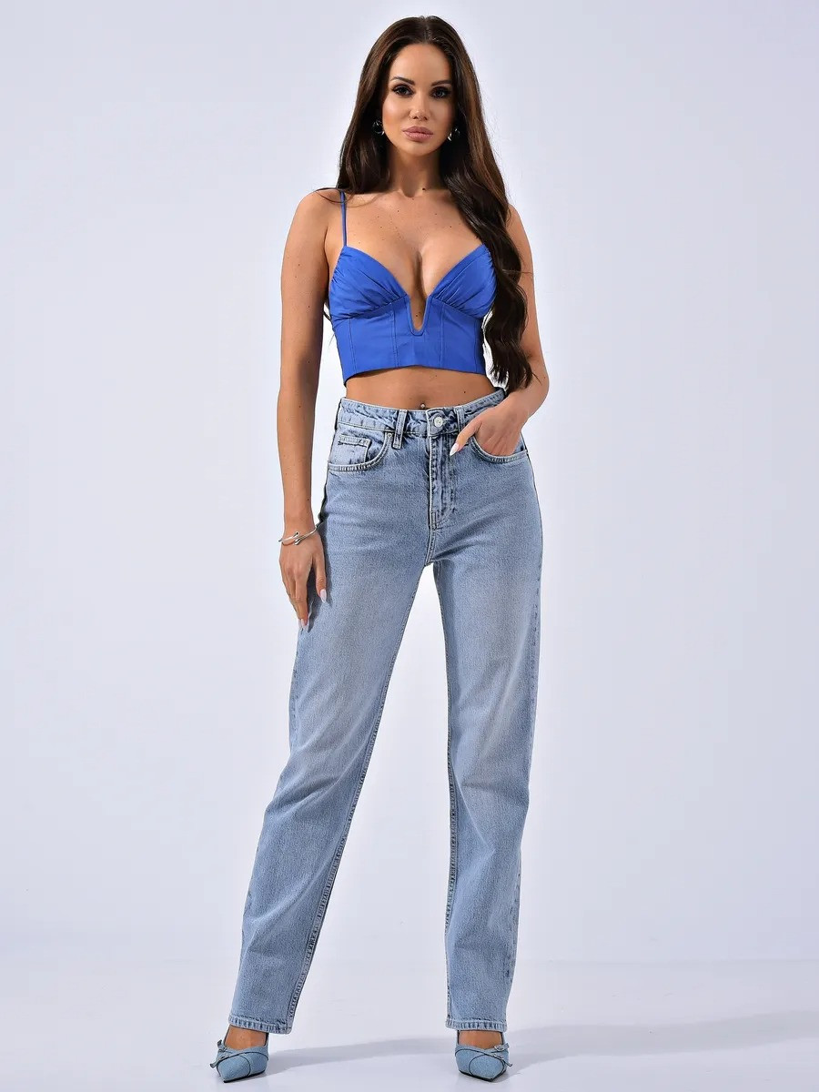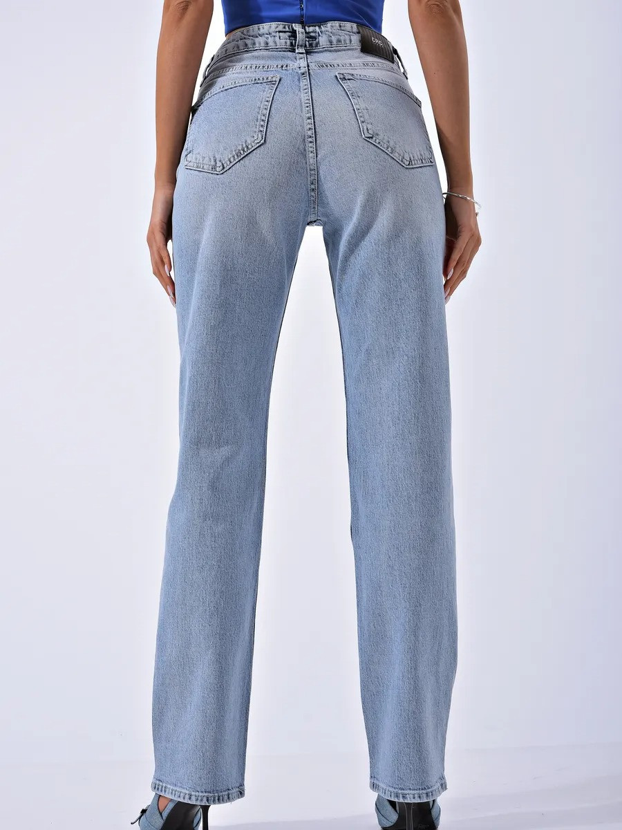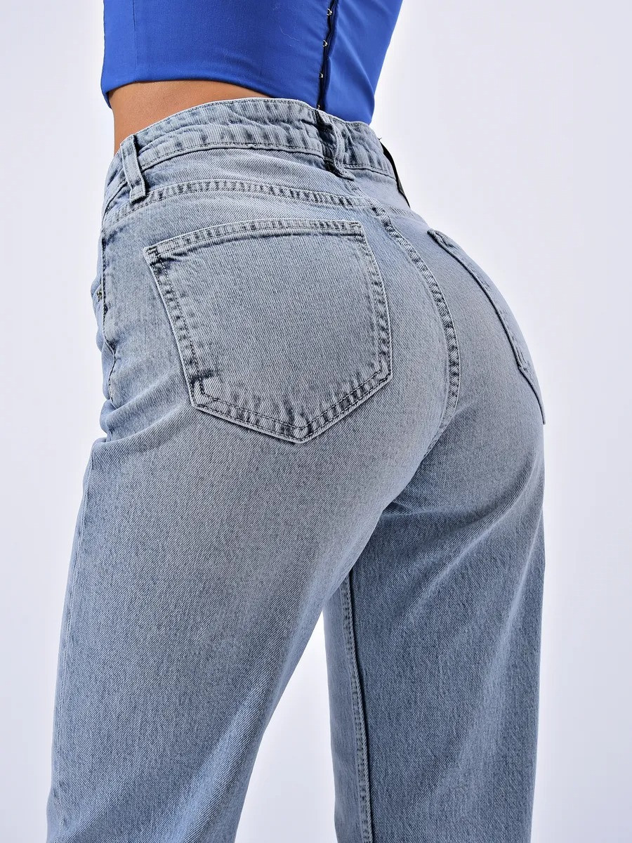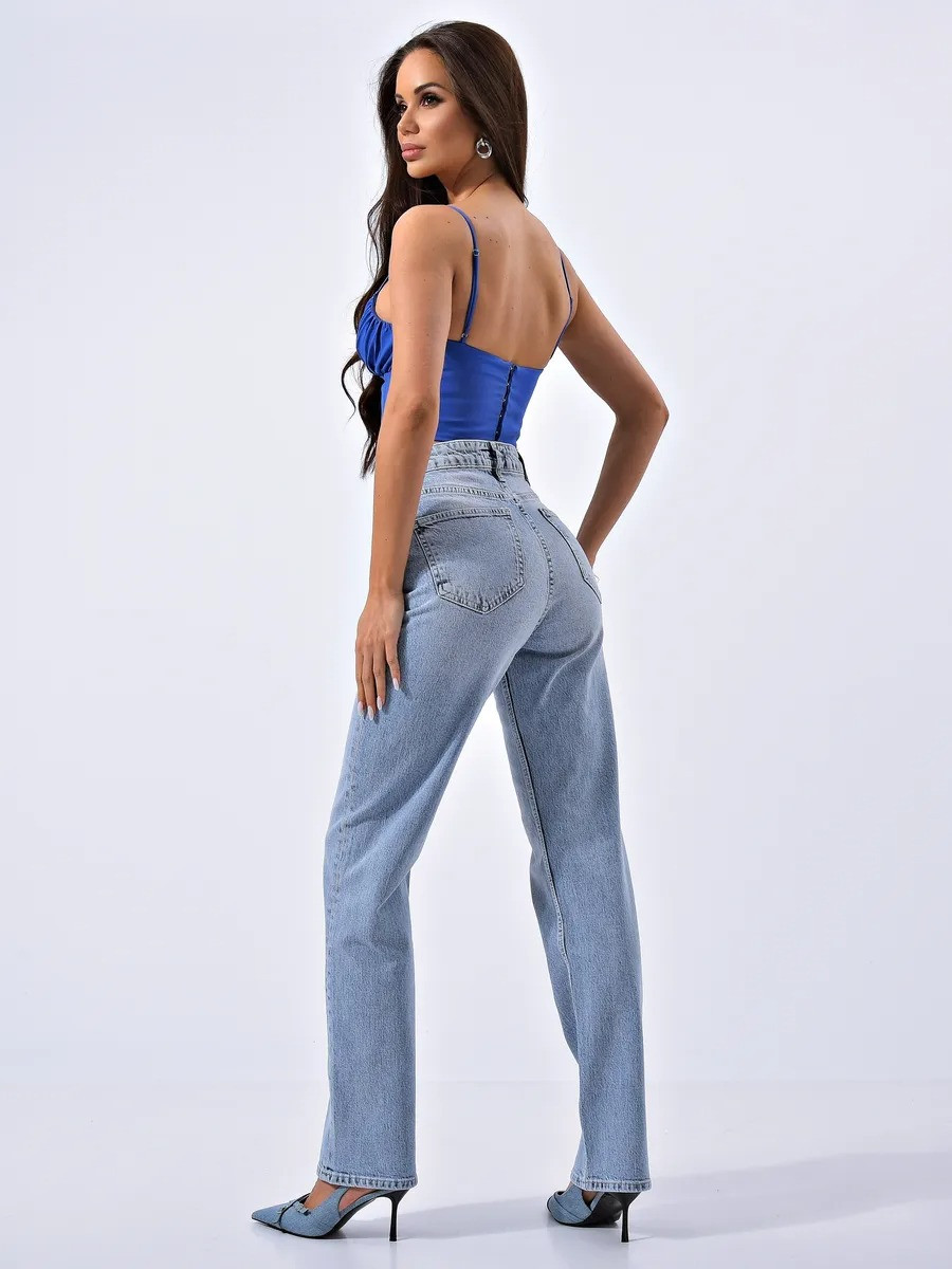 Женские джинсы прямого кроя с высокой посадкой — идеальный выбор для создания стильного образа. Они легко сочетаются с различной верхней одеждой и аксессуарами, позволяя создавать разнообразные look'и для любого повода.