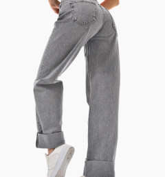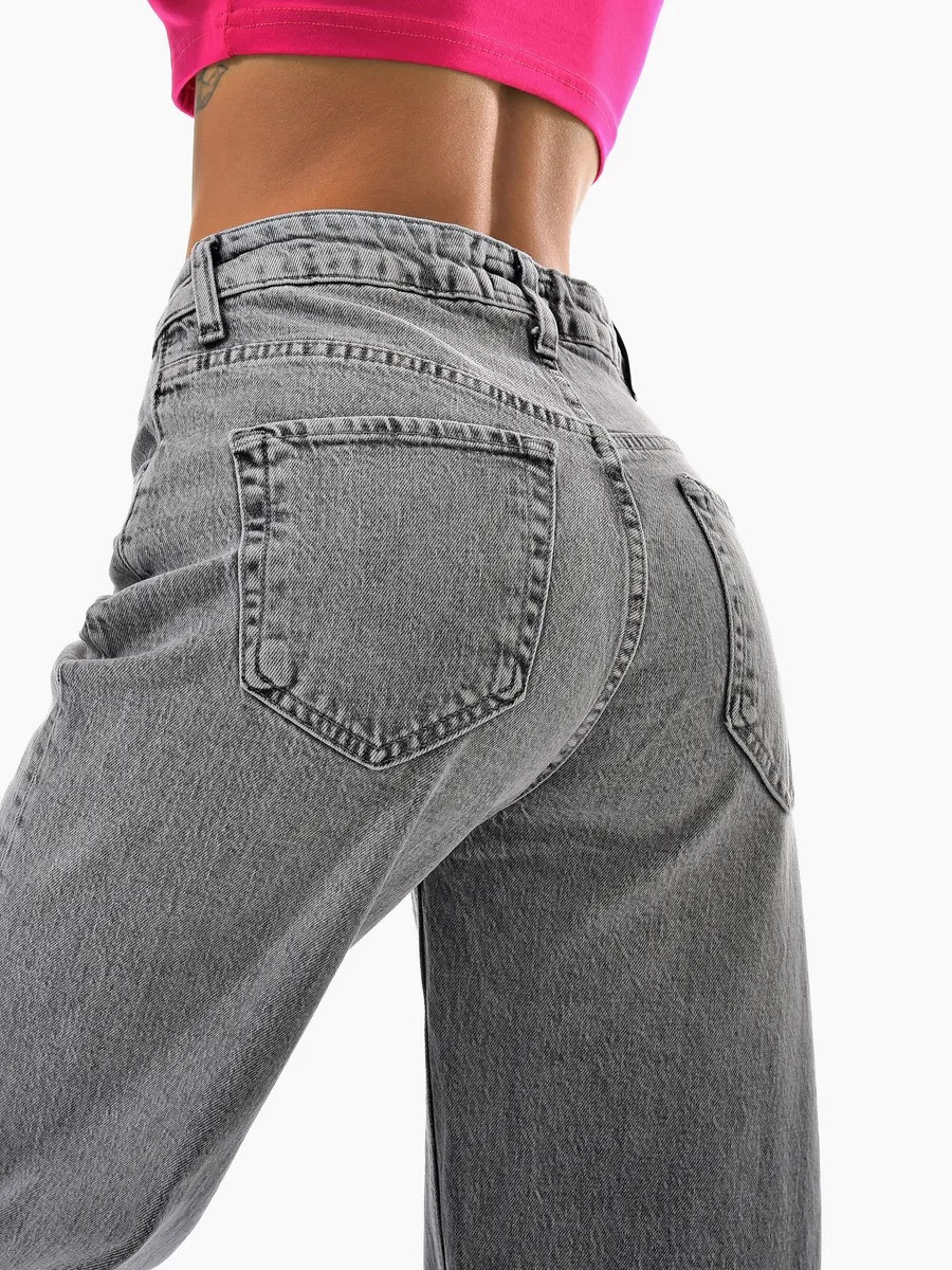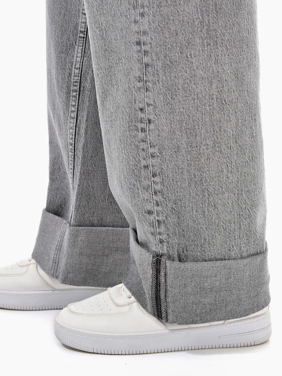 Свободный прямой крой и премиальный хлопковый деним дарят легкость и безупречную посадку, а сдержанный серый цвет — универсальность и элегантность.