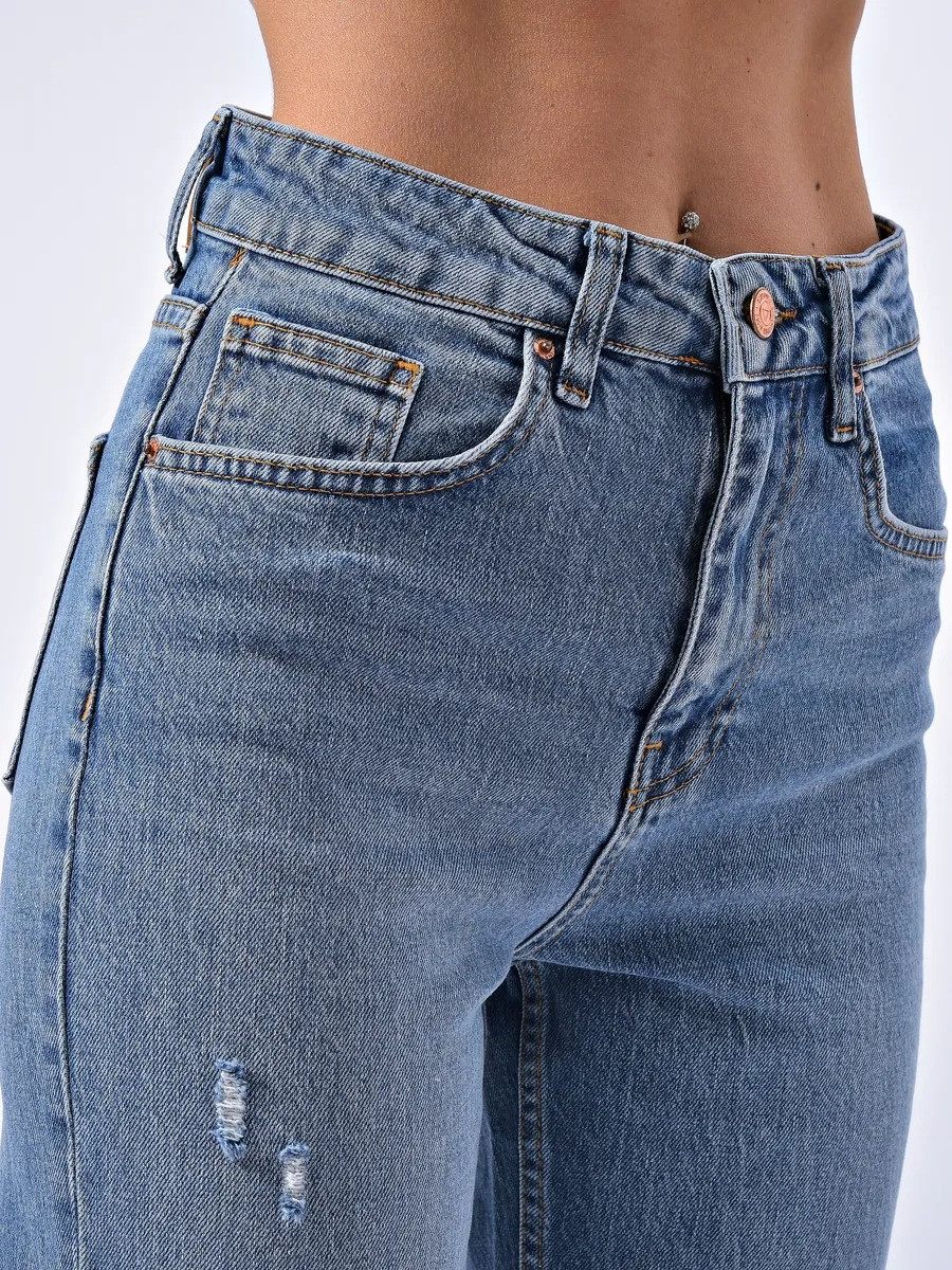 Женские джинсы прямые с потертостями CRACPOT