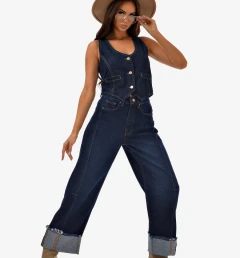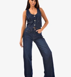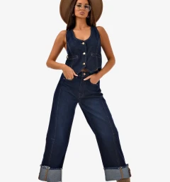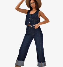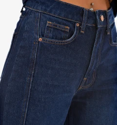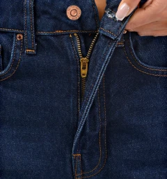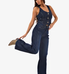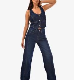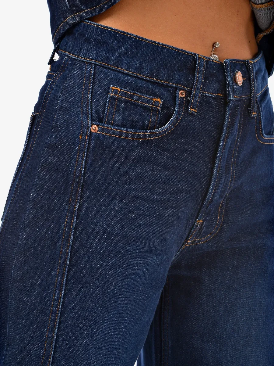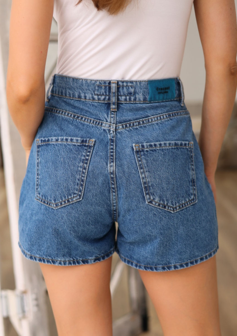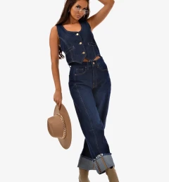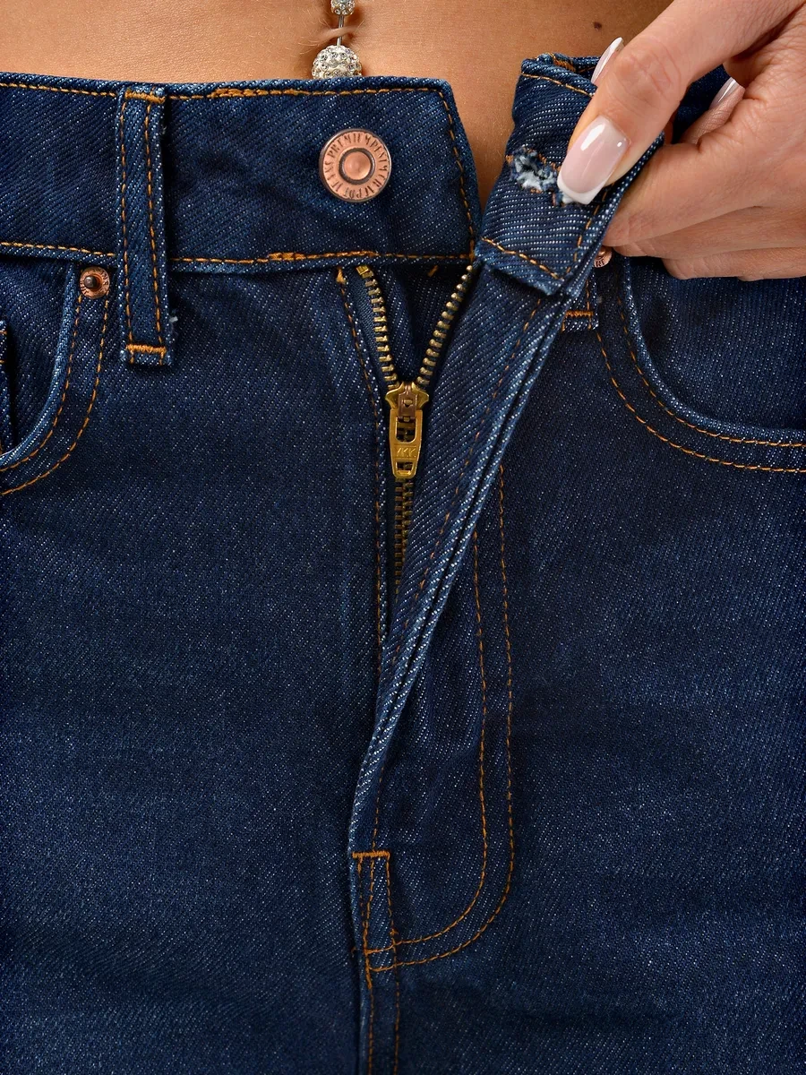 Темно-синий деним из мягкого хлопка подарит удобство на весь день, а прорезные и накладные карманы помогут спрятать всё самое важное — от ключей до секретов.