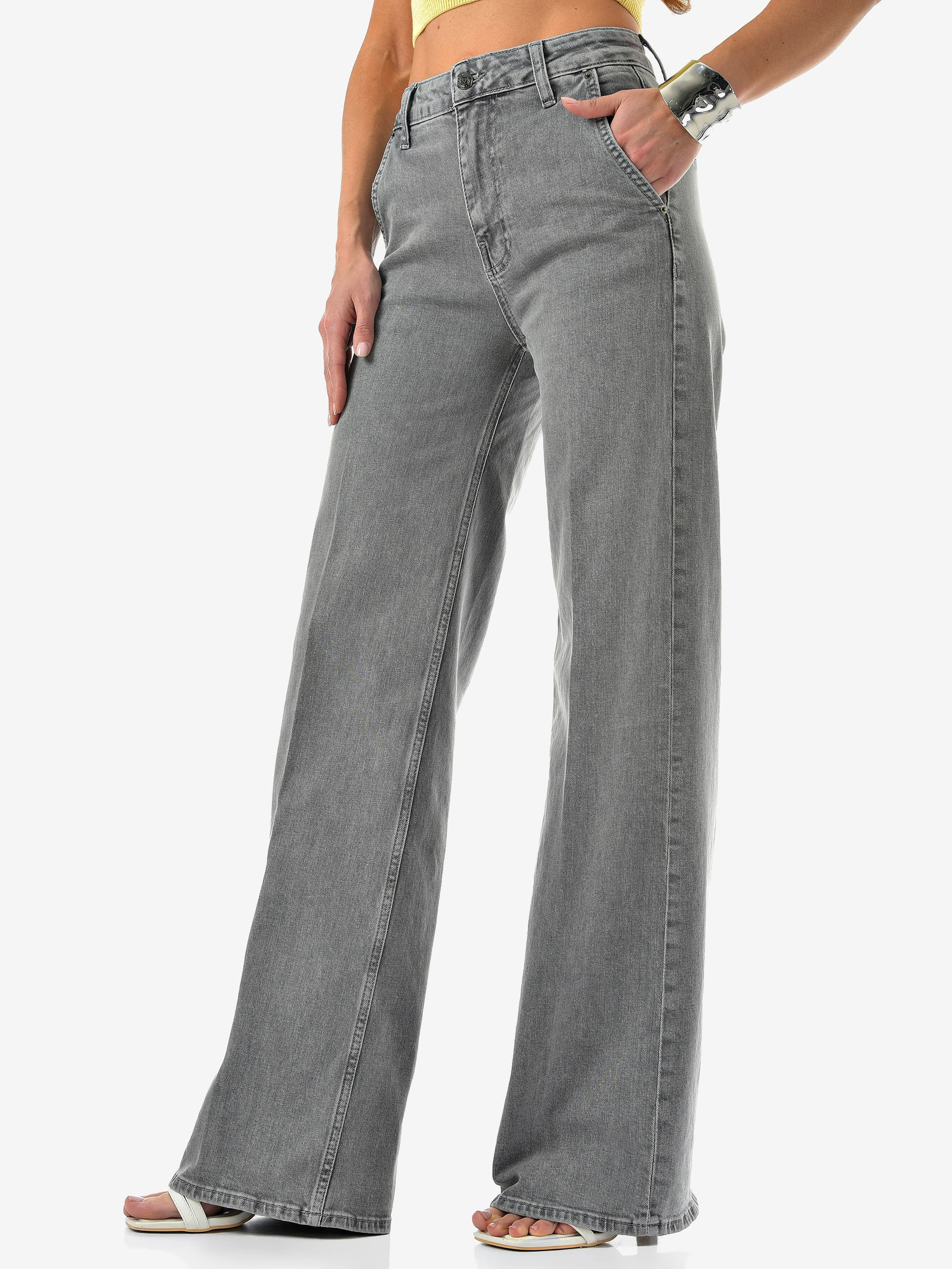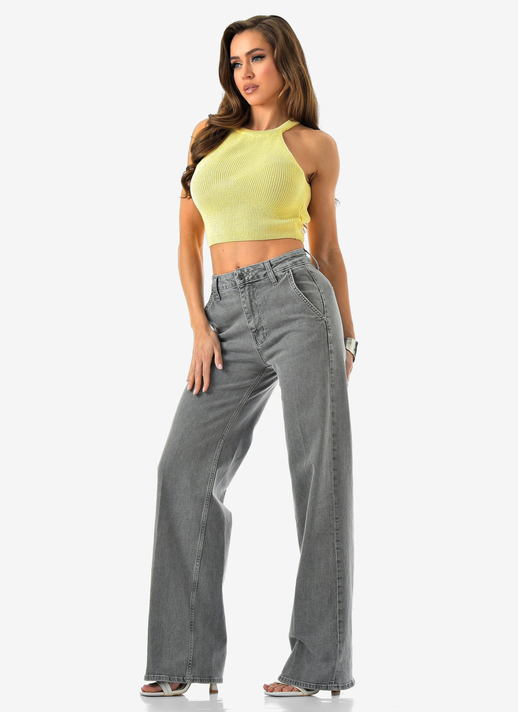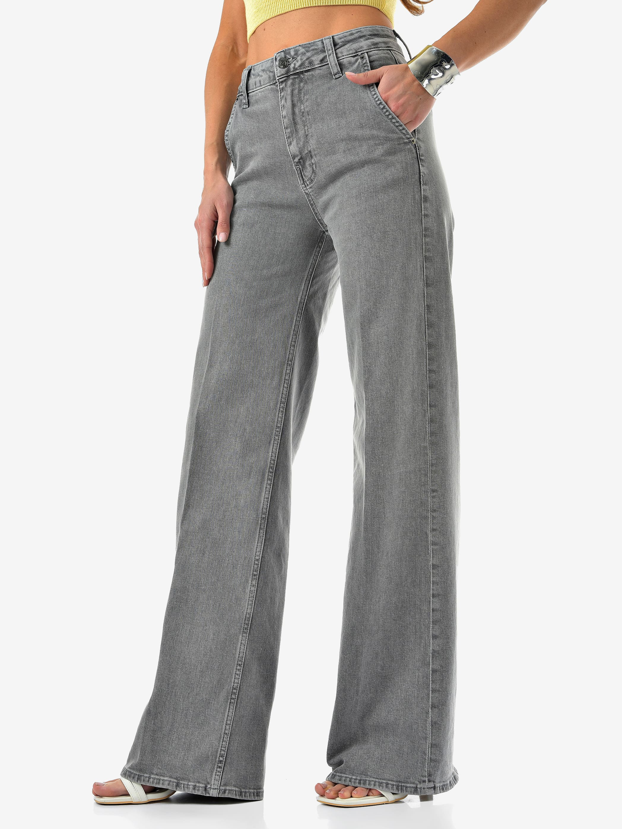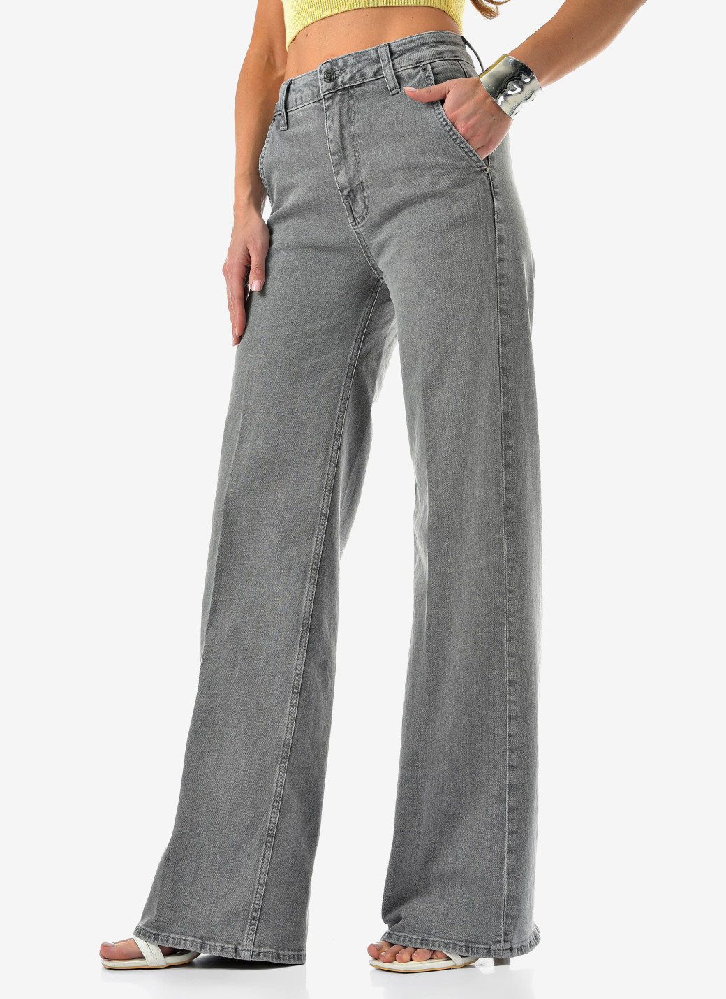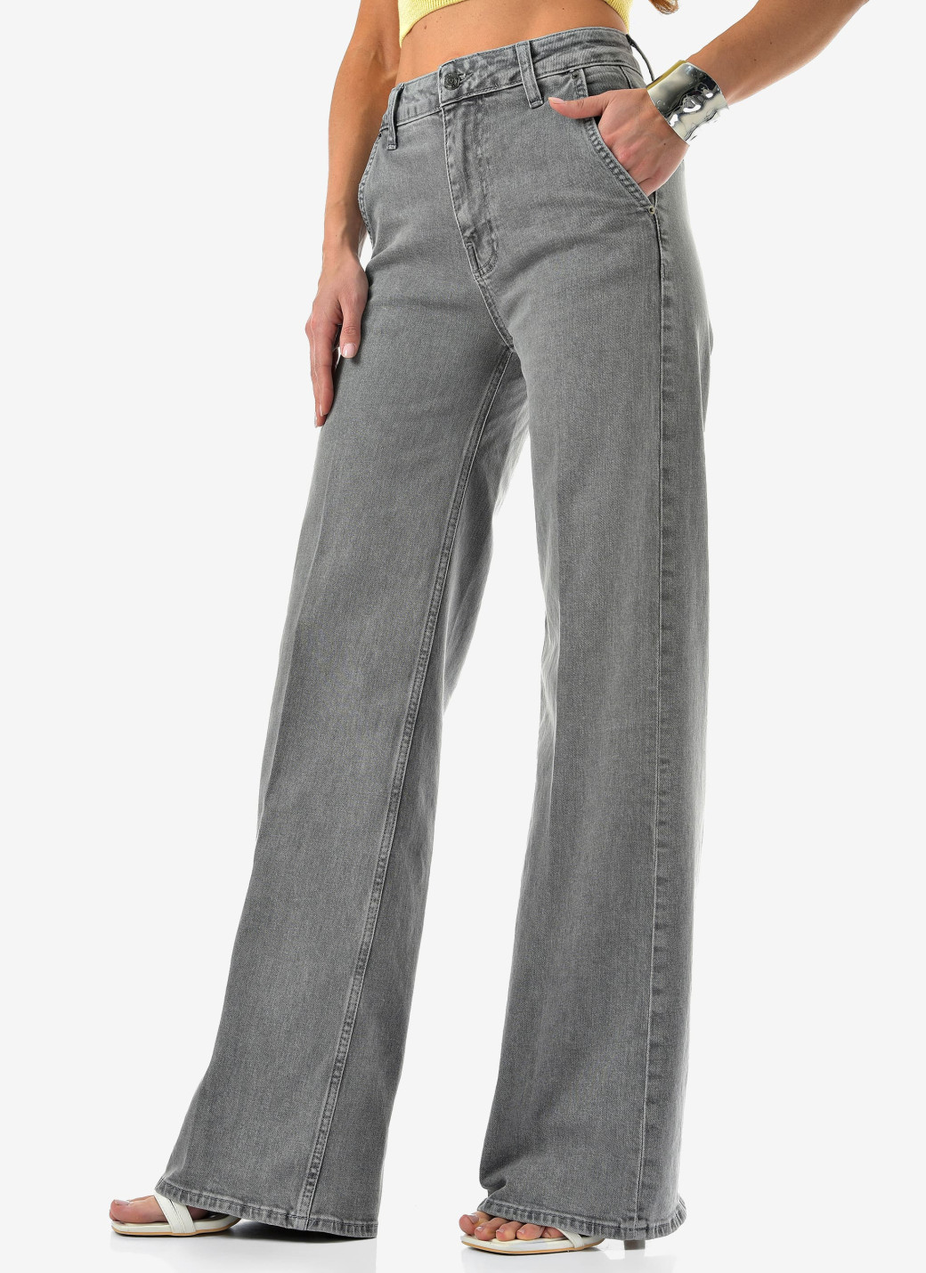 Женские джинсы палаццо от CRACPOT — светло-серого оттенка, идеальная посадка и премиальный турецкий деним (99% хлопок, 1% эластан).
