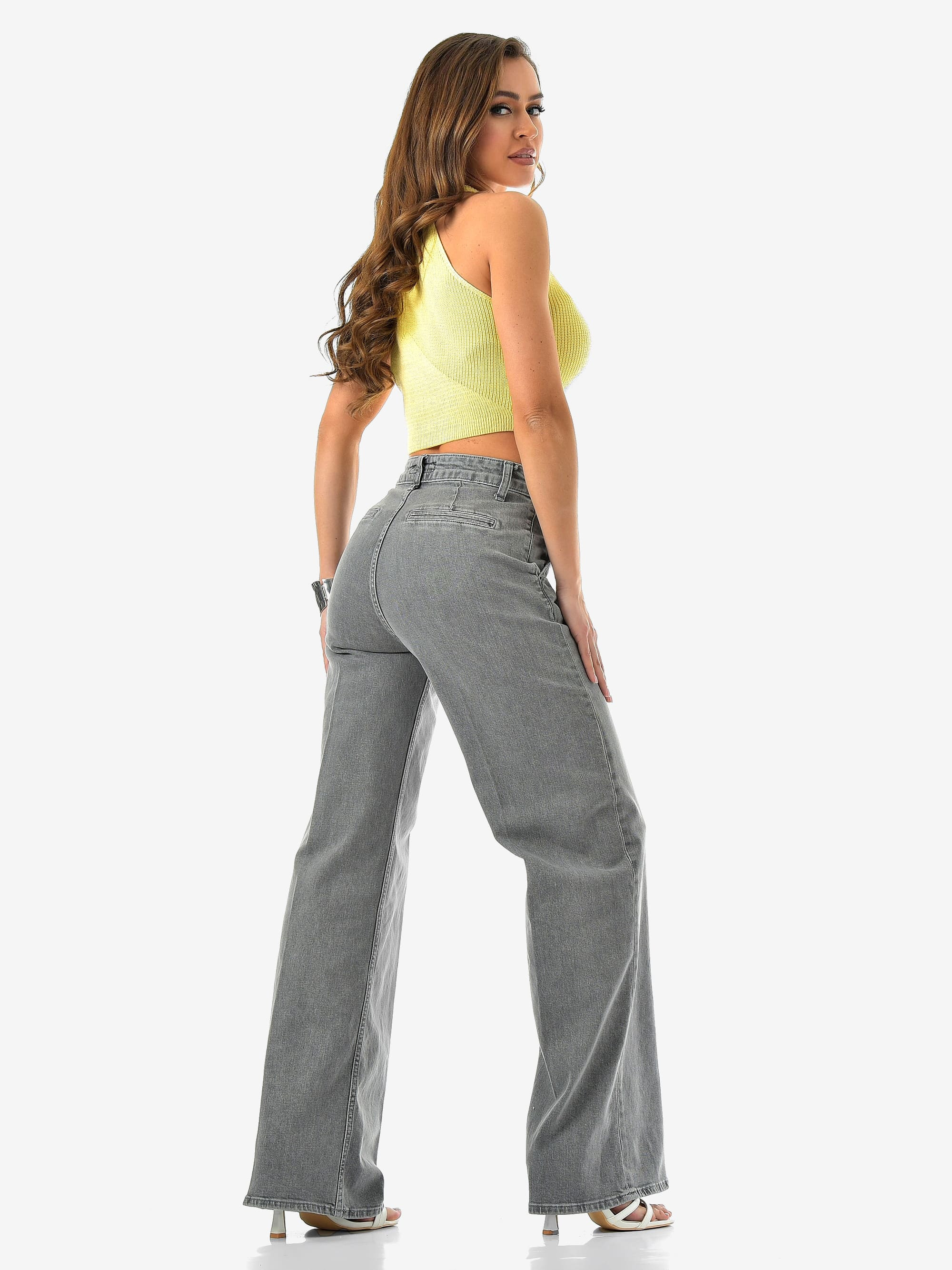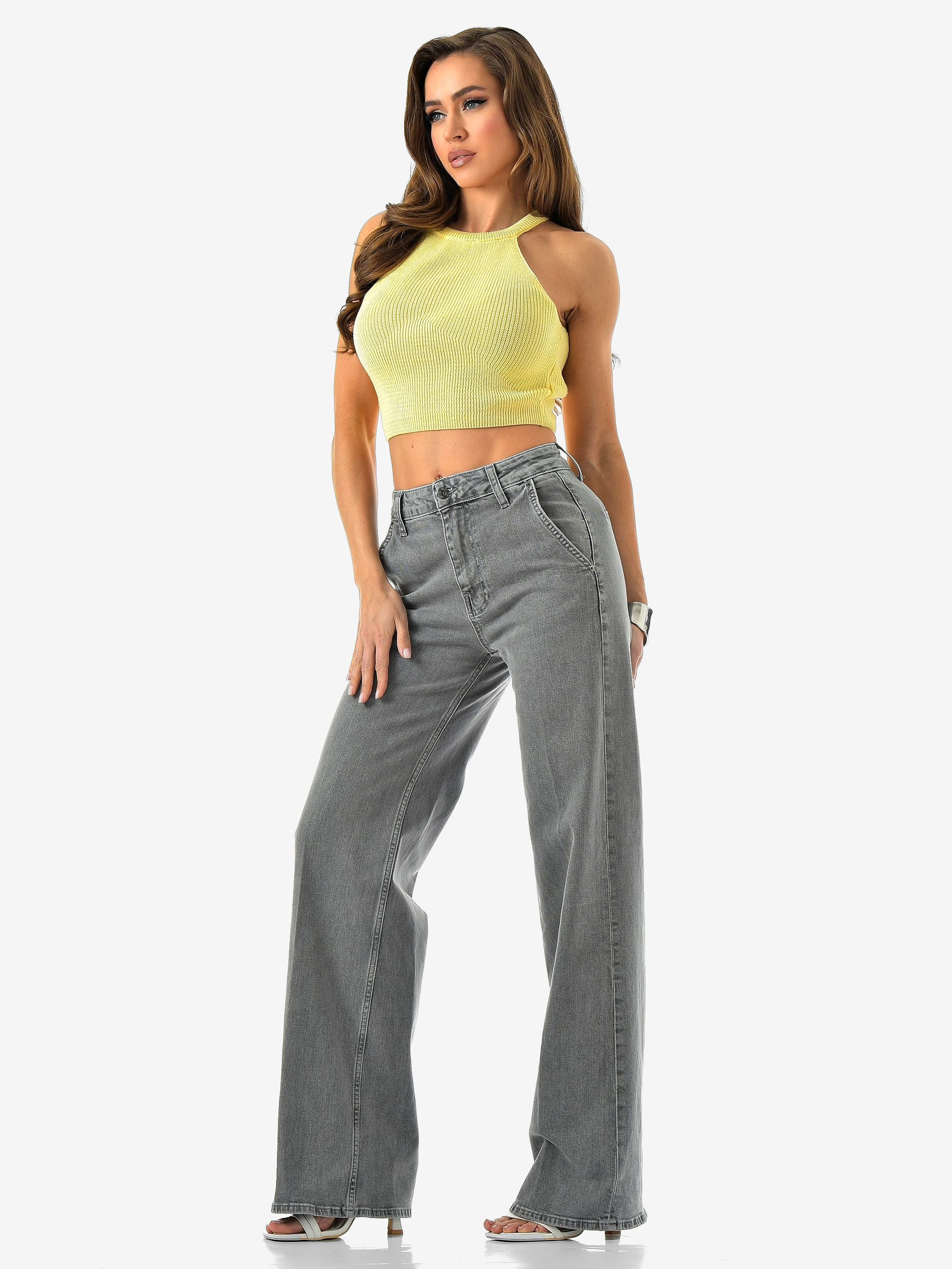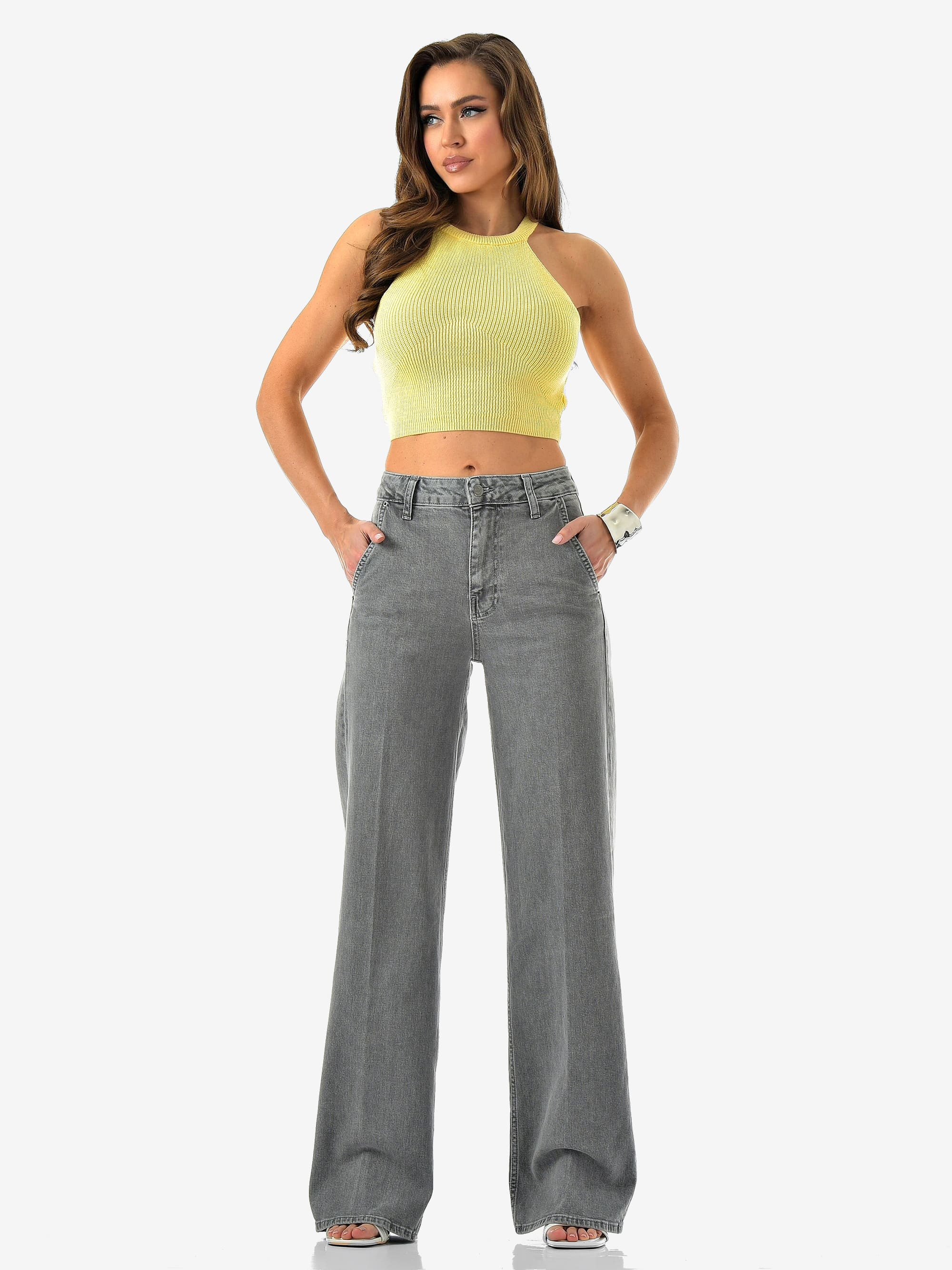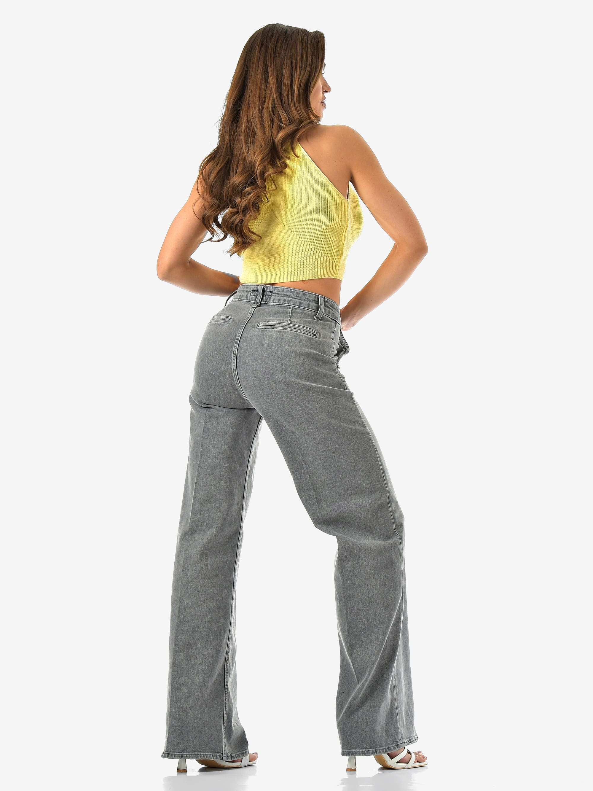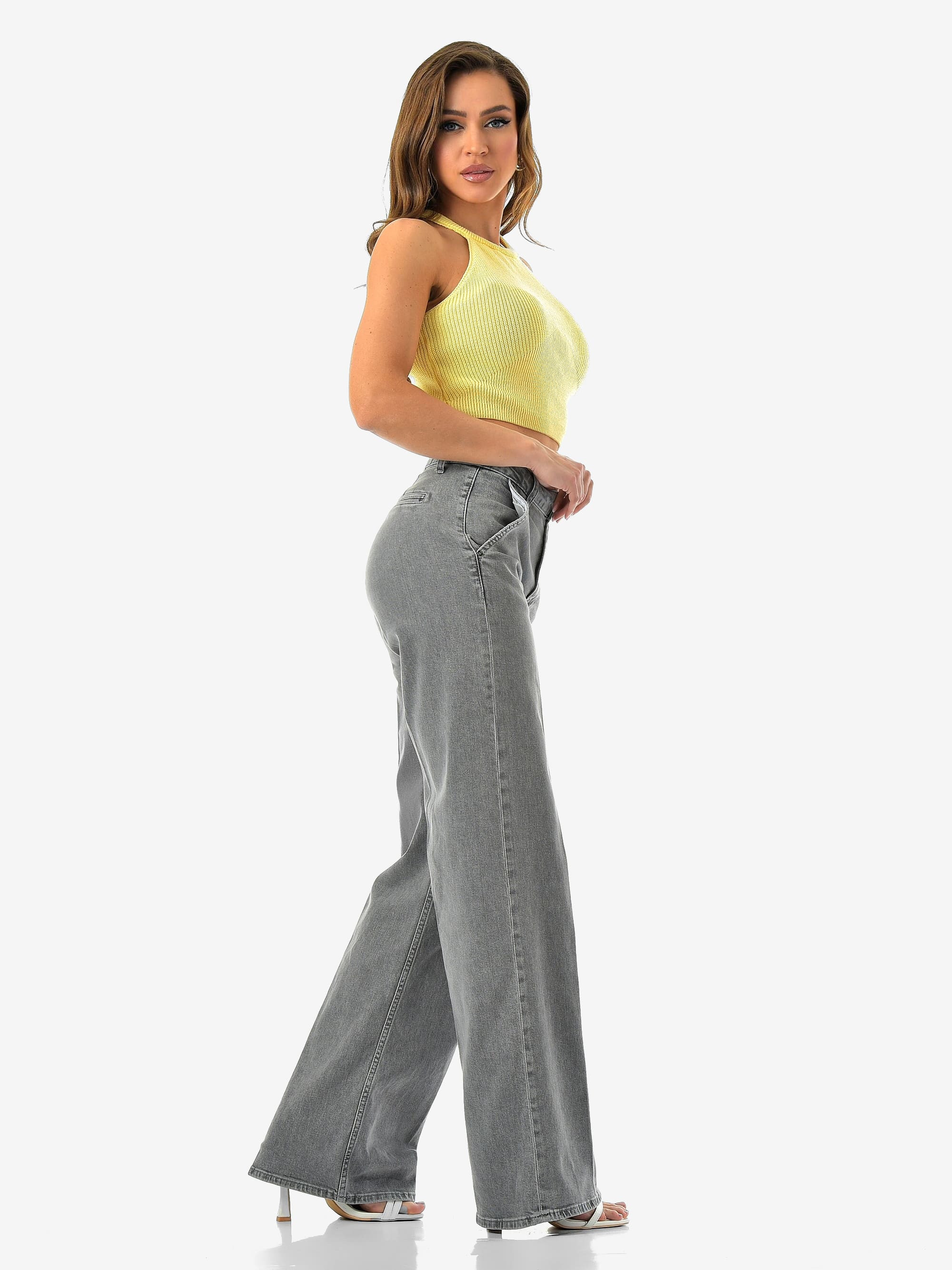 Женские джинсы палаццо от CRACPOT — светло-серого оттенка, идеальная посадка и премиальный турецкий деним (99% хлопок, 1% эластан).