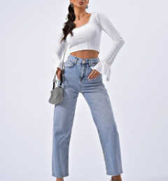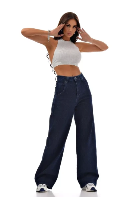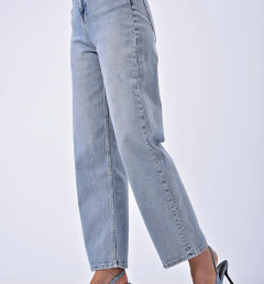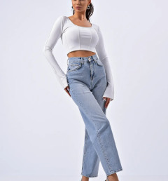 Светло-голубой цвет делает образ лёгким и современным. Состав из 99% хлопка и 1% эластана обеспечивает плотную, но эластичную посадку.