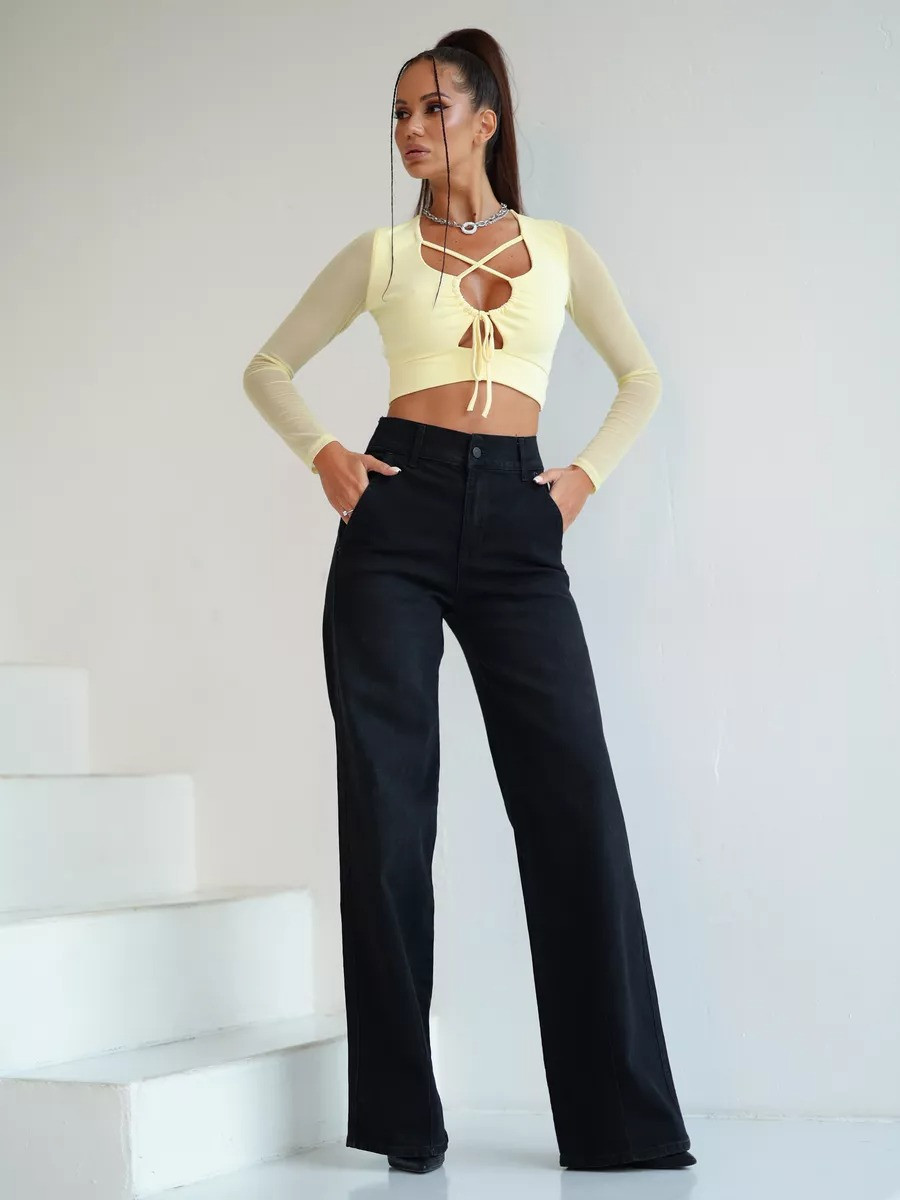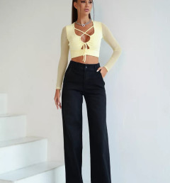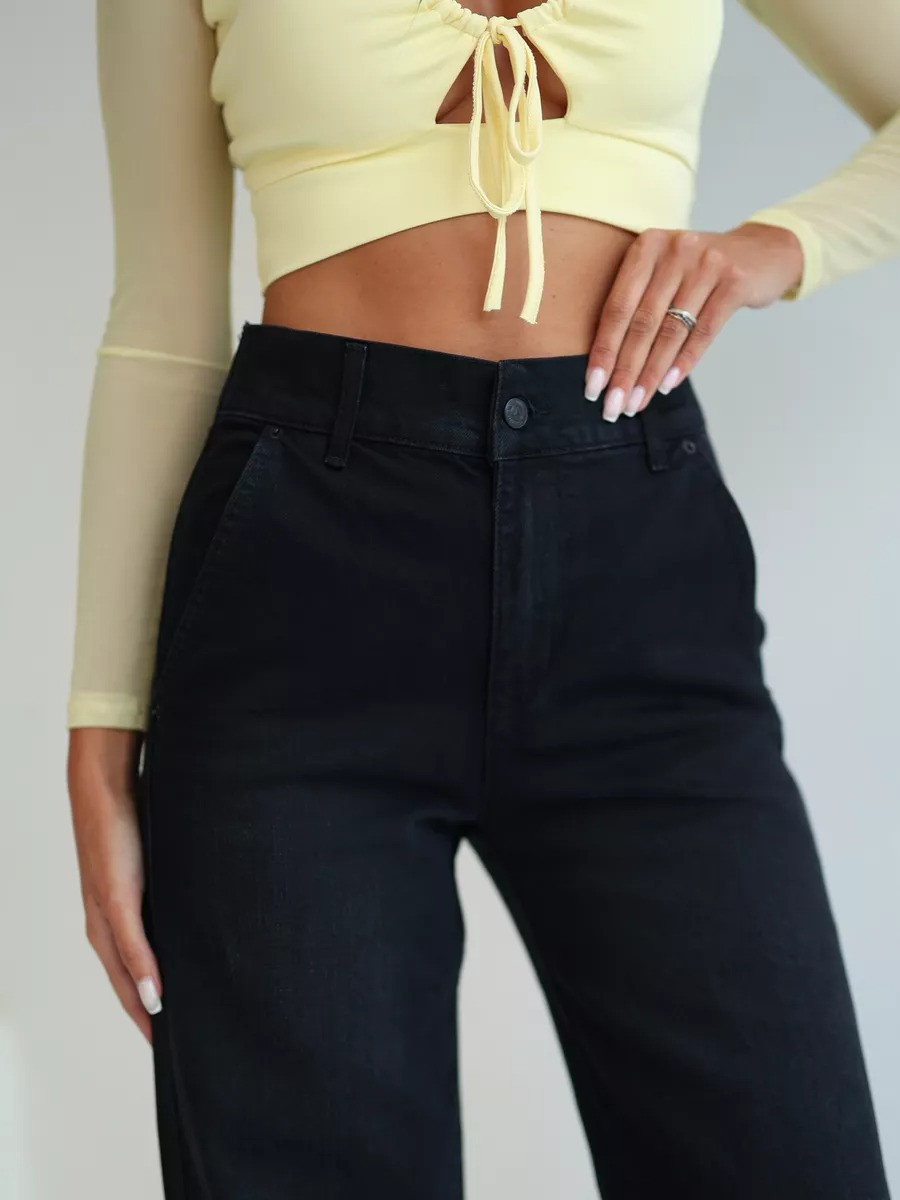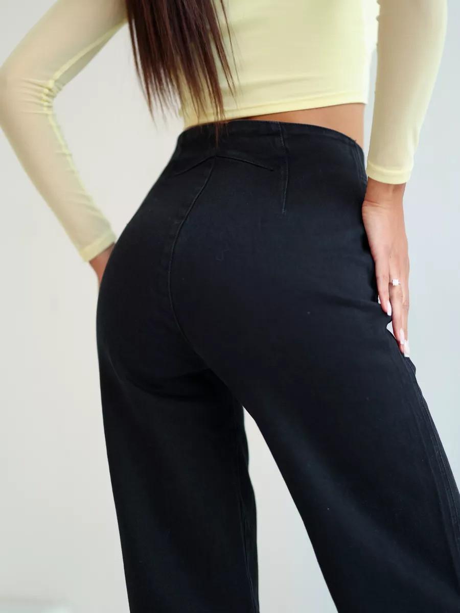 Плотный хлопковый деним и идеальная посадка без задних карманов — акцент на форму, стиль и комфорт. Универсальный вариант и для офиса, и для города. Классика, которая всегда с тобой.
