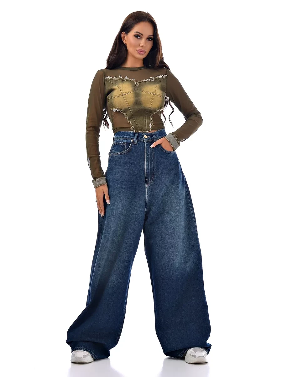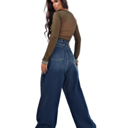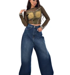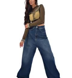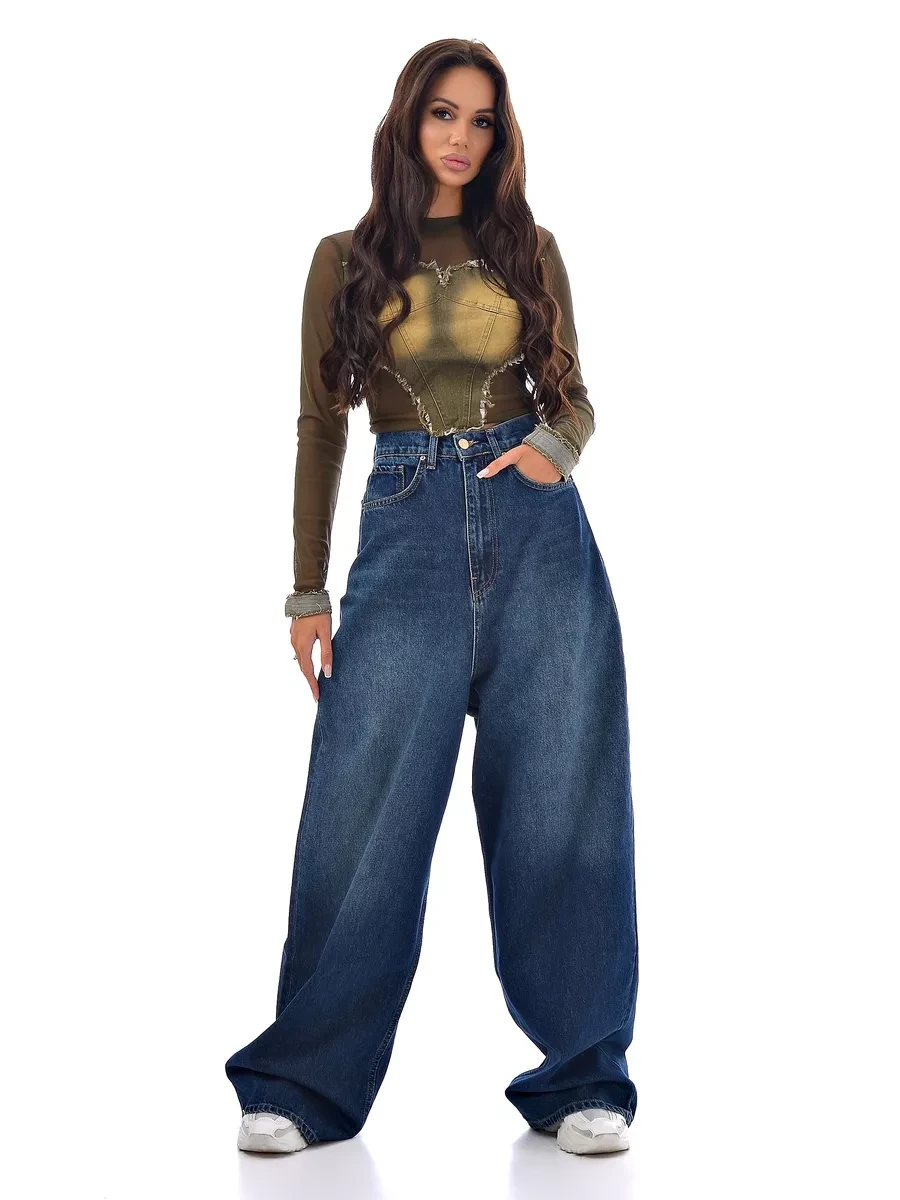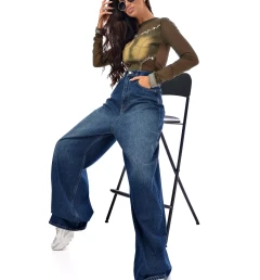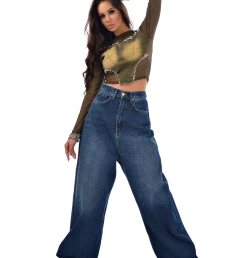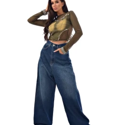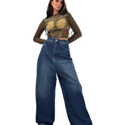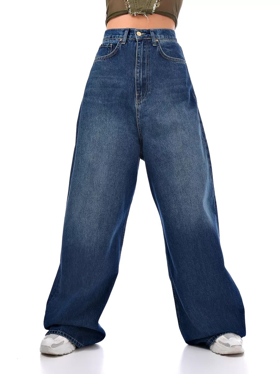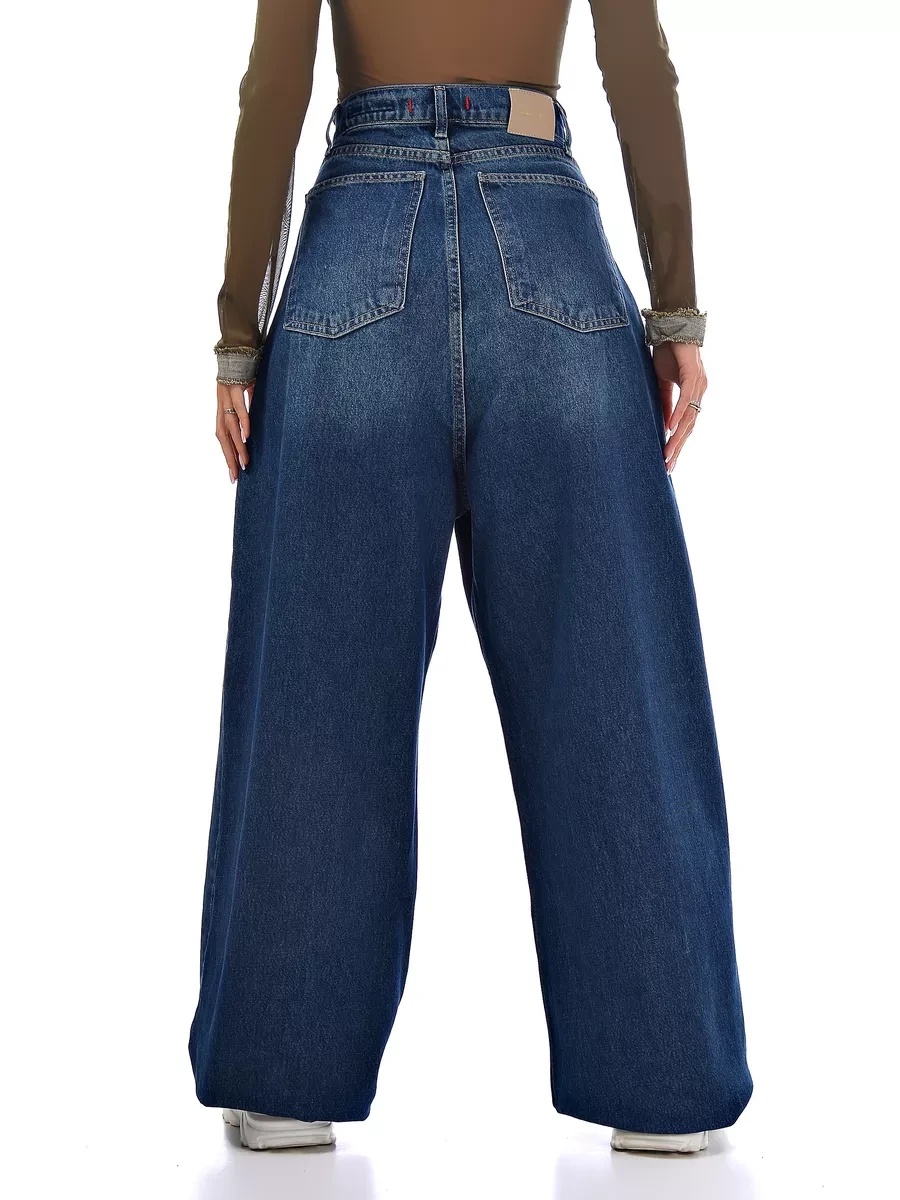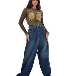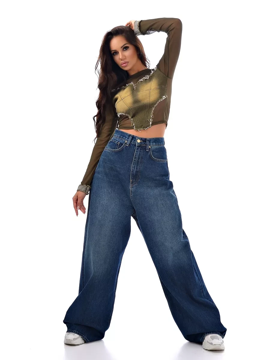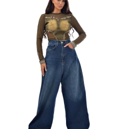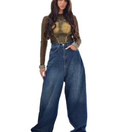 Бренд CRACPOT представляет трендовые женские джинсы-трубы в стиле Y2K.