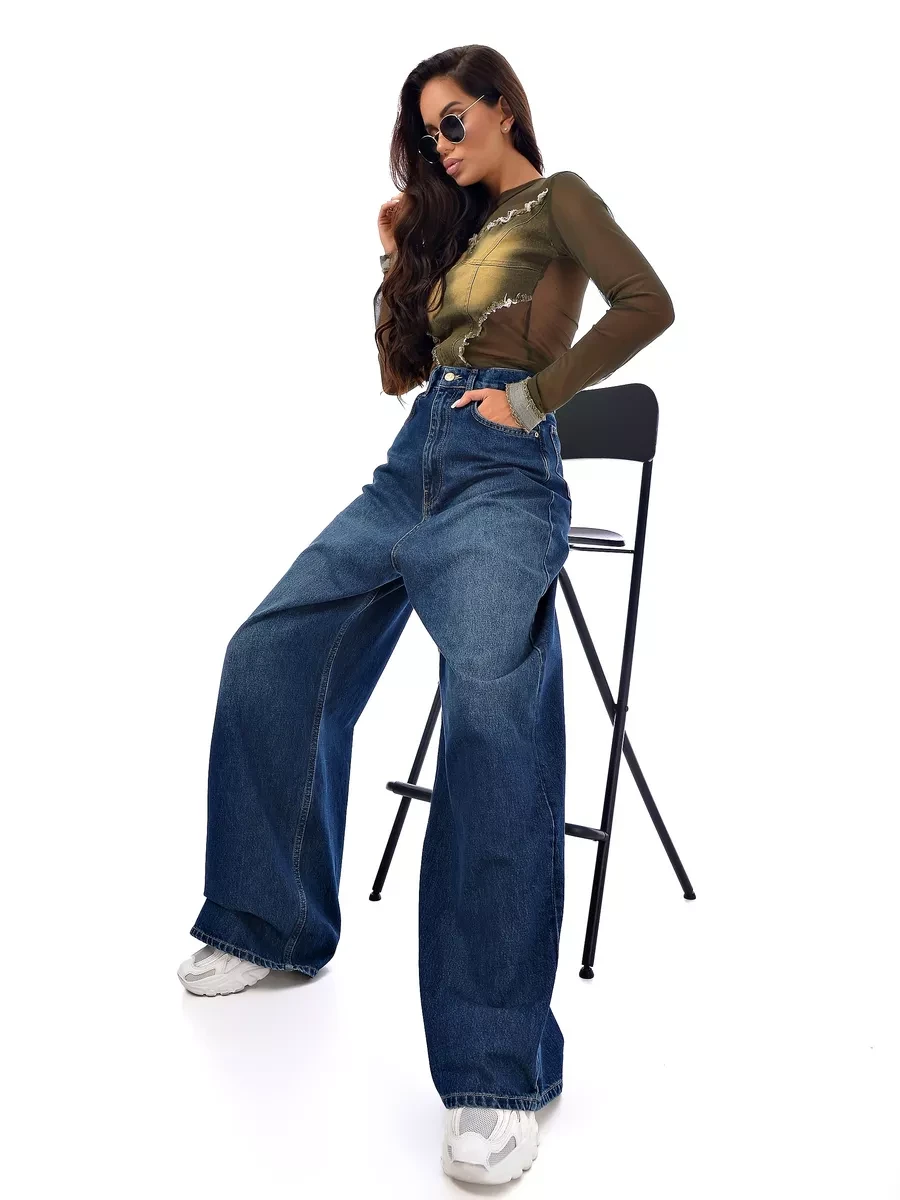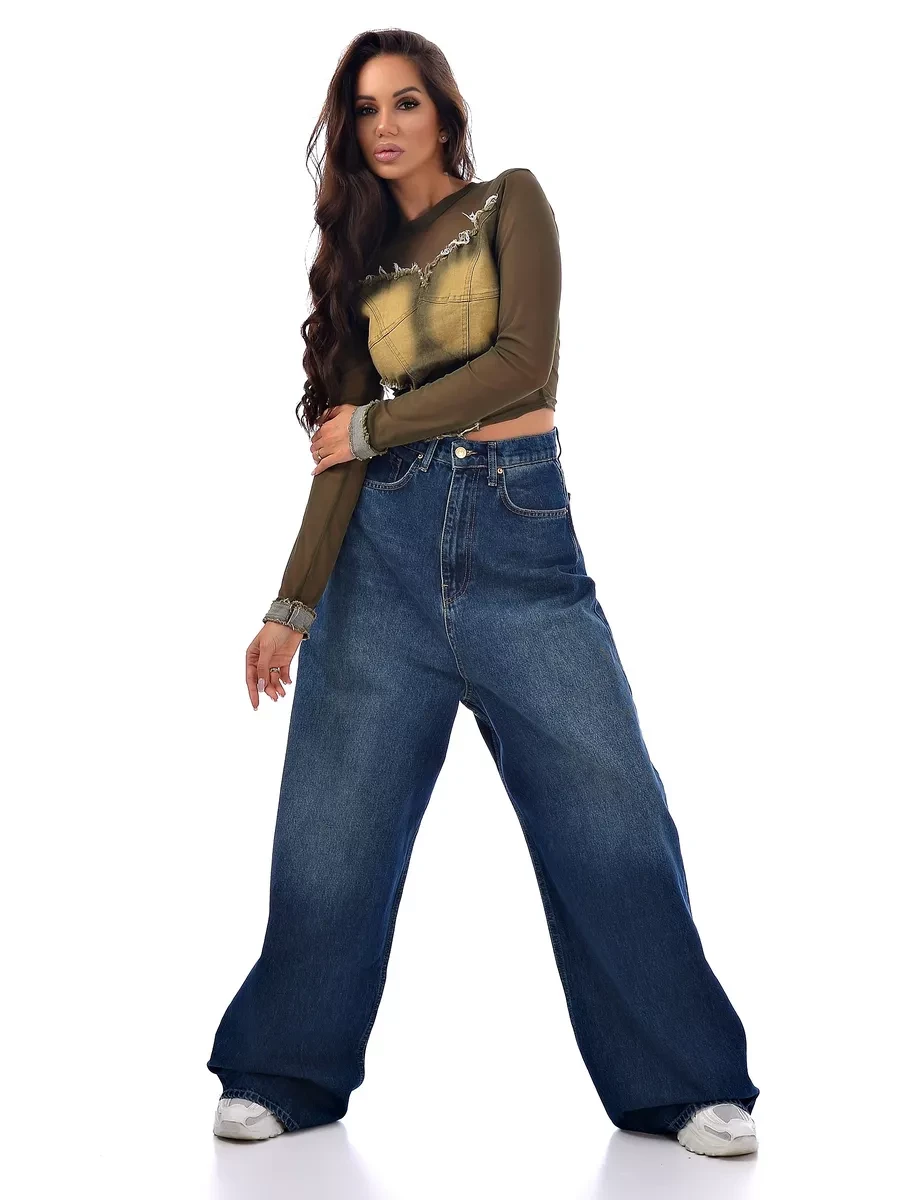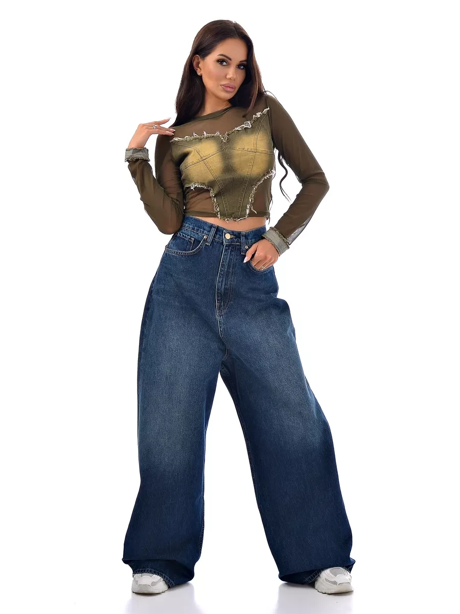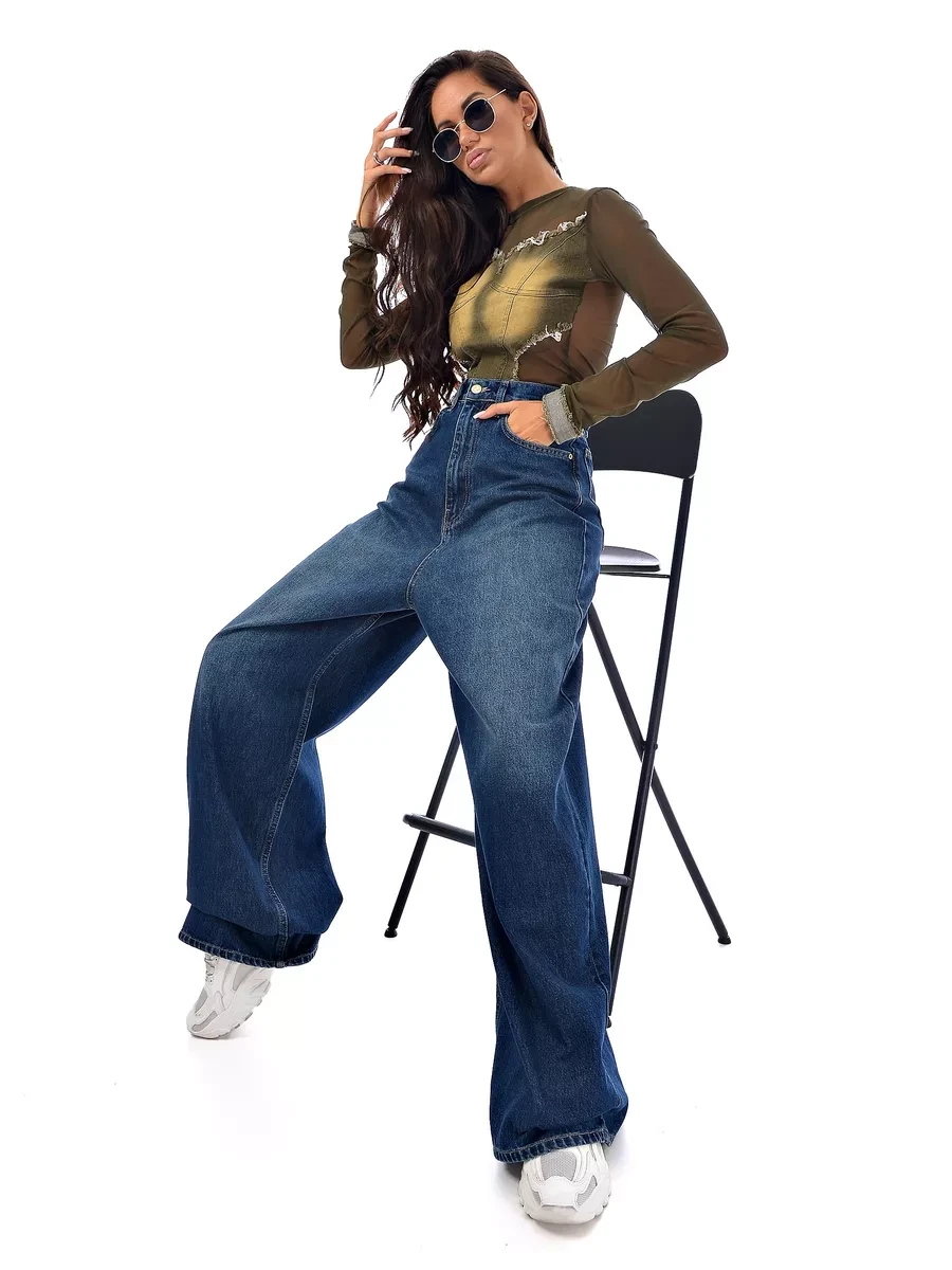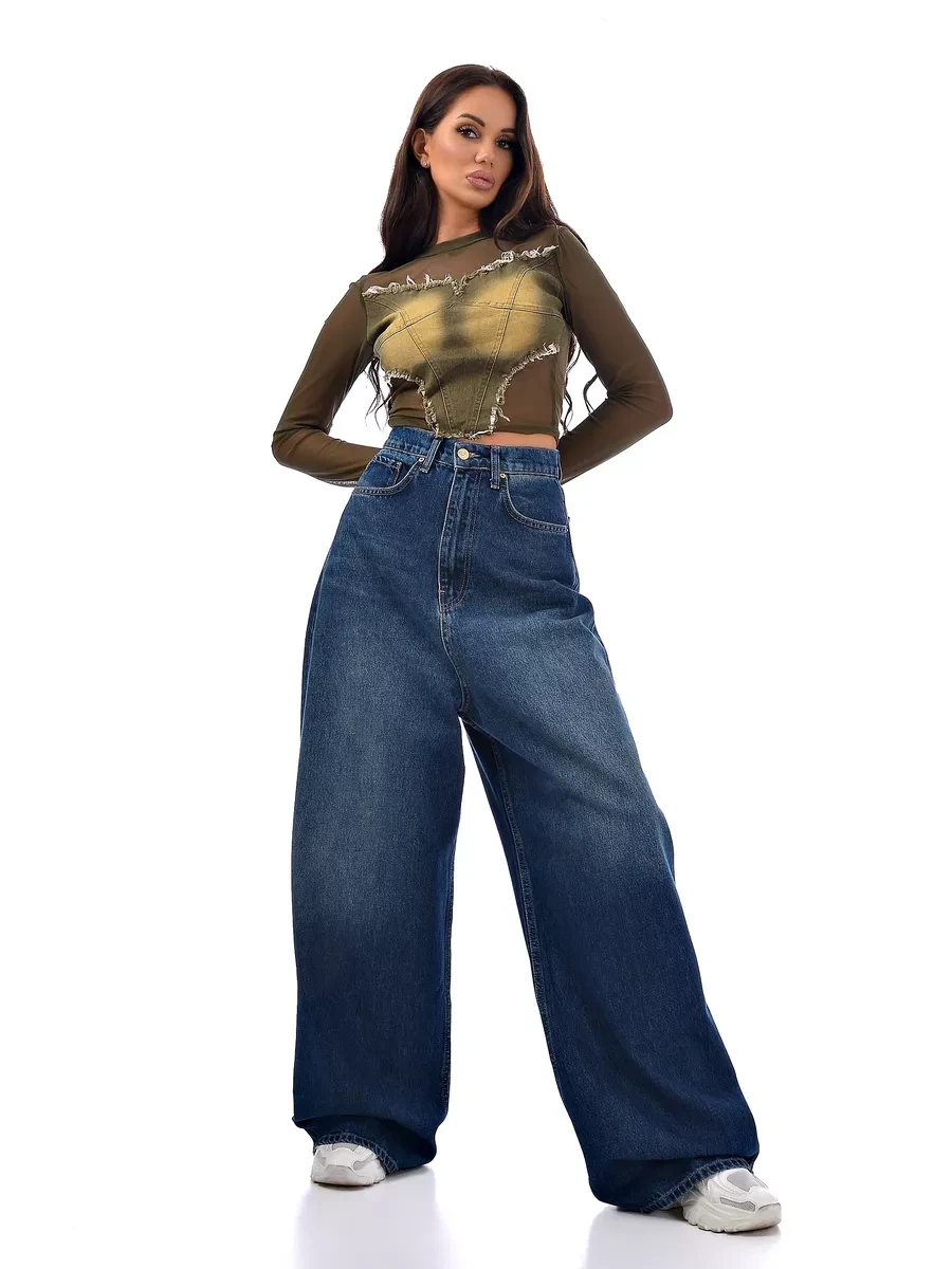 Бренд CRACPOT представляет трендовые женские джинсы-трубы в стиле Y2K.