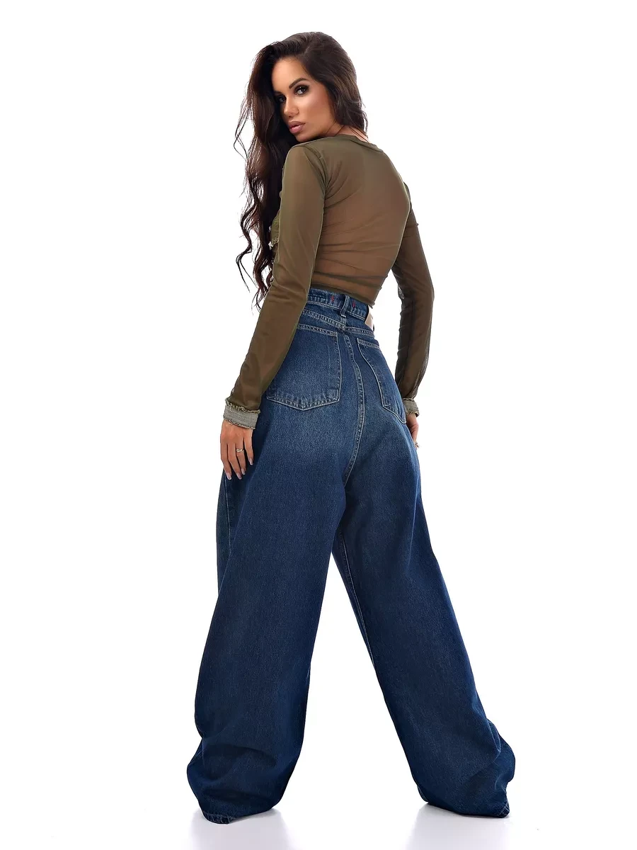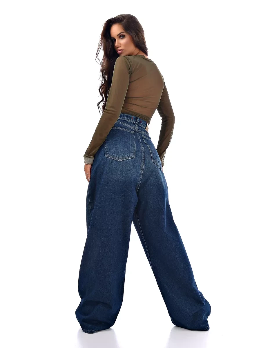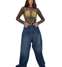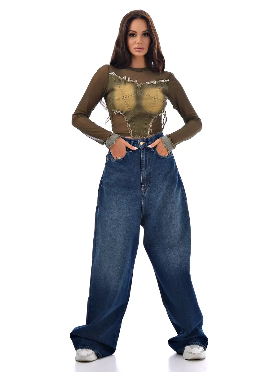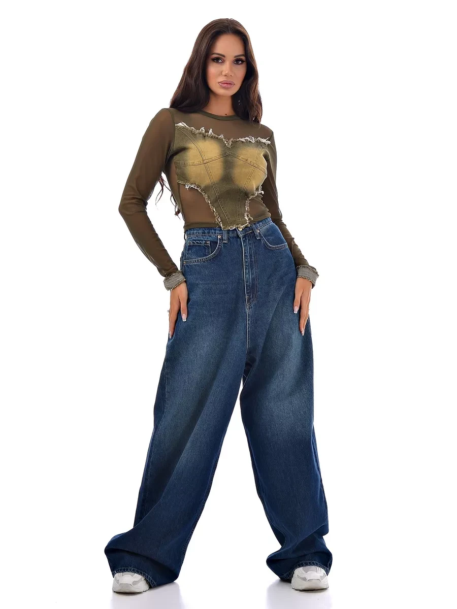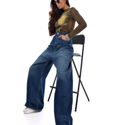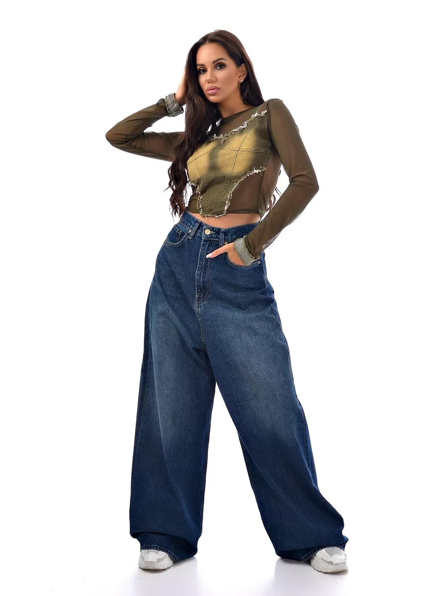 Бренд CRACPOT представляет трендовые женские джинсы-трубы в стиле Y2K.