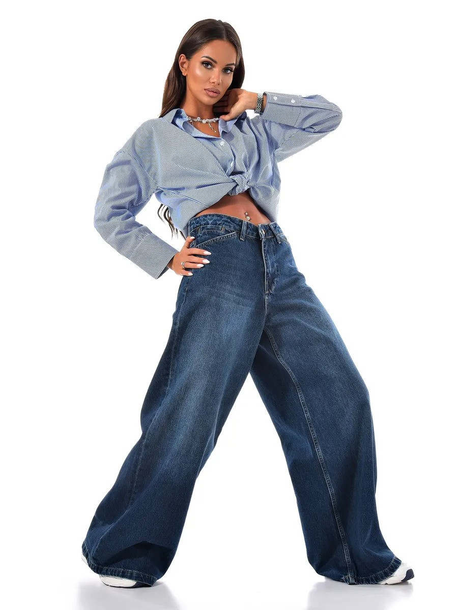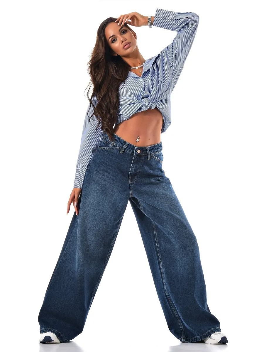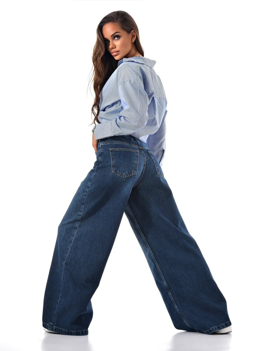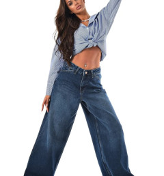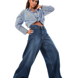 Темно-синий деним легко подружится с любым верхом — от белой рубашки до яркого свитшота.