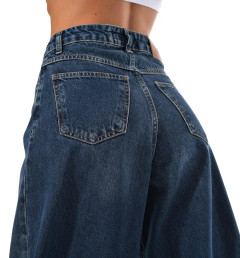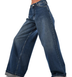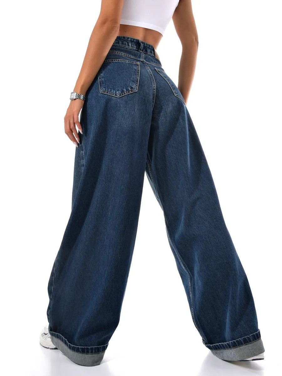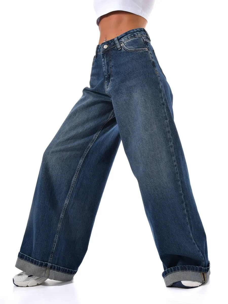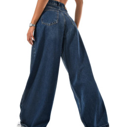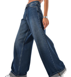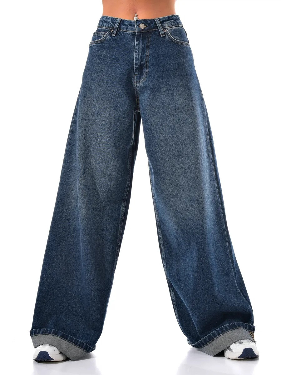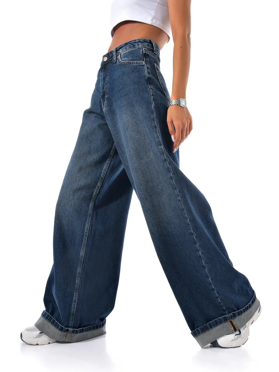 Тёмно-синий премиальный деним, высокая талия и прямой силуэт, который вытягивает ноги и делает талию тоньше.