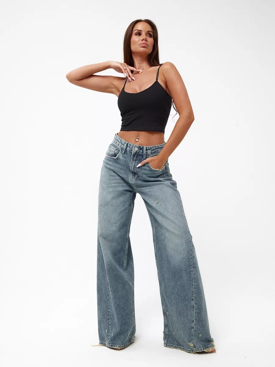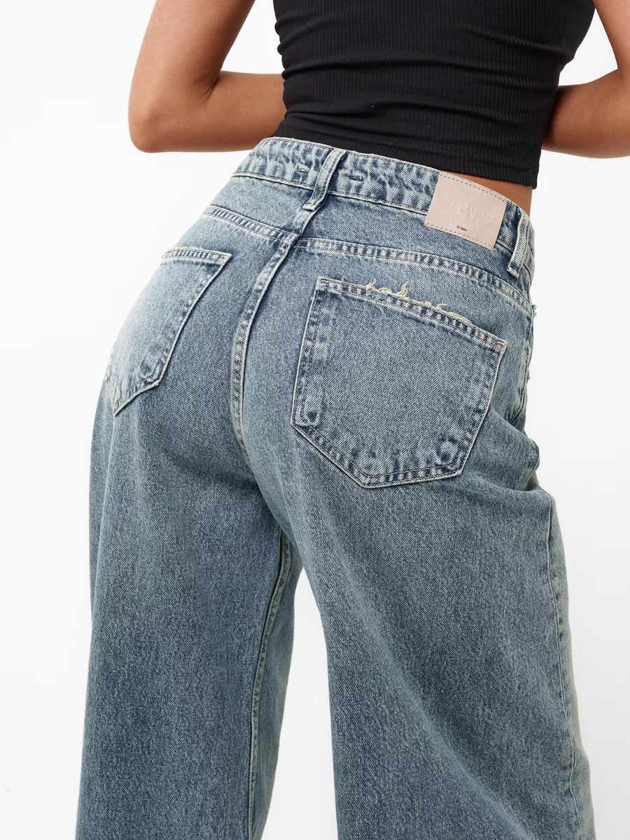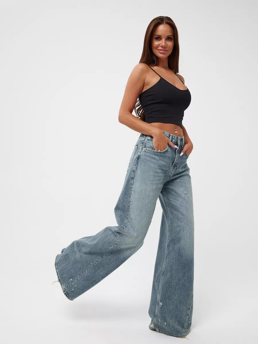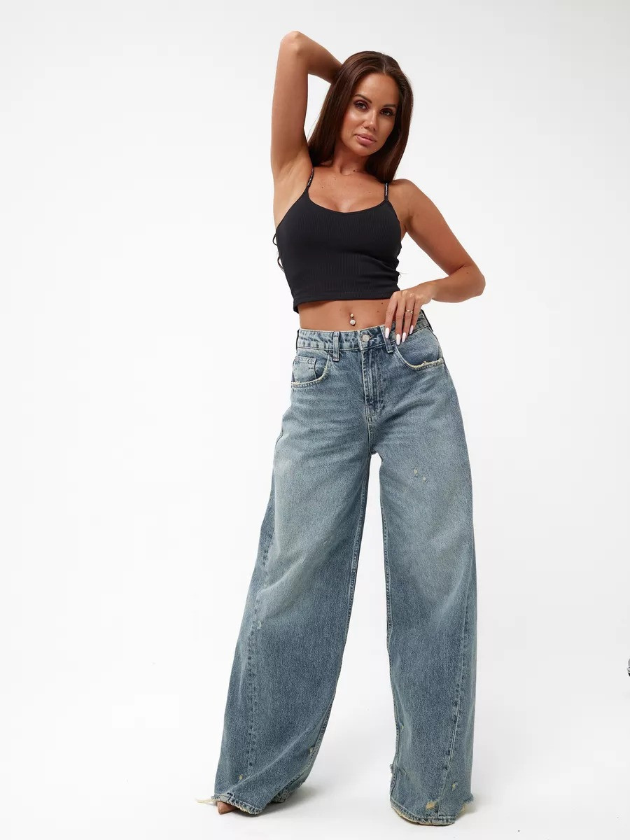 Эти джинсы — идеальный партнёр для oversize-кожанки или короткого топа. Контраст форм — тренд, который работает всегда.