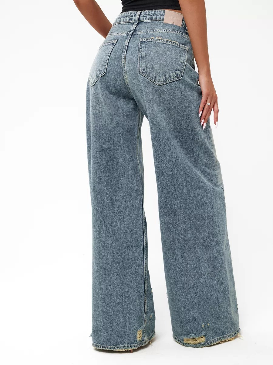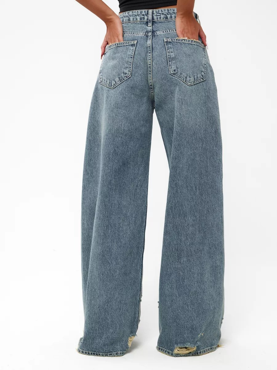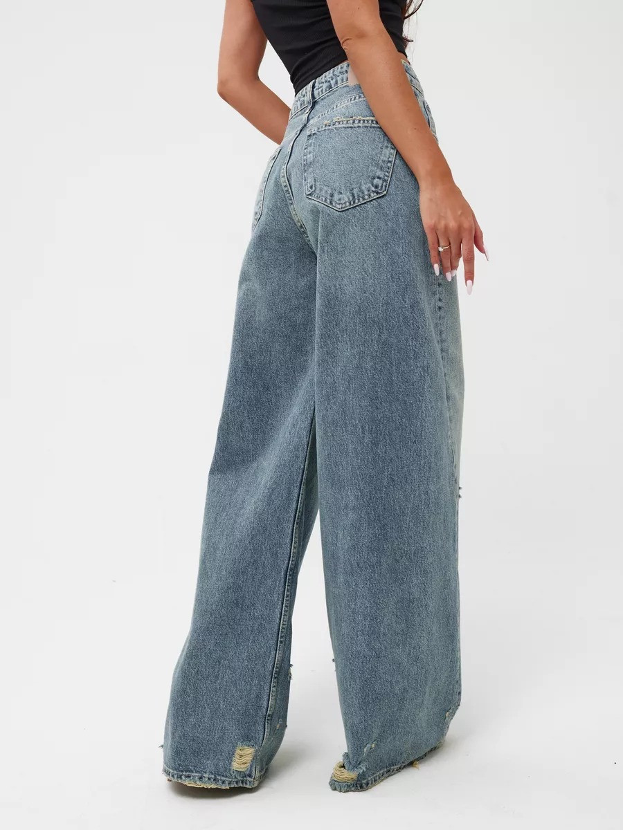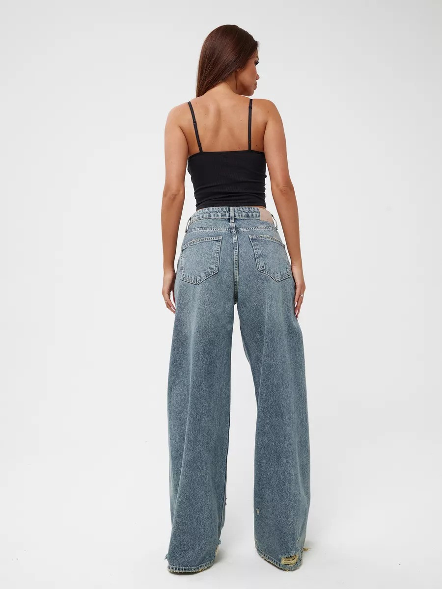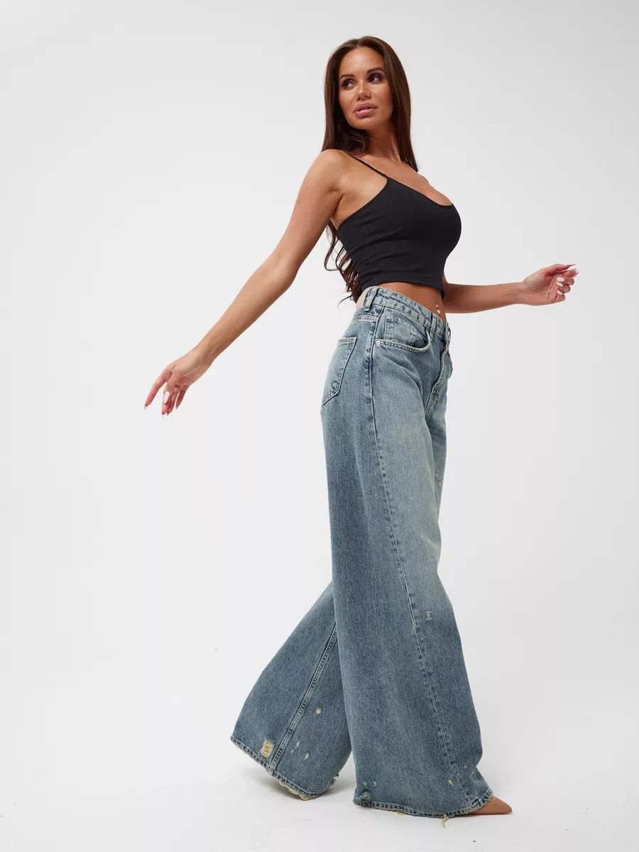 Эти джинсы — идеальный партнёр для oversize-кожанки или короткого топа. Контраст форм — тренд, который работает всегда.