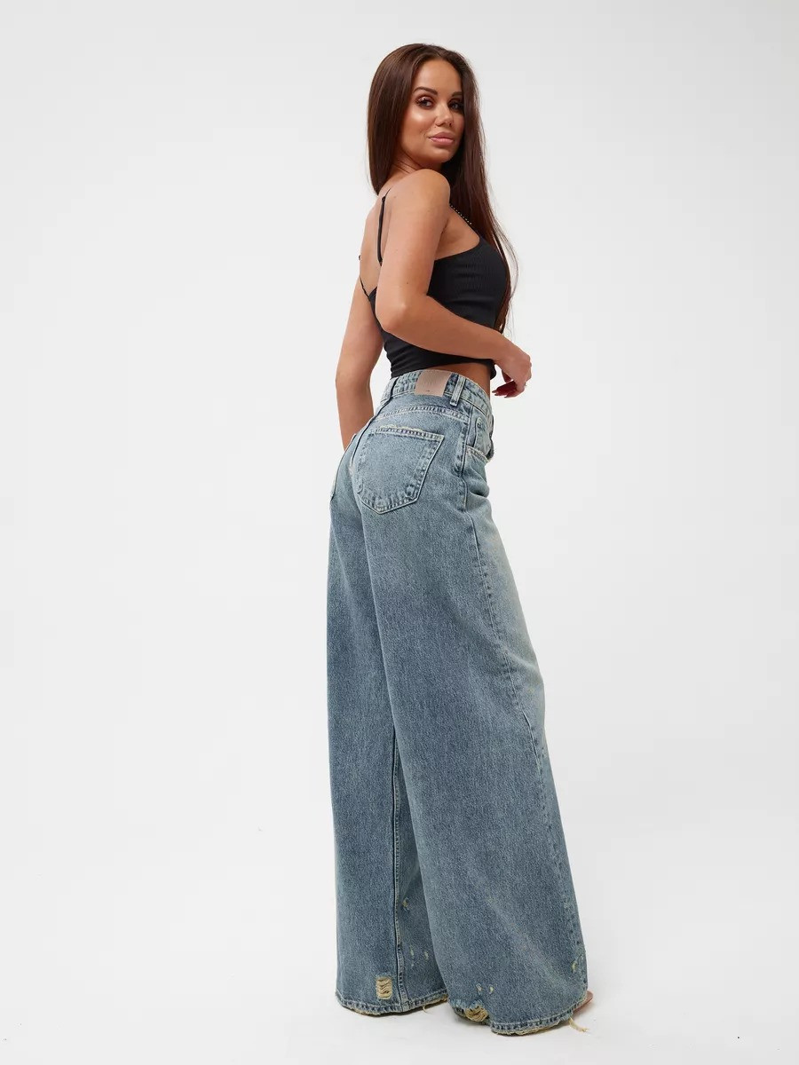 Skater Wide Leg с ретро-потёртостями и эффектом выстиранной ткани создают расслабленный силуэт и подчёркивают фигуру за счёт высокой талии. 100% хлопок — не тянется, но зато держит форму и выглядит дорого.