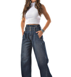 Женские широкие джинсы с поясом на высокий рост от CRACPOT, высокая посадка, богатый цвет, оригинальная и интересная модель Размер на модели: 25. Параметры модели: рост 173 см, грудь 88 см, талия 63 см, бедра 92 см.