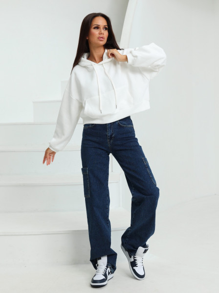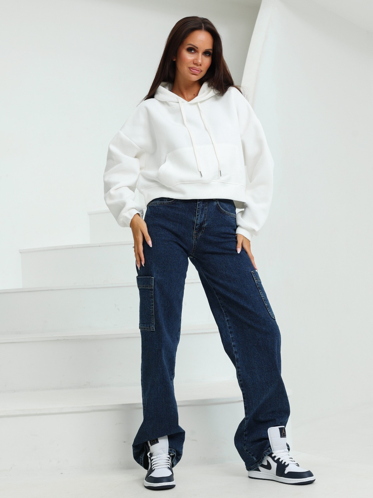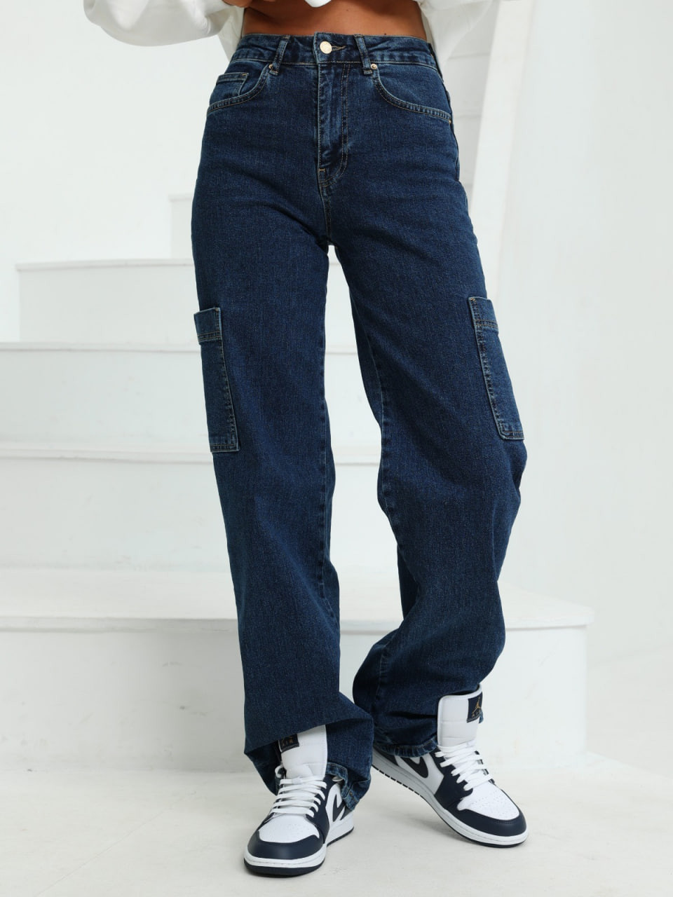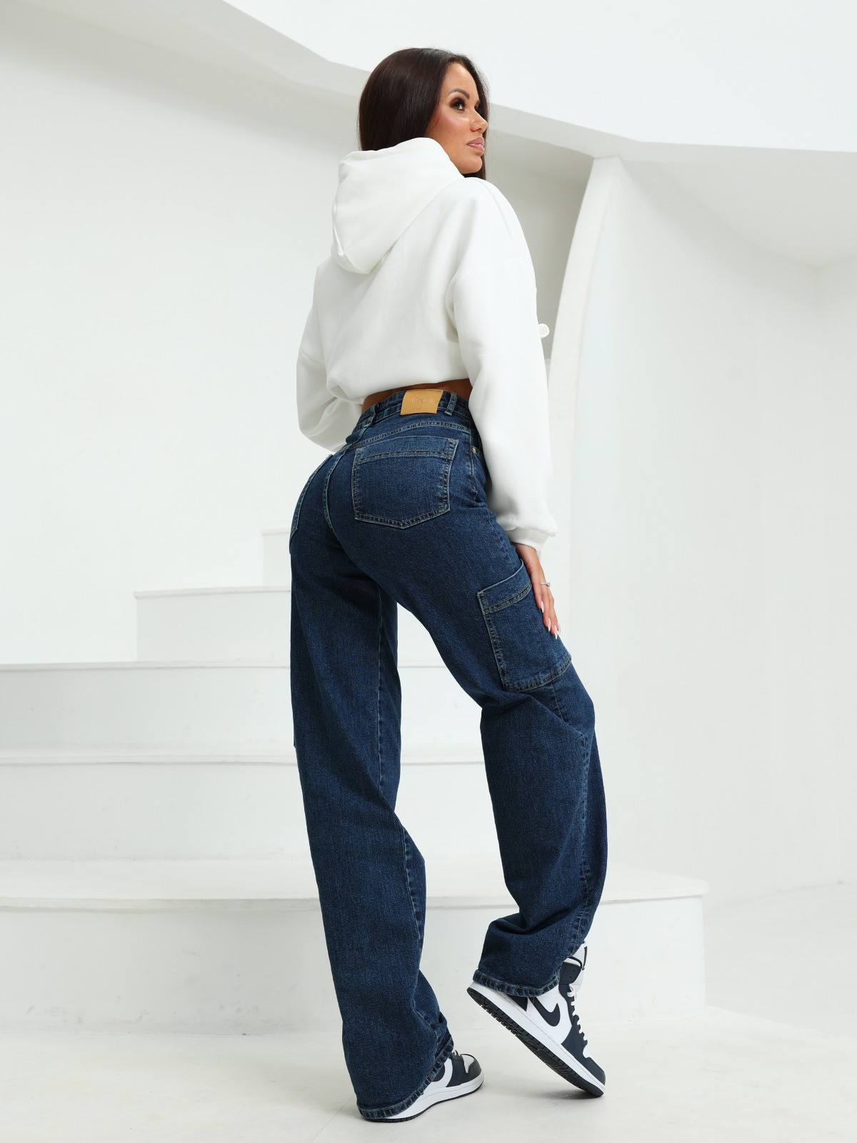 Высокая посадка подчёркивает талию, а боковые карманы визуально вытягивают бедро — универсальный приём для баланса пропорций. Джинсы, которые знают, чего ты хочешь от лета.