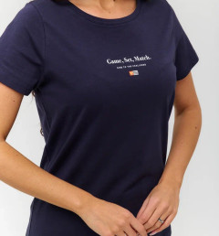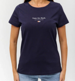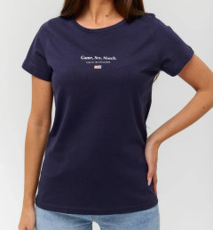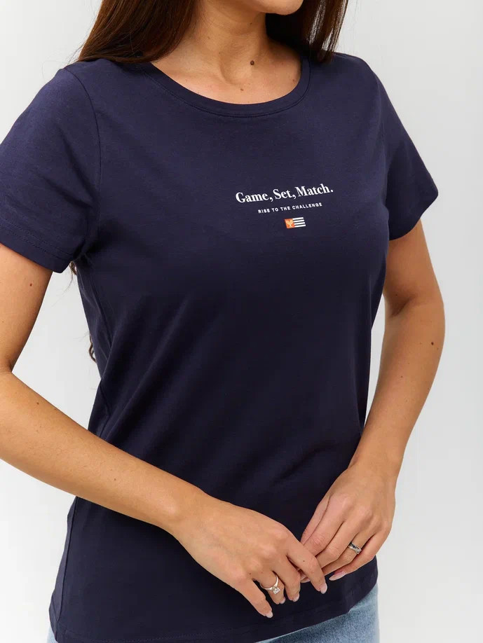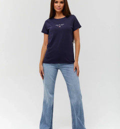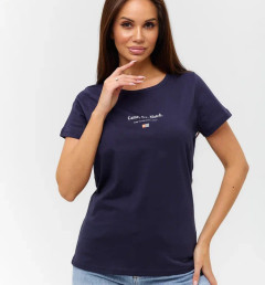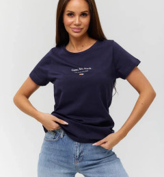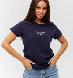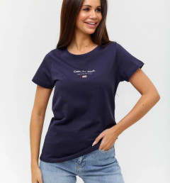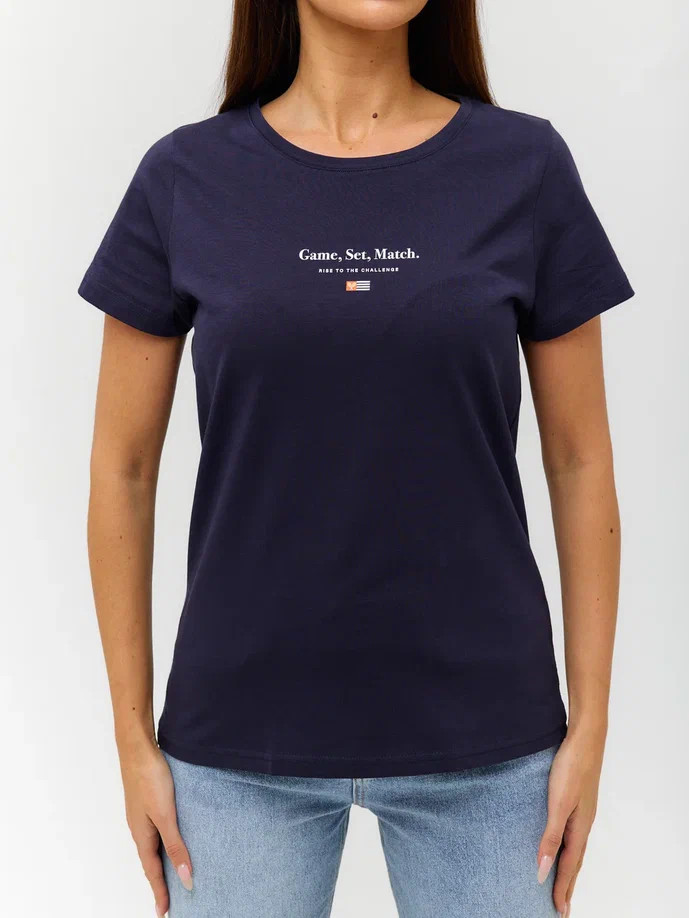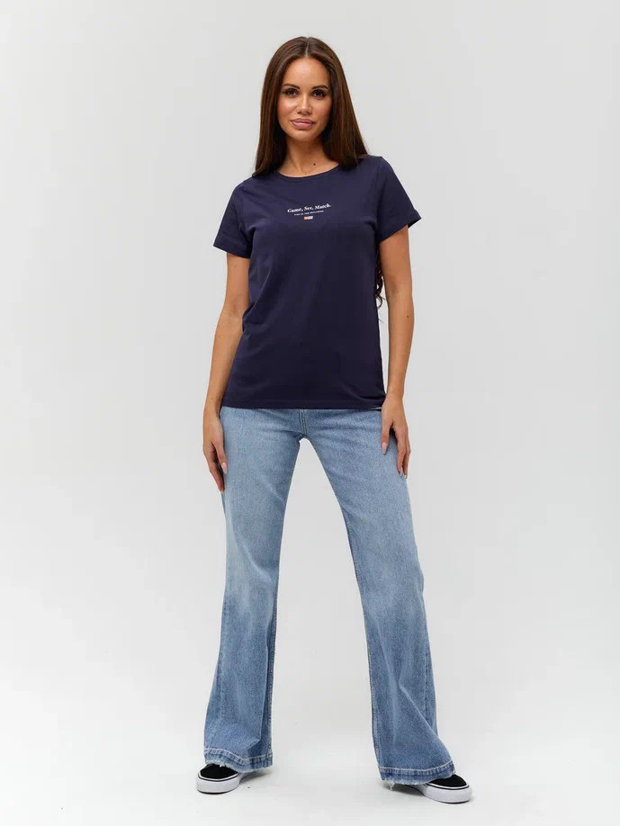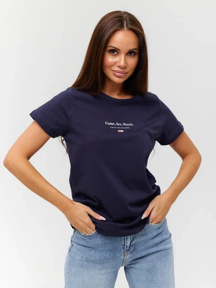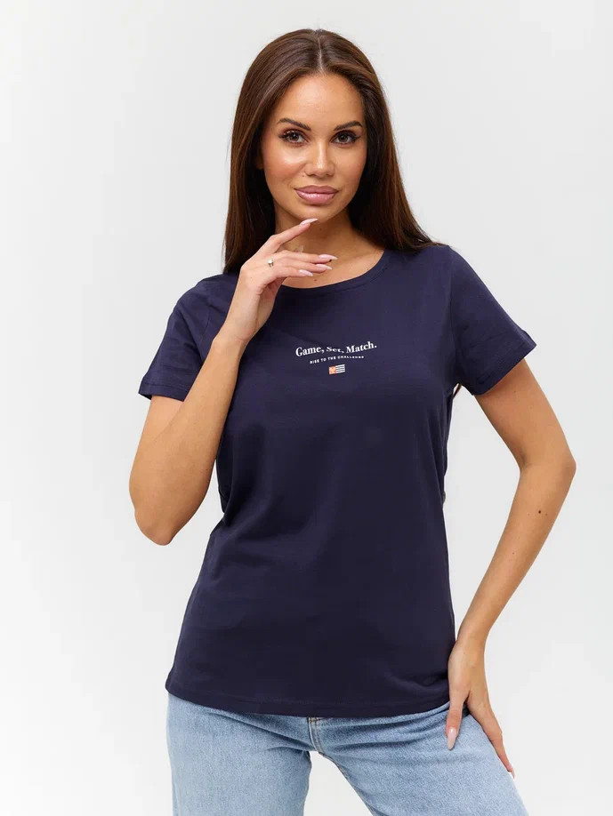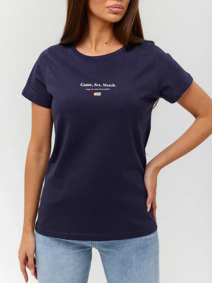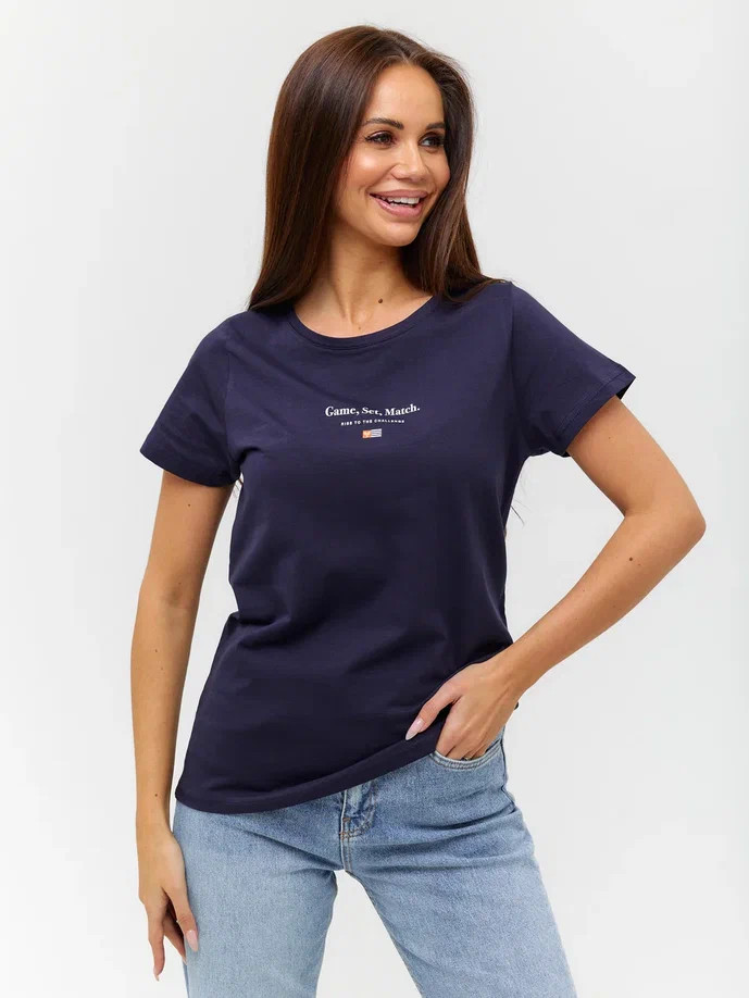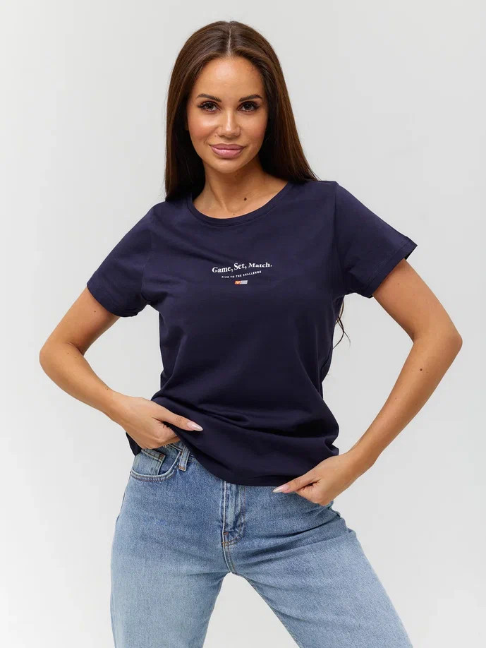 Футболка классического фасона Berrak темно-синего цвета прямого кроя, с коротким рукавом и округлым вырезом. Свободная посадка. С принтом. Рукав втачной с манжетом. Футболка сшита из 100 % хлопкового полотна.
