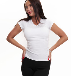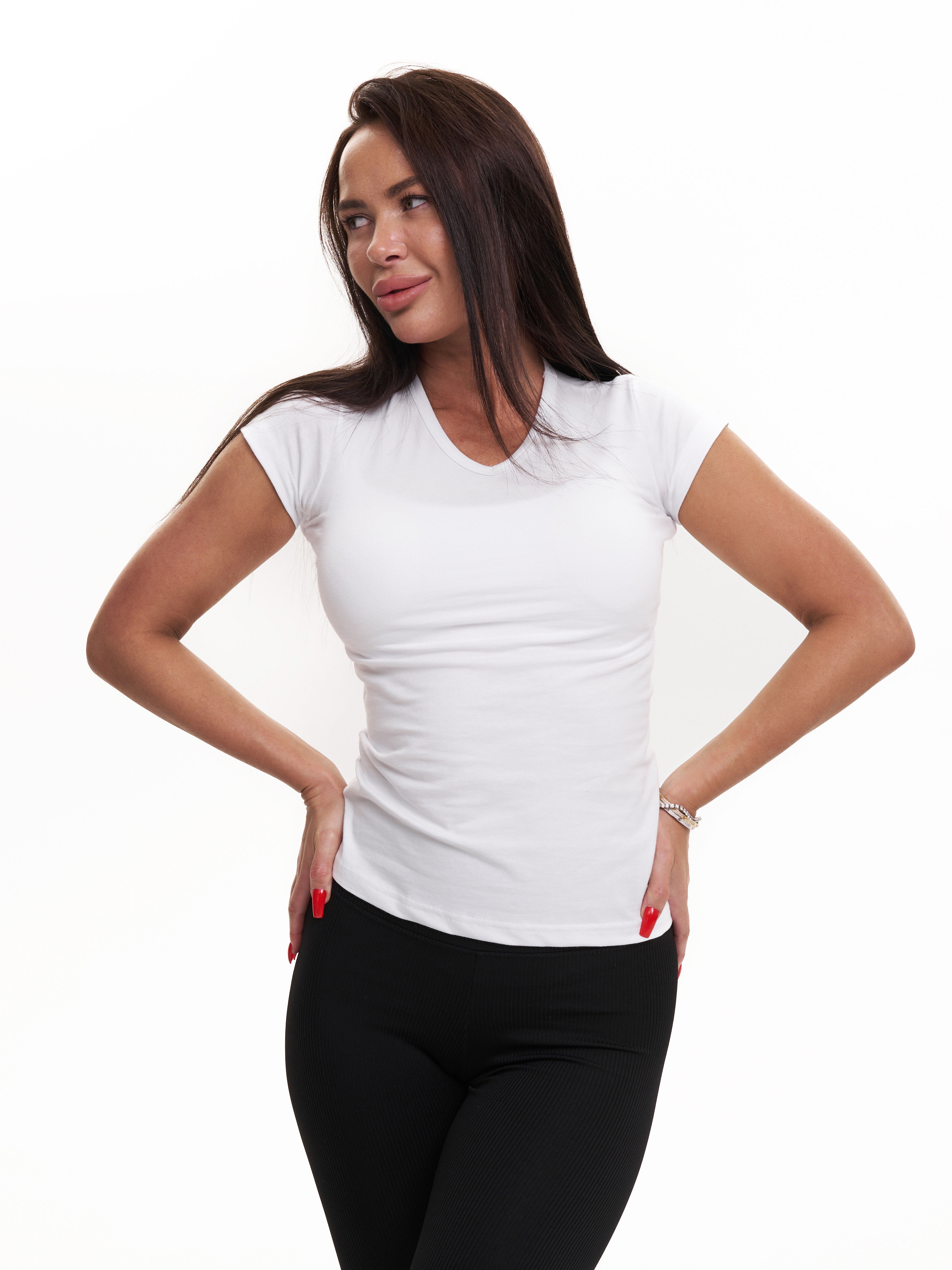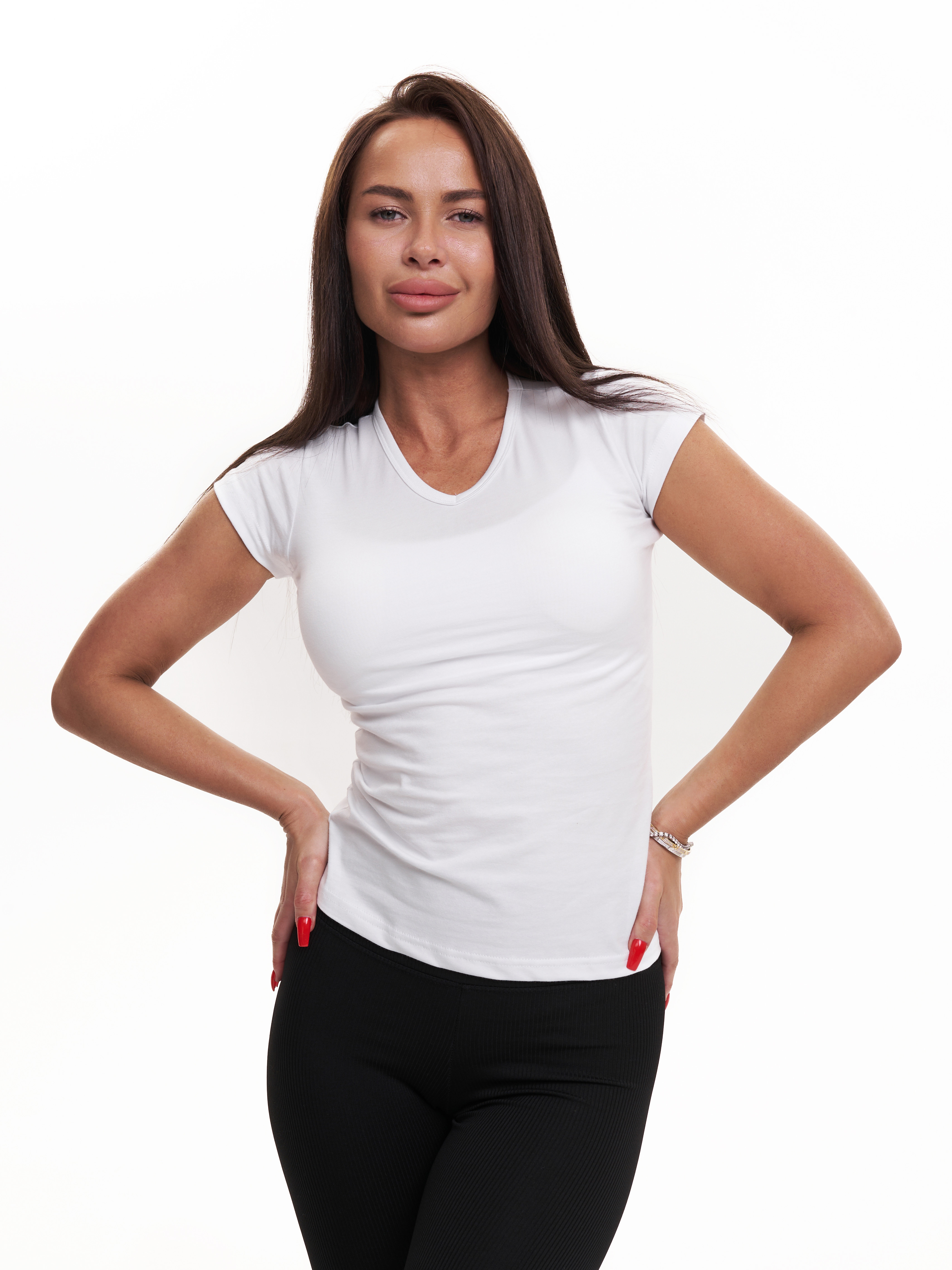 Базовая футболка Berrak белого цвета с V-образной горловиной, с коротким рукавом. Приталенная. Однотонная. Рукав втачной с манжетом. Немного маломерит, лучше брать на размер больше, чтобы свободно сидела