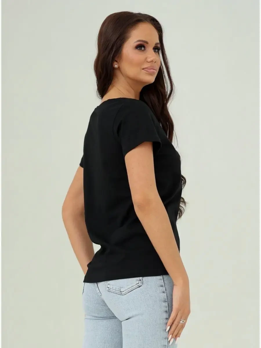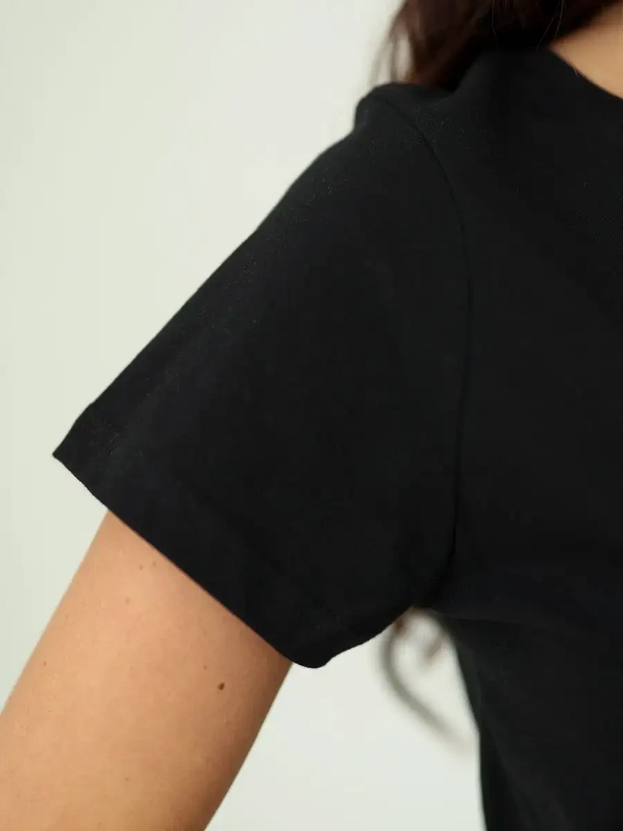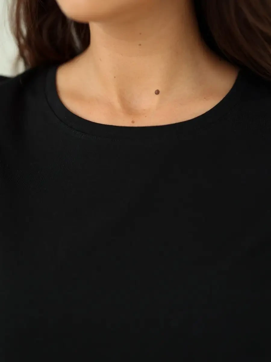 Футболка классического фасона Berrak черного цвета прямого кроя, с коротким рукавом и округлым вырезом. Свободная посадка.