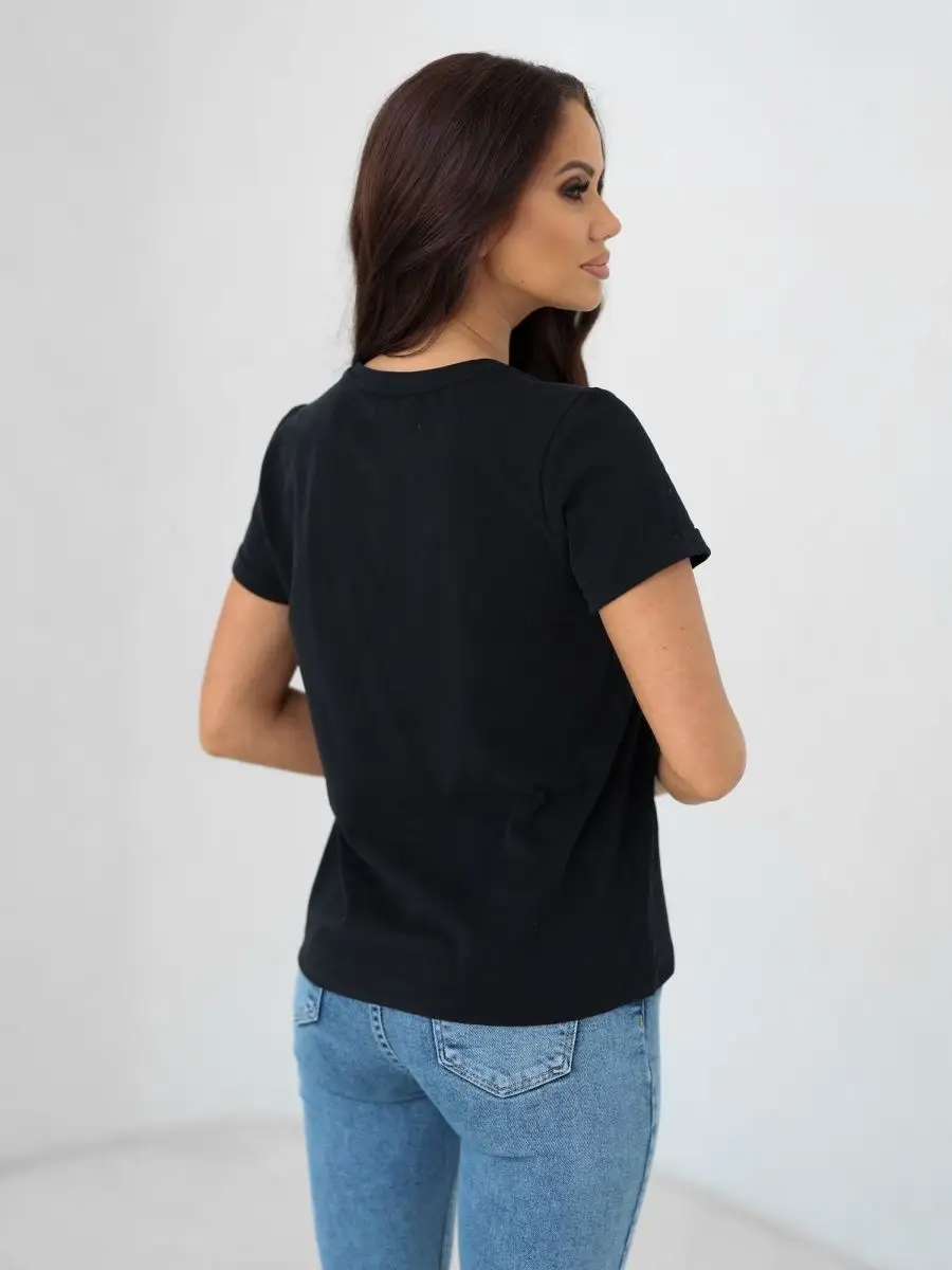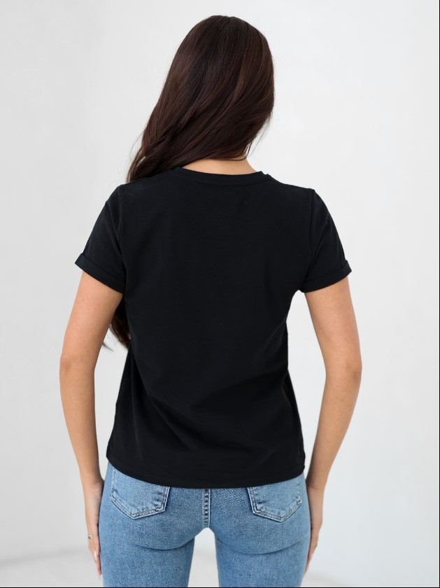 Размер на модели S. Длина изделия 59 см. Ширина футболки 46см. Длина рукава 17 см. Параметры модели на фото: Рост 173см, ОГ 89см, ОТ 62см, ОБ 93см.