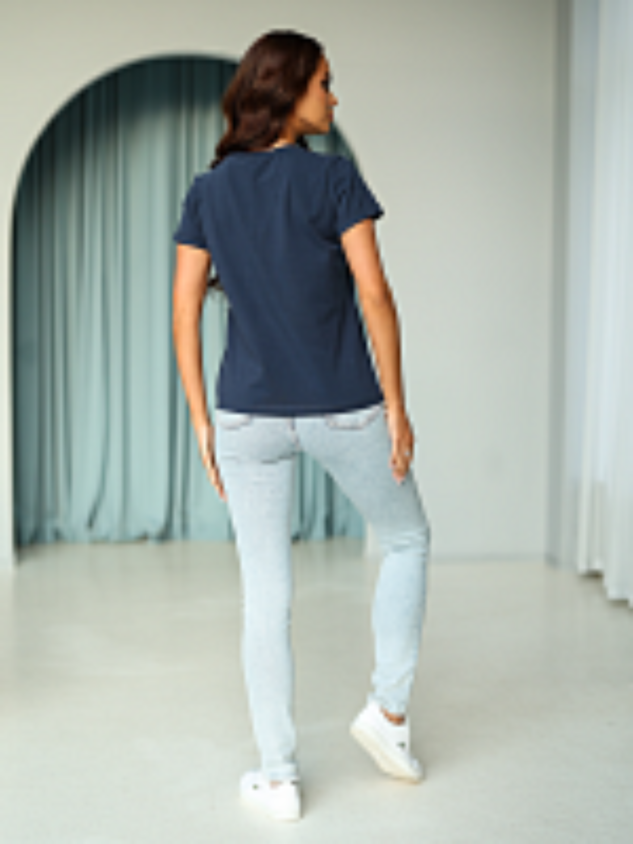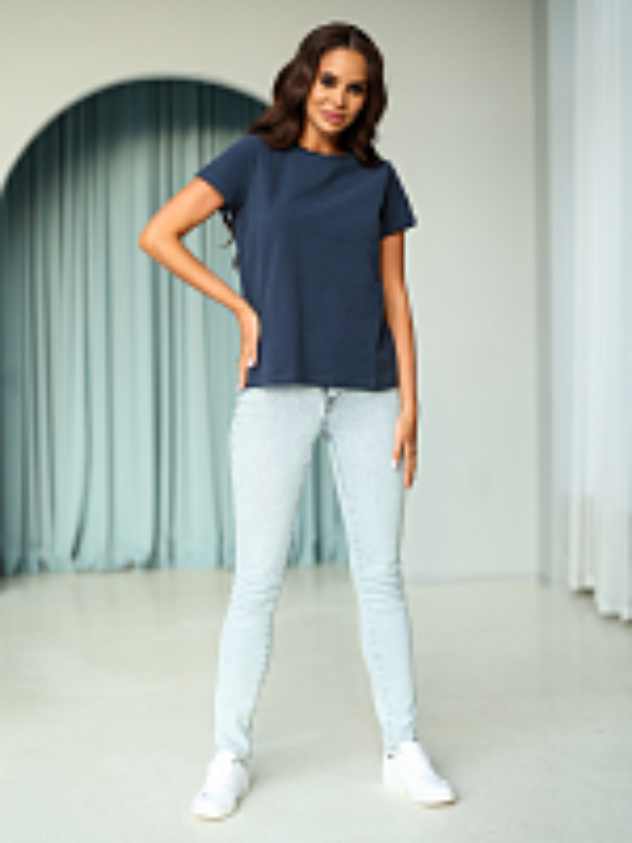 Размер на модели S. Длина изделия 59 см. Ширина футболки 46см. Длина рукава 17 см. Параметры модели на фото: Рост 173см, ОГ 89см, ОТ 62см, ОБ 93см.
