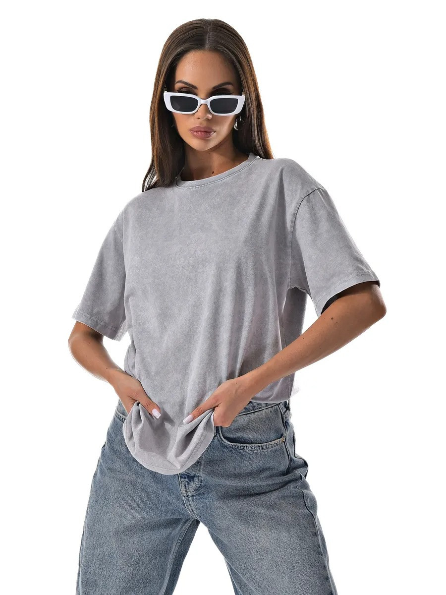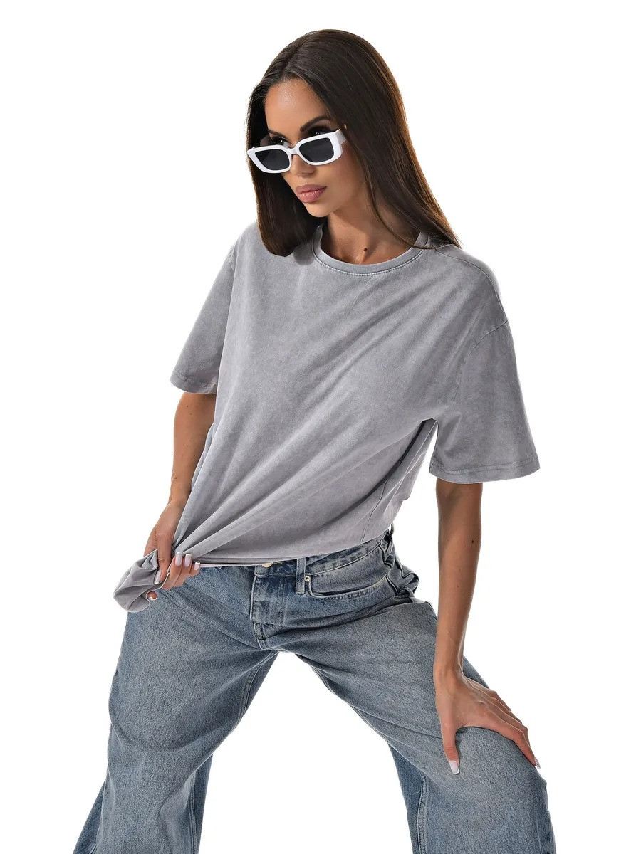 Женская футболка от бренда CRACPOT выполнена в стиле оверсайз с эффектом варенки. У нее свободный крой, округлая горловина и короткий рукав. Благодаря универсальному дизайну, эта футболка подходит как девушкам, так и мужчинам.