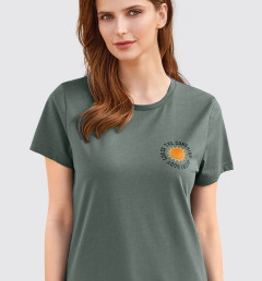 Женская футболка Berrak выполнена в классическом стиле с прямым кроем, что обеспечивает комфортную посадку и свободу движений. Модель имеет короткий рукав и круглый вырез горловины, создавая лаконичный и универсальный образ. Благодаря свободной посадке футболка подходит для повседневного ношения и сочетается с различными элементами гардероба.