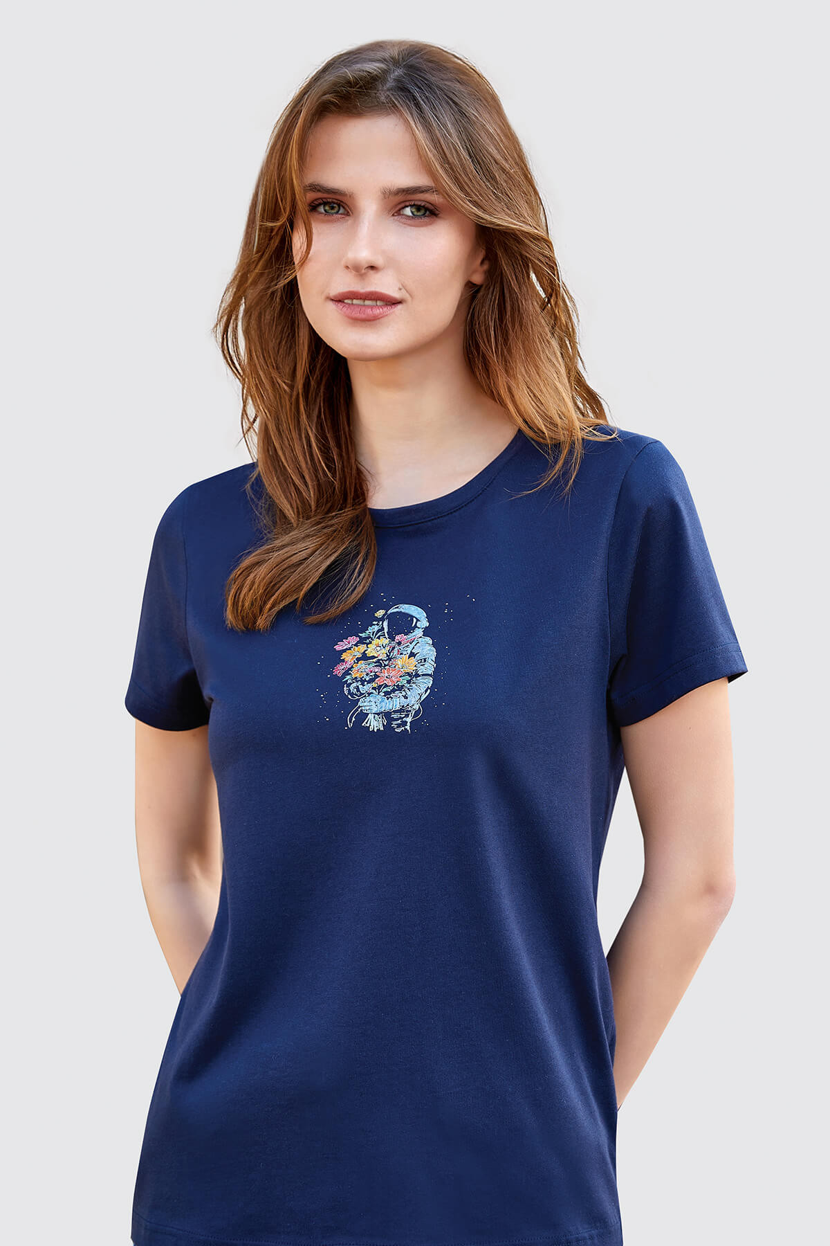 Женская футболка Berrak выполнена в классическом стиле с прямым кроем, что обеспечивает комфортную посадку и свободу движений. Модель имеет короткий рукав и круглый вырез горловины, создавая лаконичный и универсальный образ. Благодаря свободной посадке футболка подходит для повседневного ношения и сочетается с различными элементами гардероба.