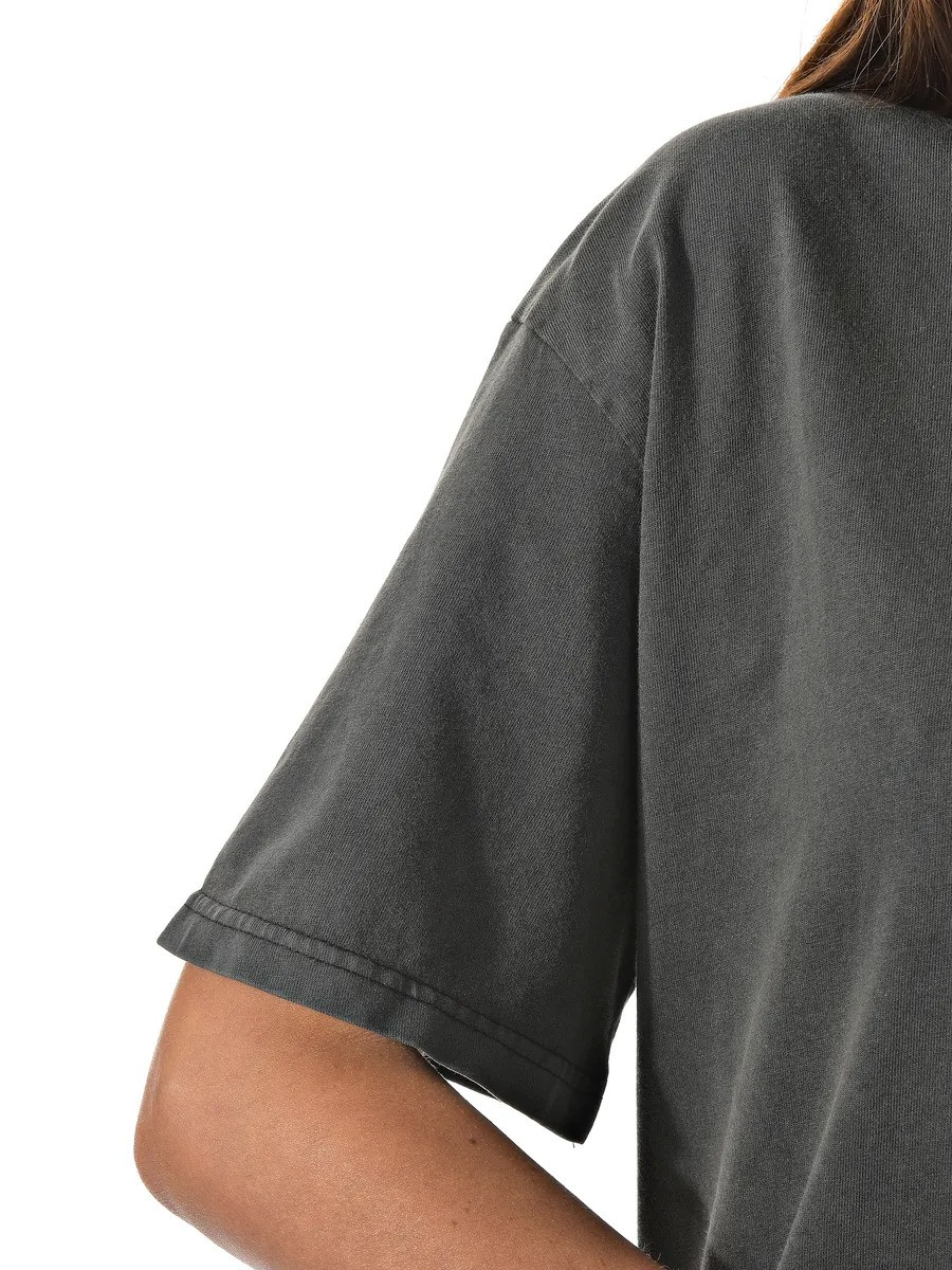 Женская футболка от бренда CRACPOT выполнена в стиле оверсайз с эффектом варенки. У нее свободный крой, округлая горловина и короткий рукав. Благодаря универсальному дизайну, эта футболка подходит как девушкам, так и мужчинам.