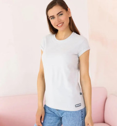 Женская футболка белая прямого кроя. Классическая модель для повседневной носки как под джинсы стиля Casual так и офисного стиля.