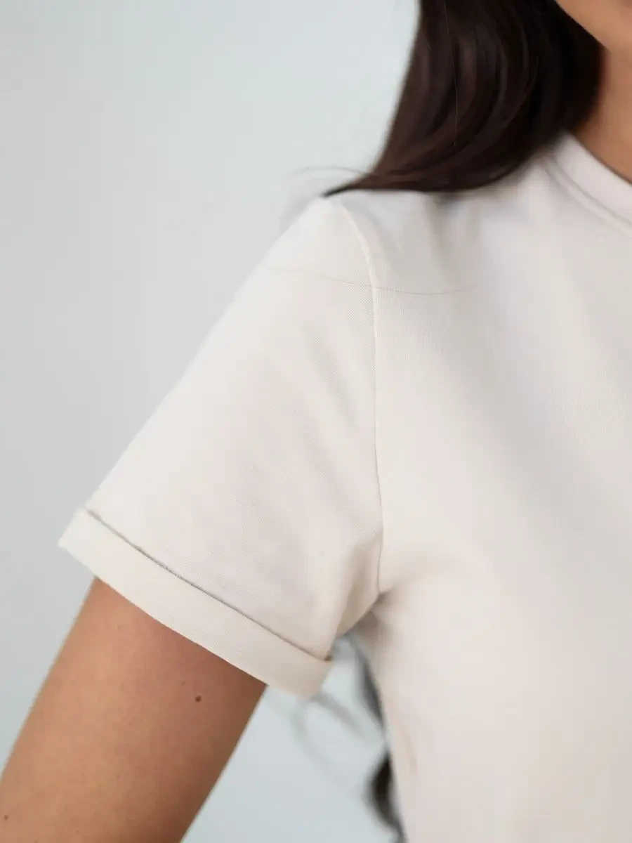 Футболка имеет состав - хлопок 92%, эластан 8%, что обеспечивает мягкий и приятный на ощупь материал, который не вызывает раздражения кожи. Кроме того, эластан обеспечивает эластичность ткани, что позволяет футболке сохранять форму даже после многократных стирок.