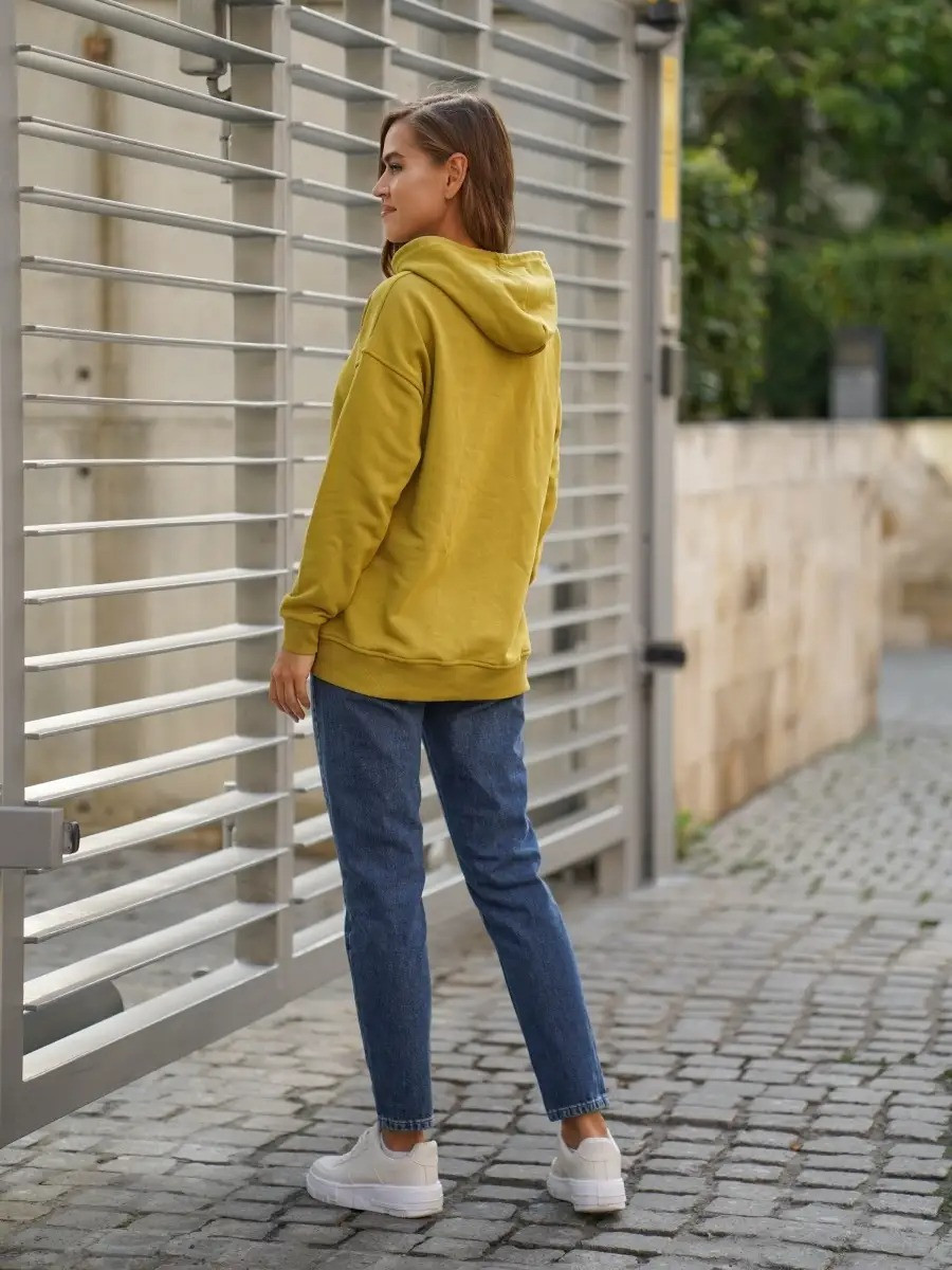Худи с капюшоном, выполненное из высококачественного хлопка, не только обеспечивает комфорт, но и служит долго. Отсутствие принта позволяет сочетать его как с джинсами, так и со спортивными штанами или леггинсами, что делает его универсальным выбором для молодежи.