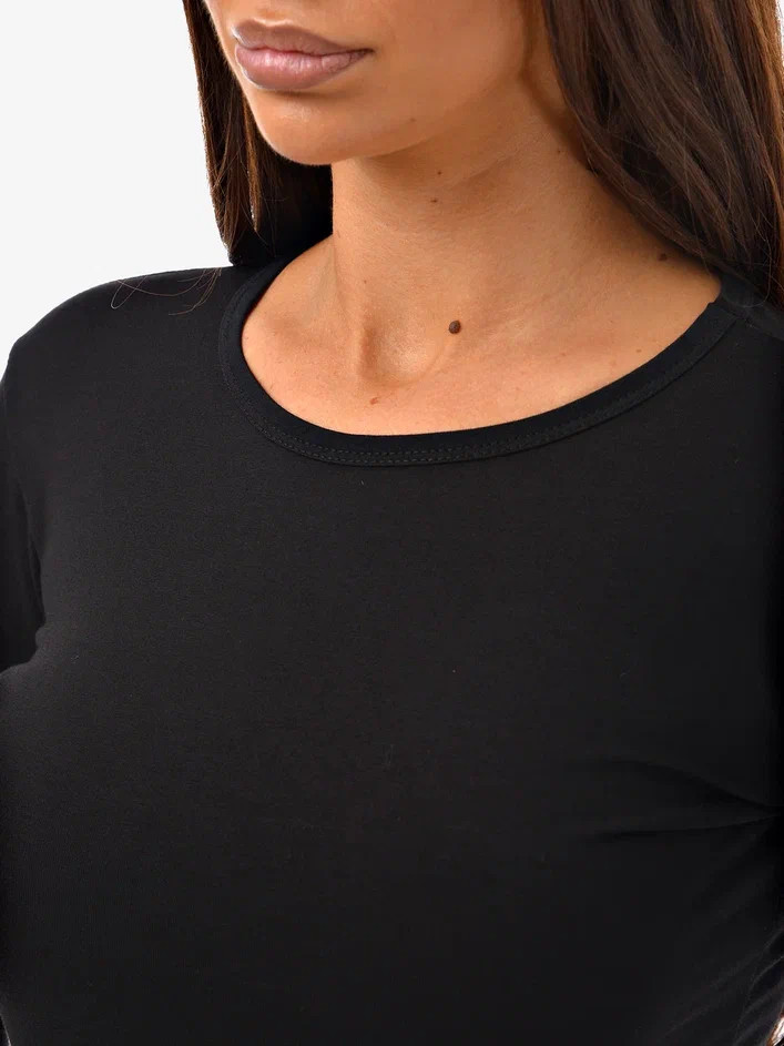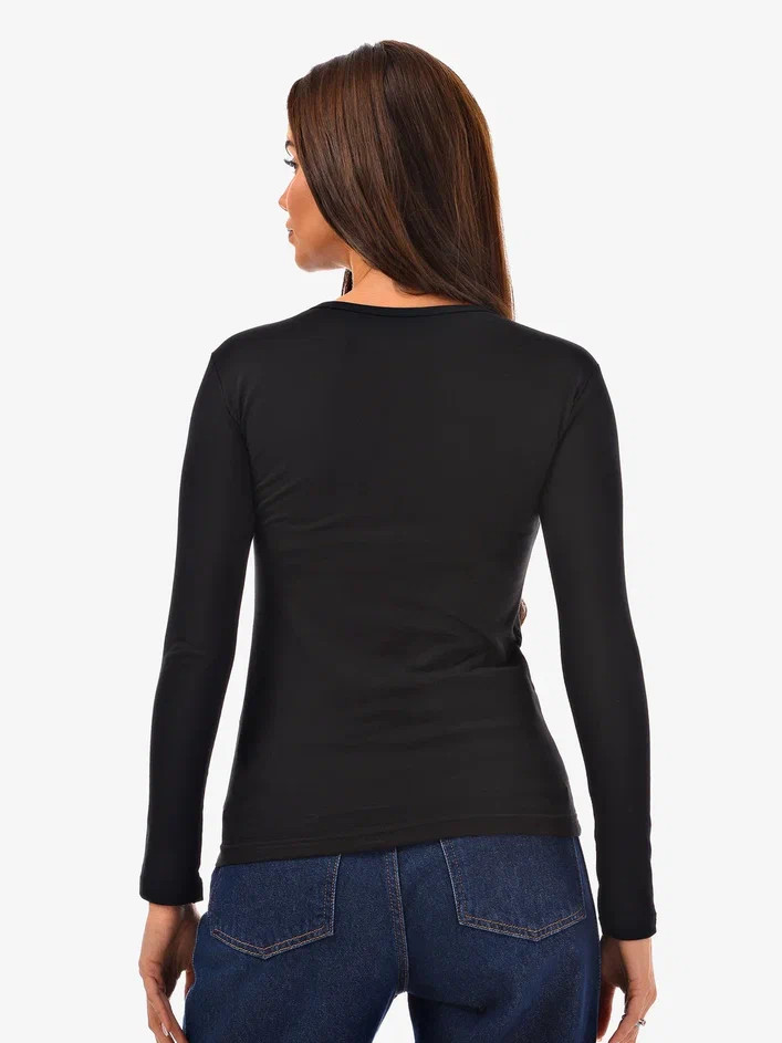 Лонгслив Kota выполнен из тонкой ткани на 93% из хлопка с небольшим количеством эластана для придания изделию эластичности. Идеально для переходного периода лето-осень, весна-лето. Этот лонгслив выполнен из высококачественного хлопка, что обеспечивает комфорт и приятные ощущения при носке. Черный цвет придает строгость и элегантность. Лонгслив имеет классический крой, который подчеркивает женственность и изящность фигуры. Он идеально сидит на теле, не сковывает движений и не вызывает дискомфорта.