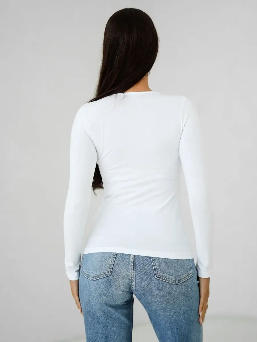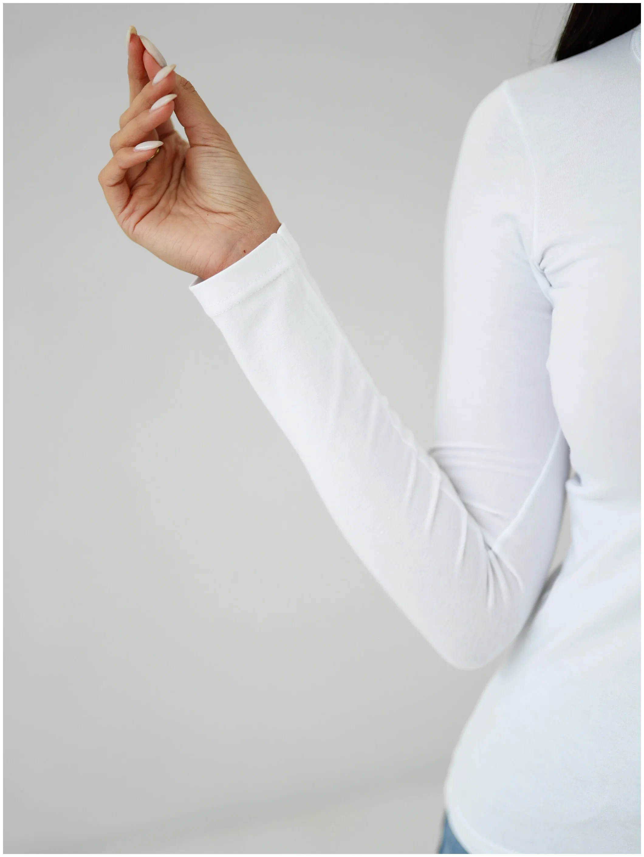 Лонгслив Kota выполнен из тонкой ткани на 93% из хлопка с небольшим количеством эластана для придания изделию эластичности. Идеально для переходного периода лето-осень, весна-лето. Этот лонгслив выполнен из высококачественного хлопка, что обеспечивает комфорт и приятные ощущения при носке. Белый цвет придает образу свежесть и легкость, а черный - строгость и элегантность. Лонгслив имеет классический крой, который подчеркивает женственность и изящность фигуры. Он идеально сидит на теле, не сковывает движений и не вызывает дискомфорта.