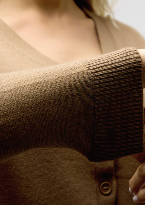 - Дизайн: Укороченная длина, доходящая примерно до линии талии или немного ниже, делает его идеальным дополнением к любому гардеробу. Кардиган на пуговицах позволяет регулировать степень открытости, создавая разнообразные стили.