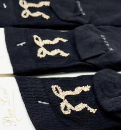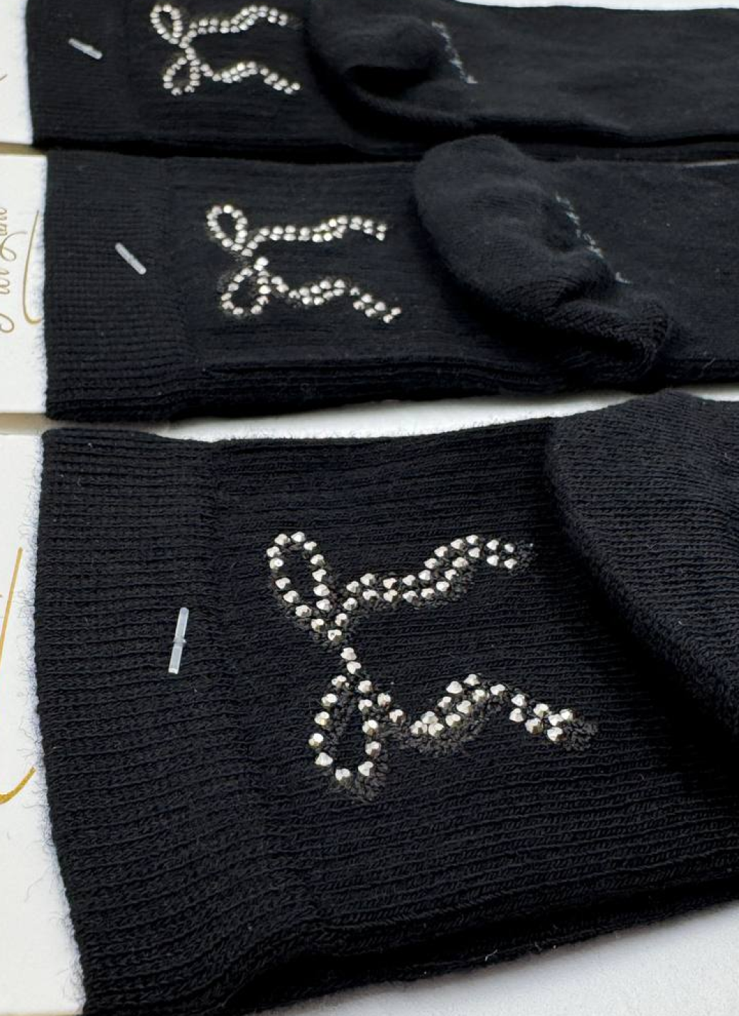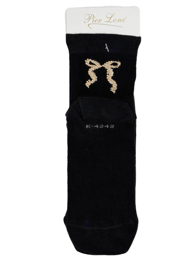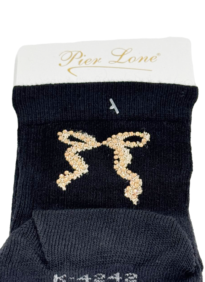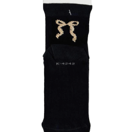 Основной цвет черный с декоративным элементом в виде бантика серебряного и золотого цветов.