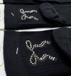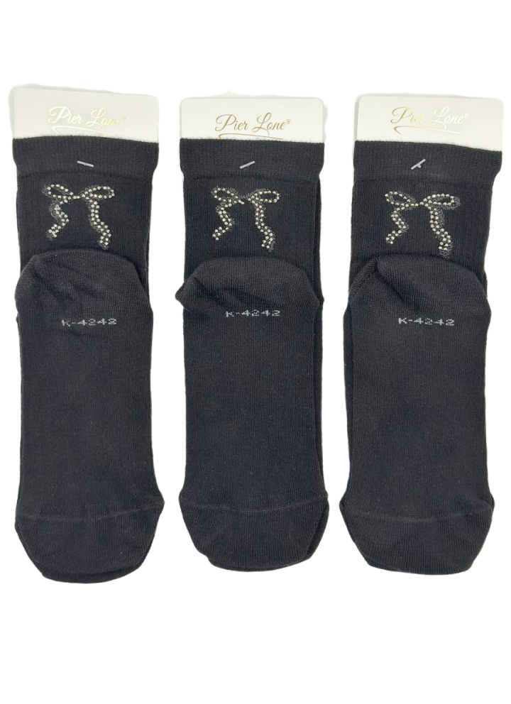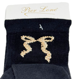 Носки с декоративным элементом в виде бантика золотого цветов.