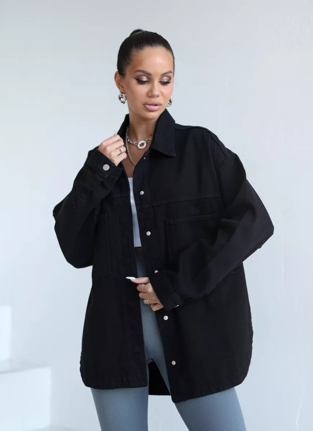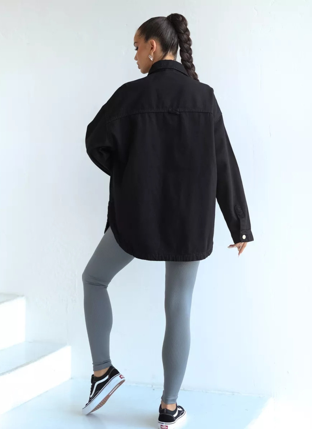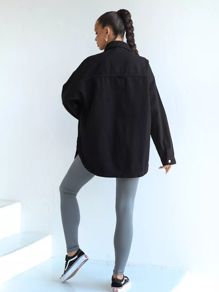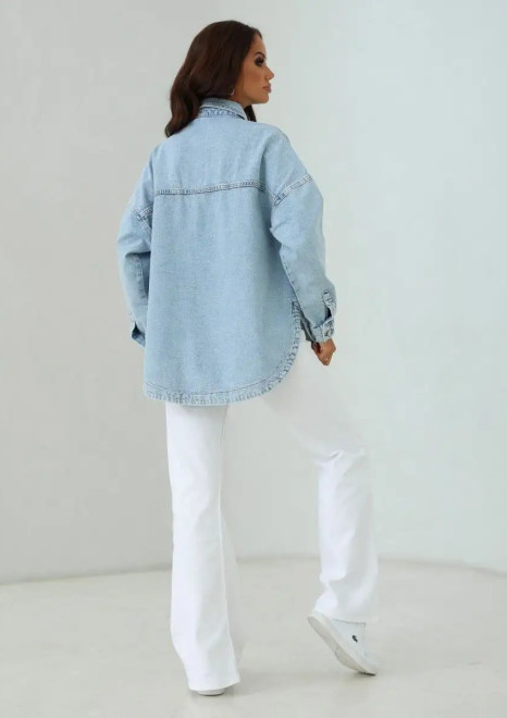 Длина изделия по спинке составляет 76 см, длина рукава по внутреннему шву — 45 см, а по внешнему — 51 см. Модель представлена в размере S.