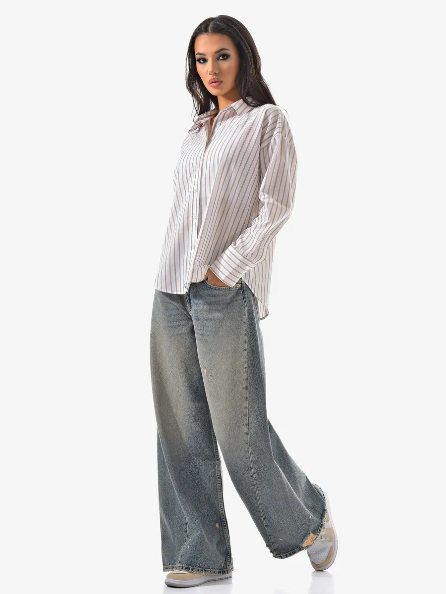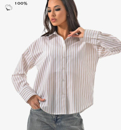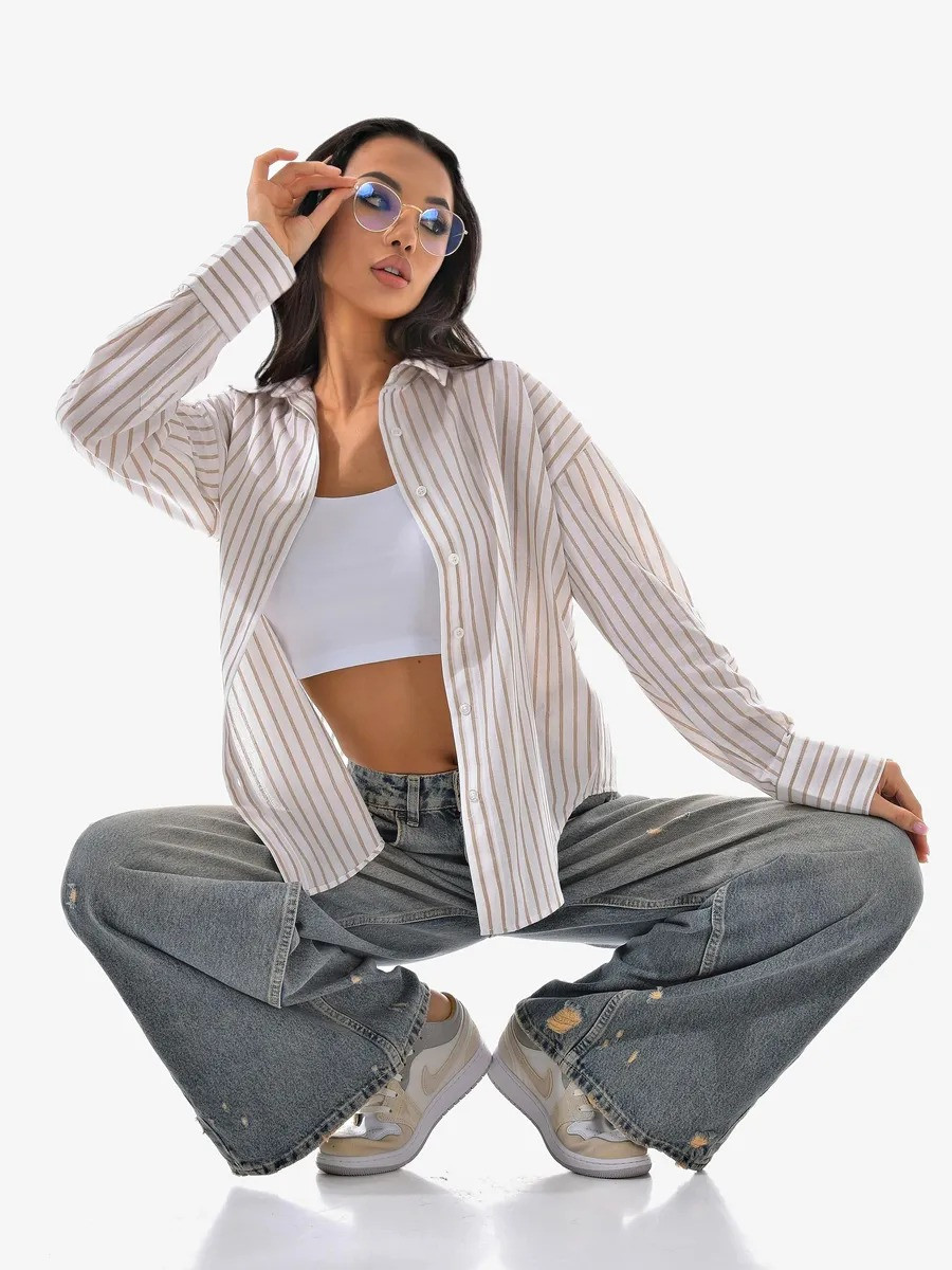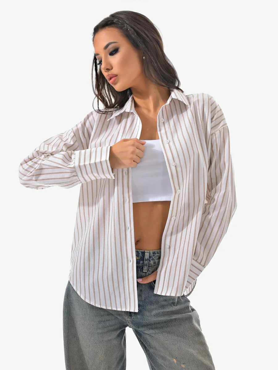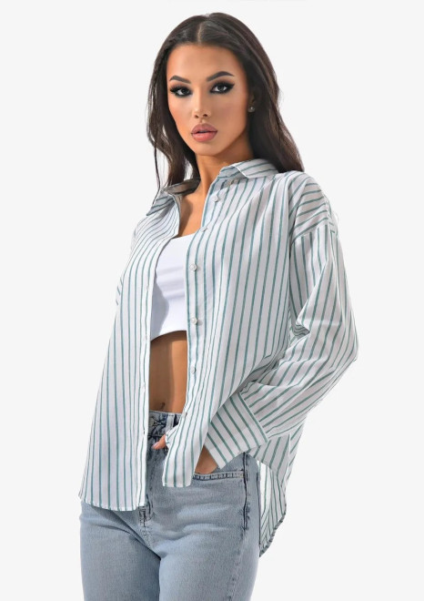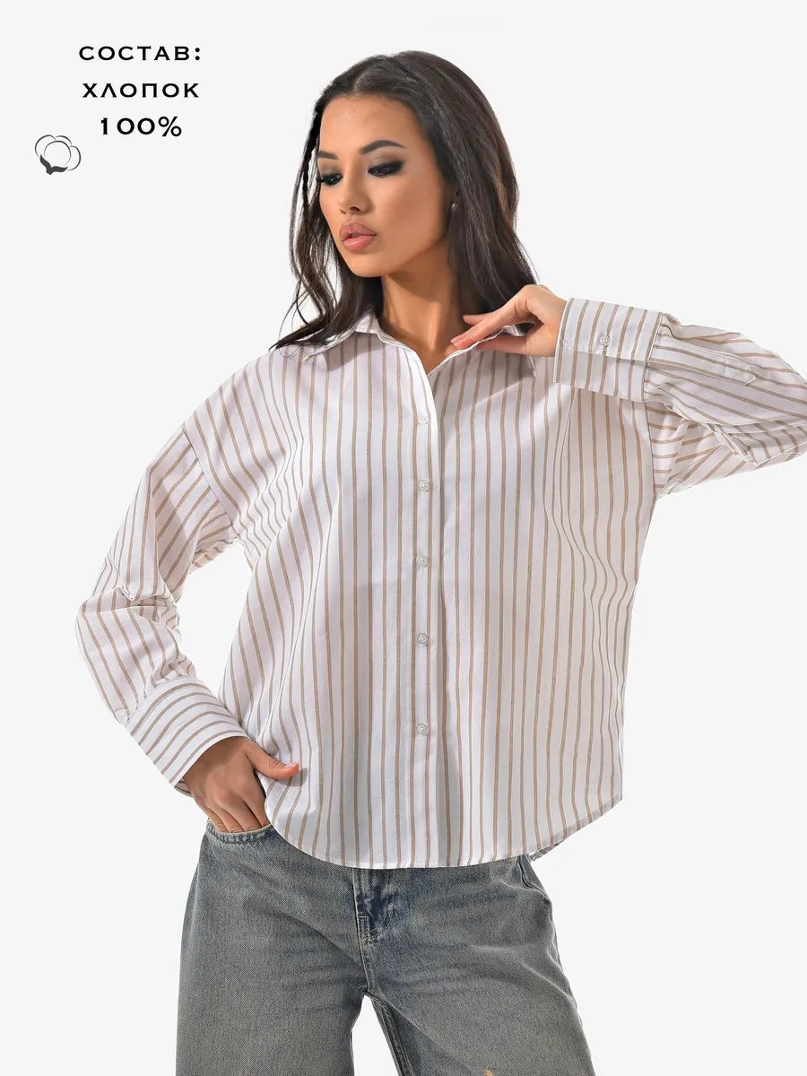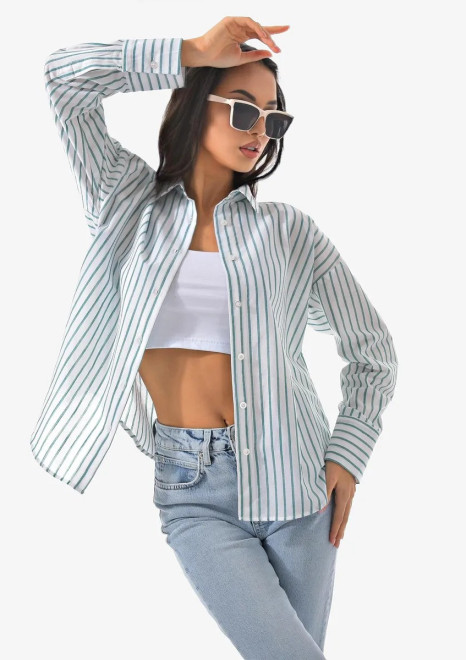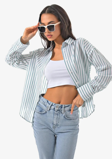 Эта хлопковая рубашка в полоску с v-образным вырезом станет настоящей находкой для вашего гардероба. Она отличается свободным кроем и выполнена из высококачественного турецкого хлопка, который гарантирует комфорт и уют.