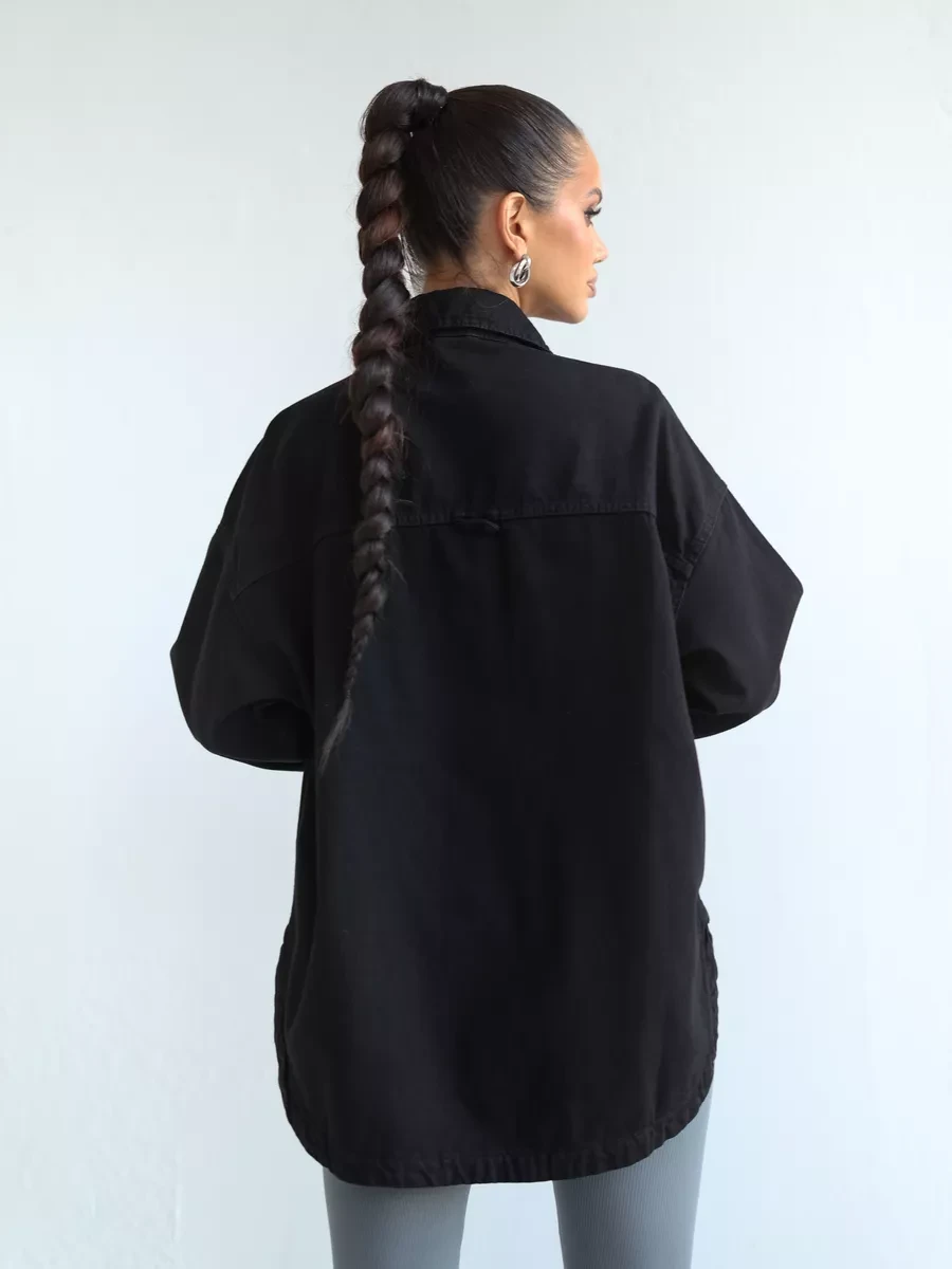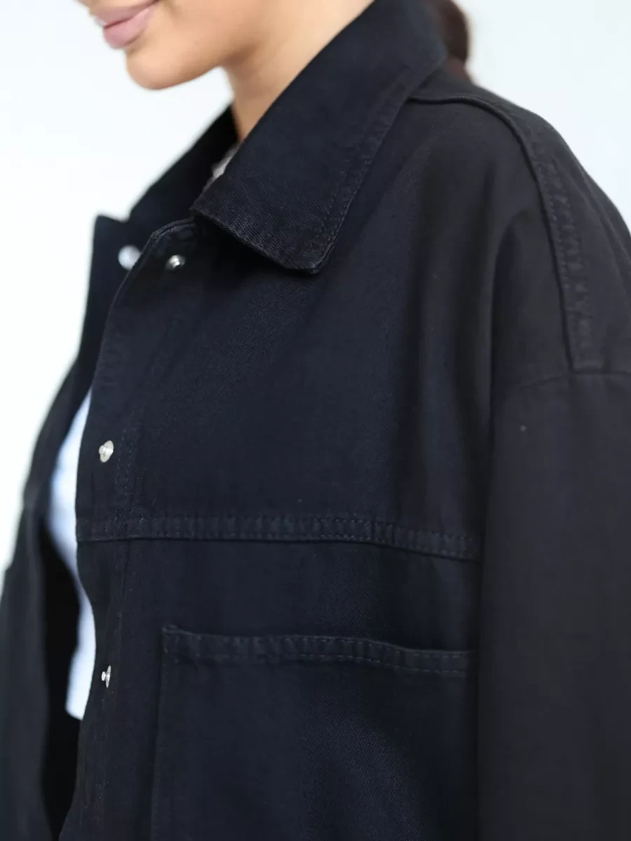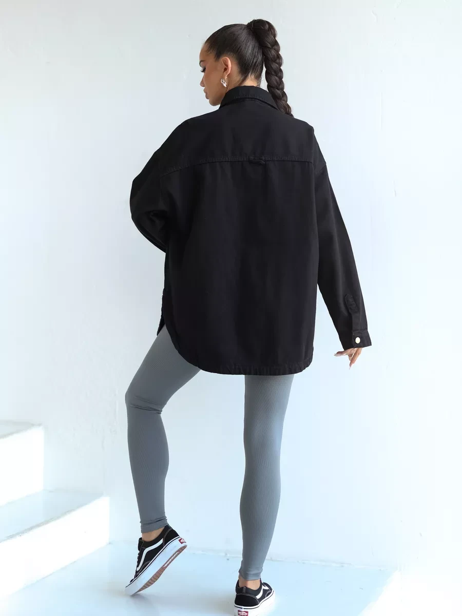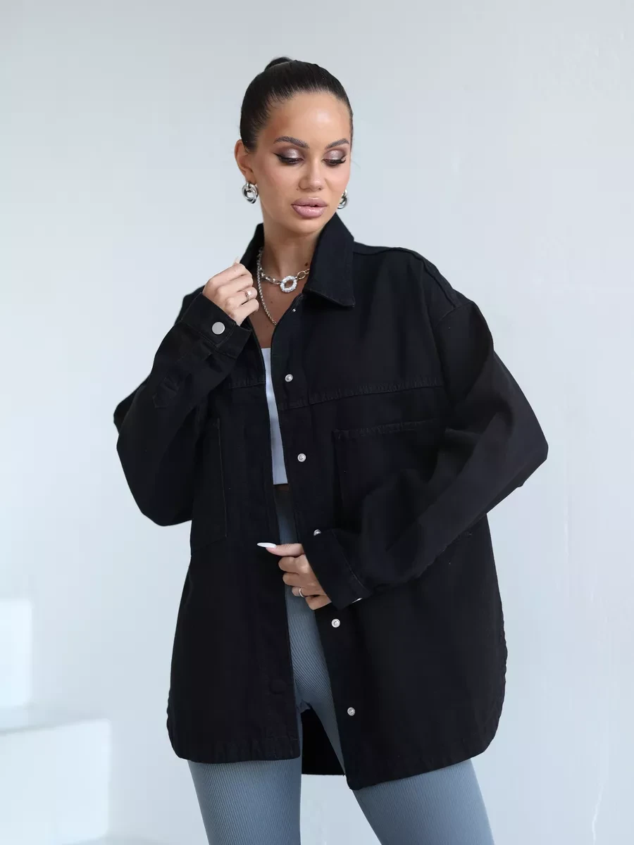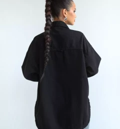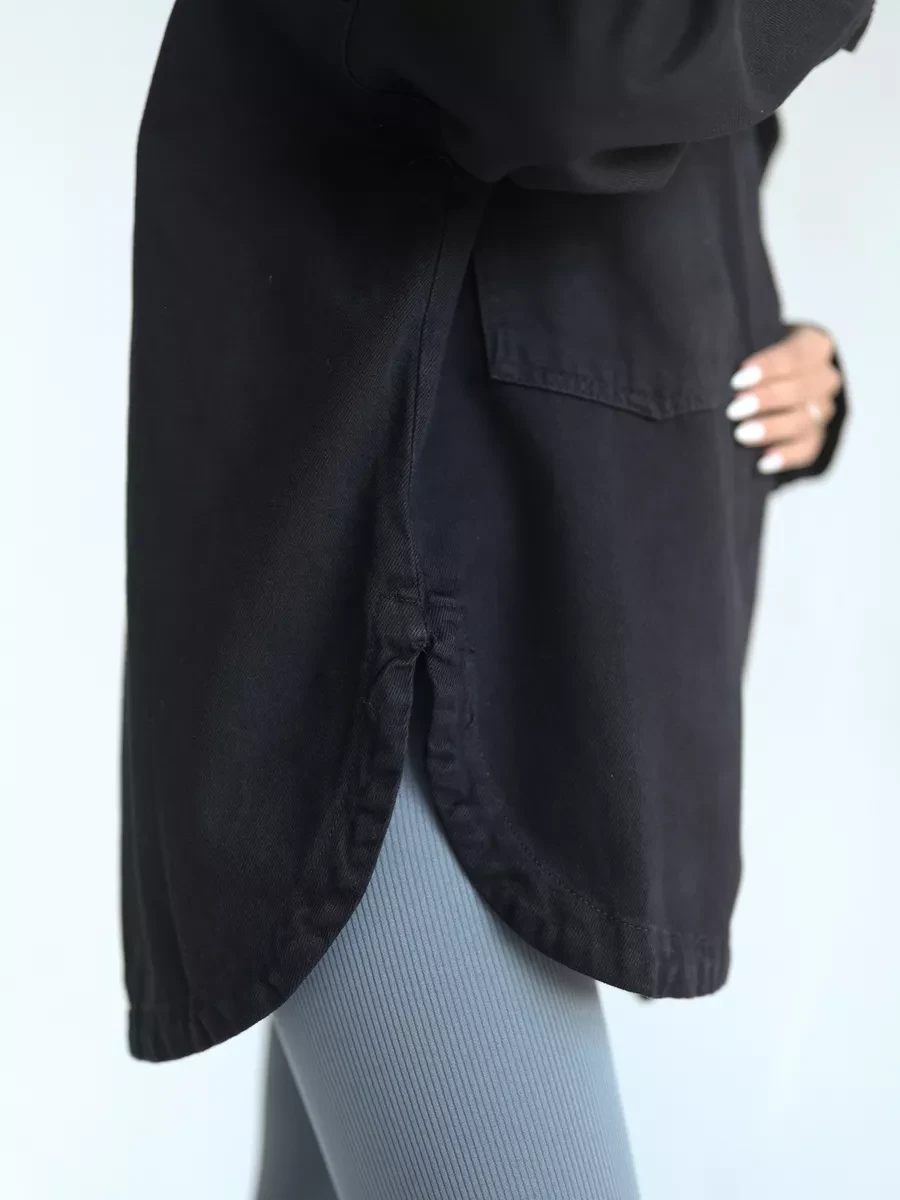 Эта женская рубашка, застегивающаяся на кнопки, отличается длиной рукава и стильными карманами. Она имеет воротник, который можно как поднять, так и сложить вниз, что позволяет создавать разнообразные базовые образы.