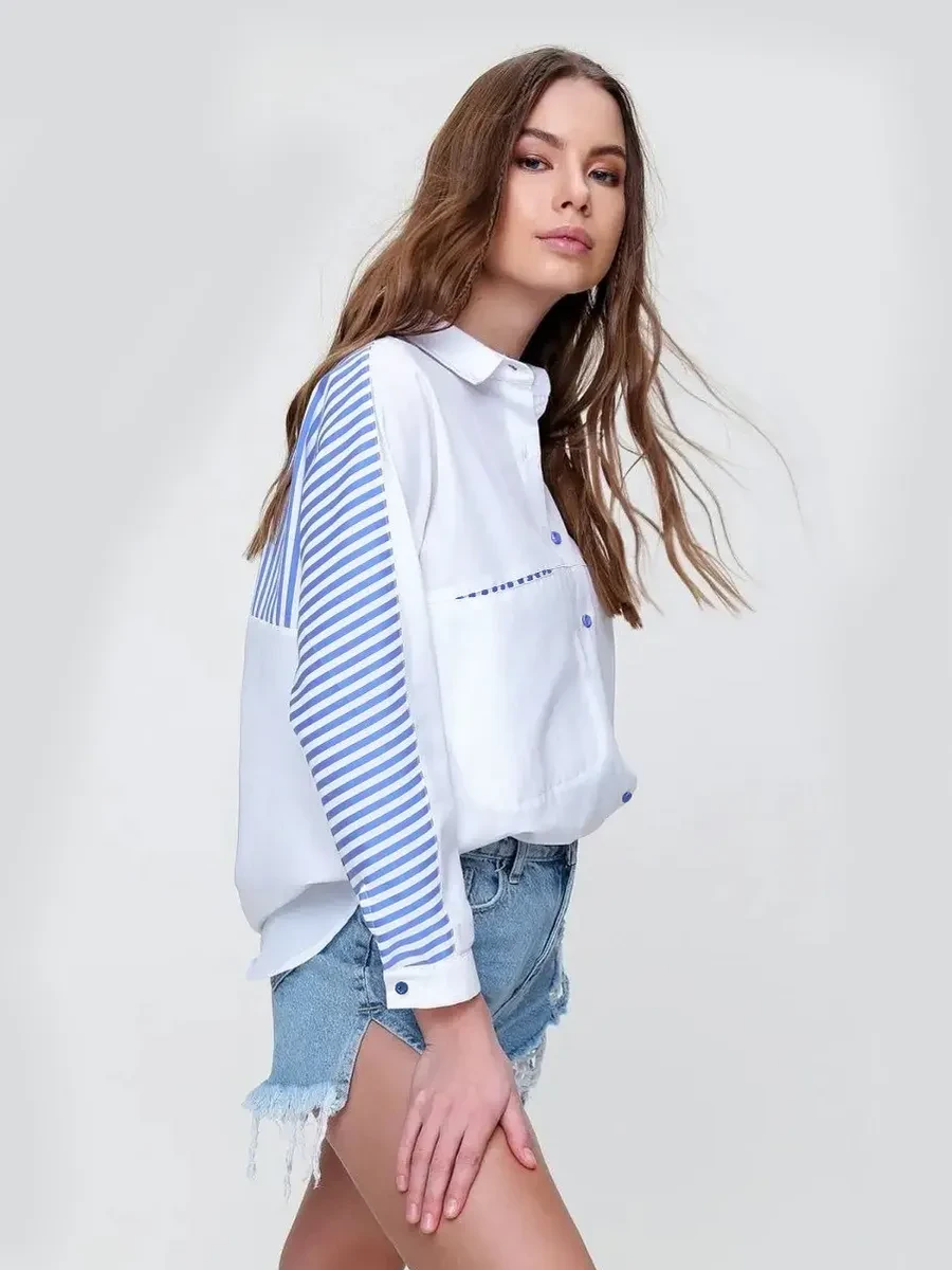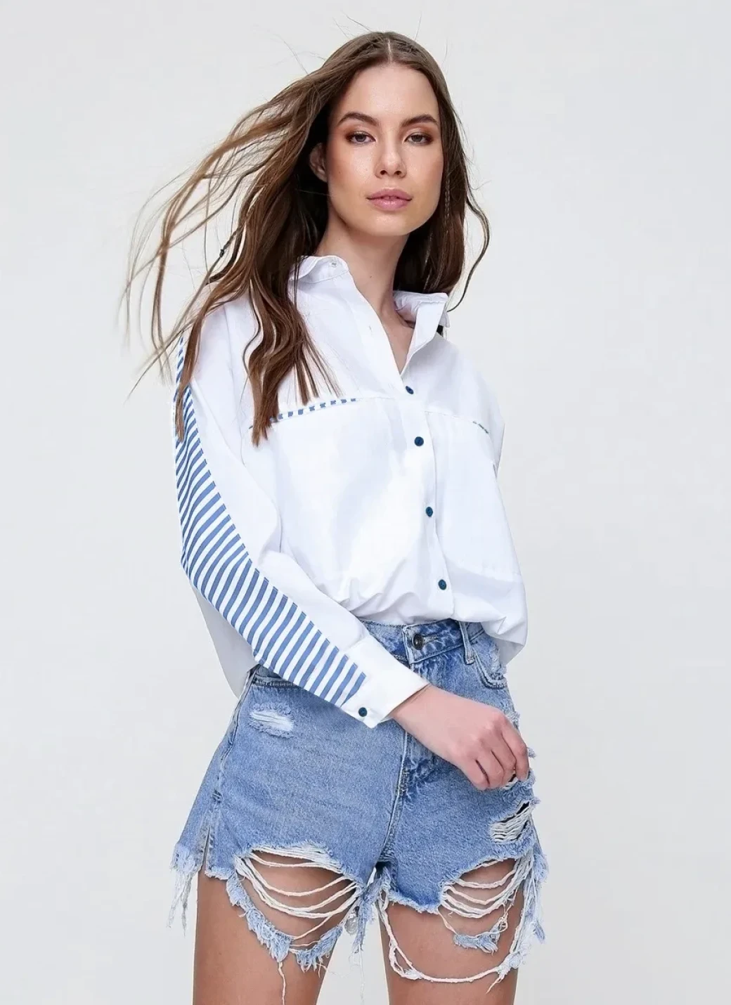 Женская рубашка, выполненная из тонкого турецкого хлопка, сочетает в себе классический стиль и современные тенденции моды. Ее отличает высокое качество материала и аккуратная отделка, что делает ее идеальной для создания стильных и элегантных образов.
