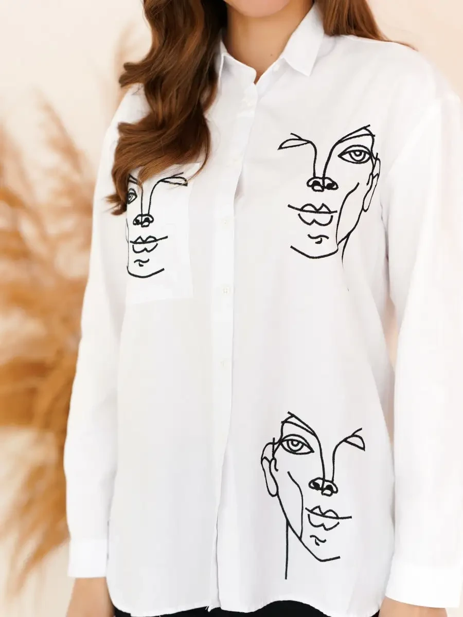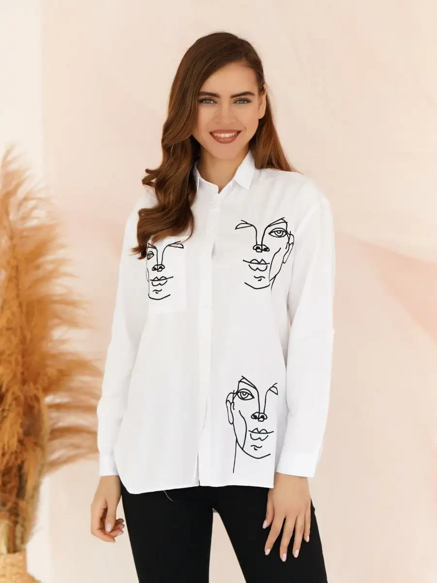 Женская рубашка с вышивкой лица First Way