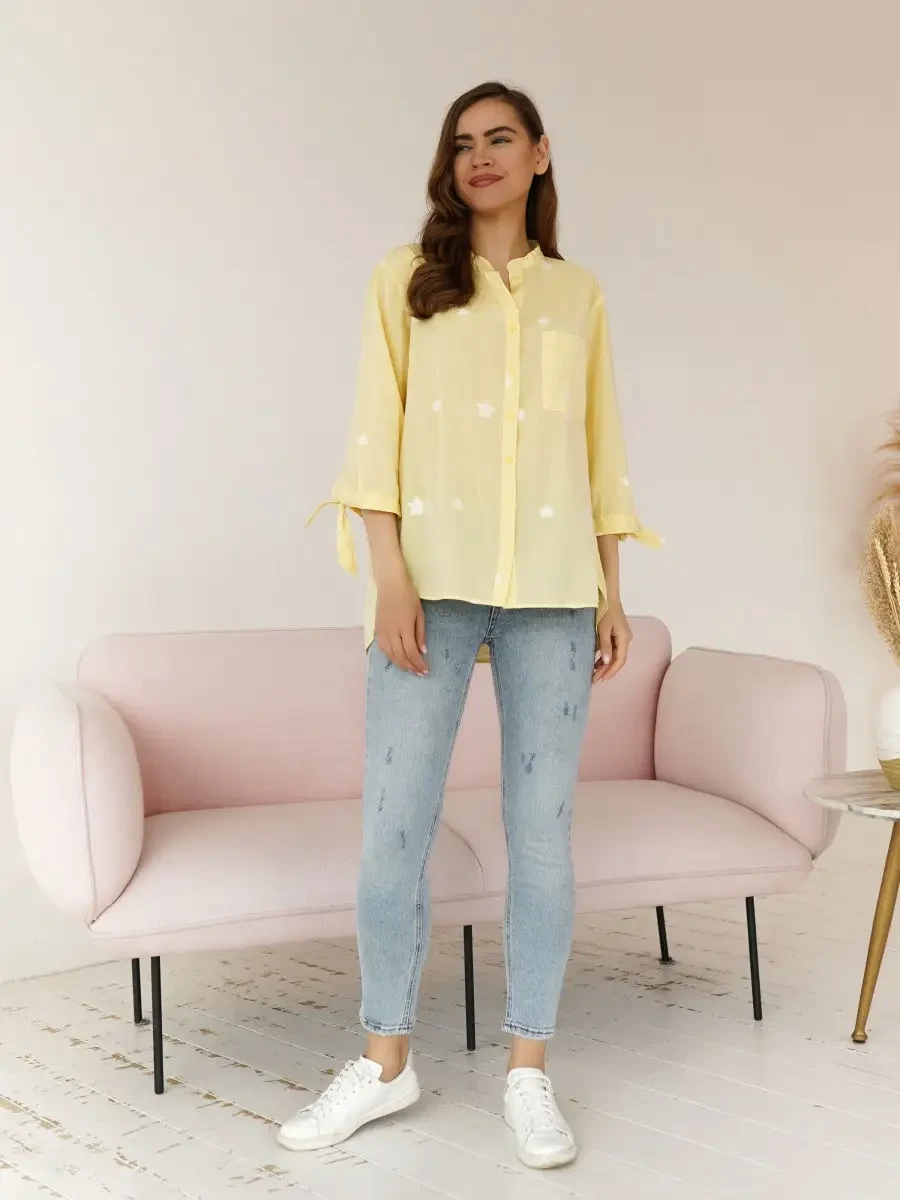 Рубашки подходят как для весенне-летнего сезона, так и для прохладной погоды. Рост модели — 174 см, размер — 36.