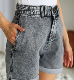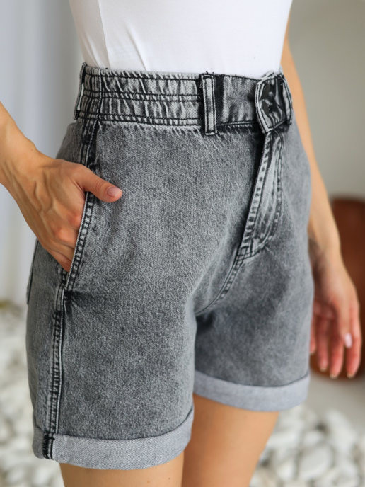 Джинсовые шорты представлены в разной цветовой гамме. Шорты женские с высокой посадкой на резинке и с отворотом, новый вид прорезных карманов которые расположены на боковой части бедра.
