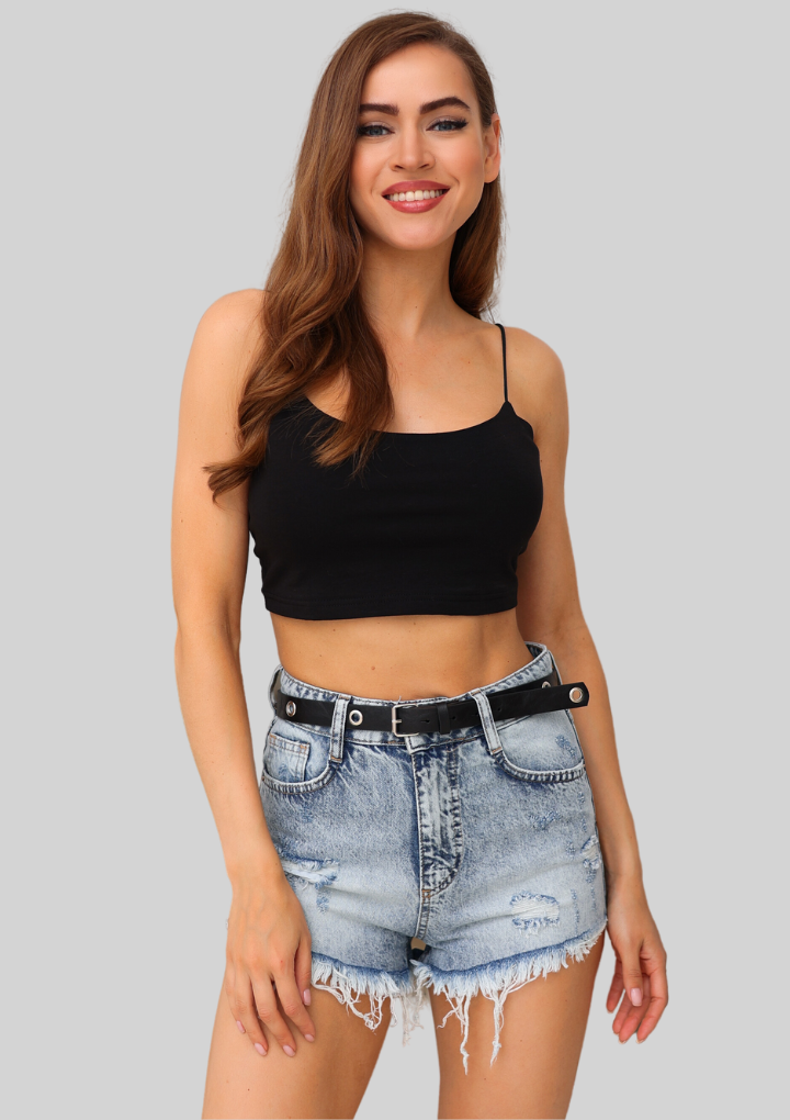 Удобные шорты с высокой посадкой изготовлены из качественной мягкой хлопковой джинсовой ткани. Короткие женские шорты, декорированы потертостями и бахромой.