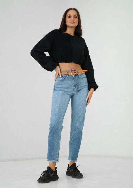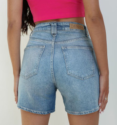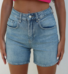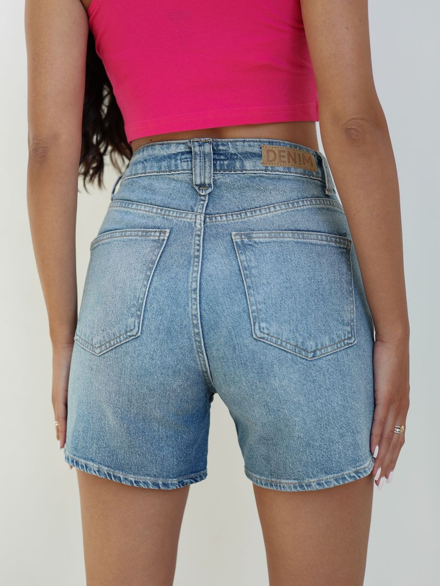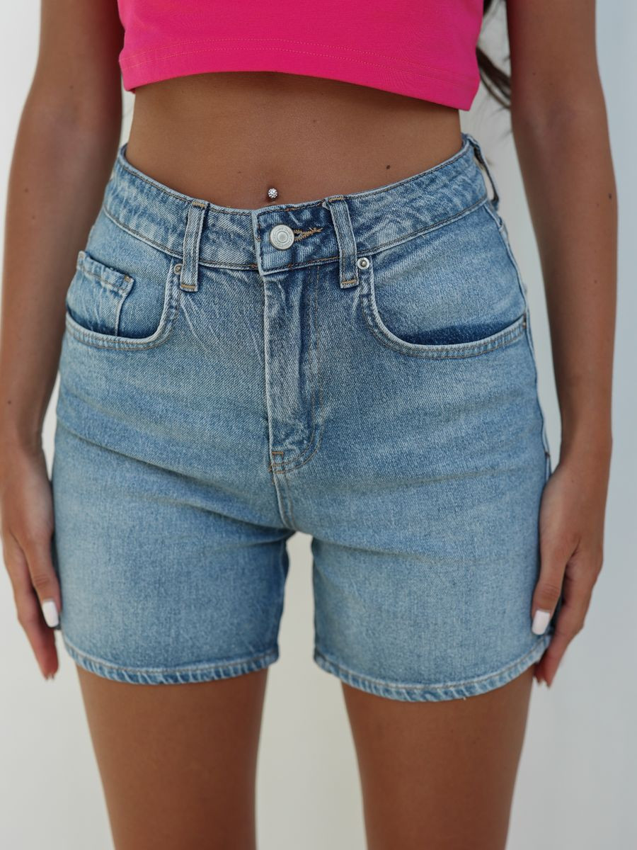 Шорты выполнены из качественного денима , хорошо пропускают воздух и не натирают кожу. Джинсовые шорты с высокой талией , имеют 4 кармана , застегиваются на молнию и пуговицу.