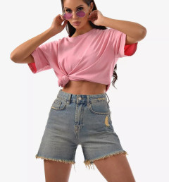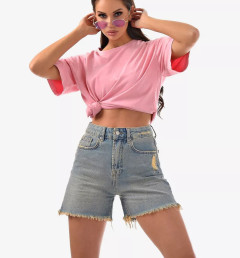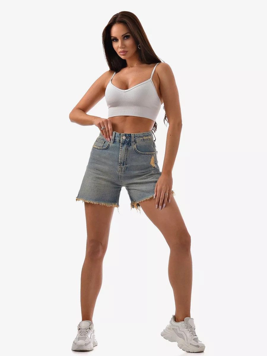 Приталенные женские шорты с бахромой идеально подойдут для жарких дней. Они выполнены из качественного денима, который хорошо пропускает воздух и не натирает кожу. Шорты с высокой талией имеют четыре кармана, застегиваются на молнию и пуговицу. Они прекрасно сочетаются с топами, футболками, рубашками и майками.