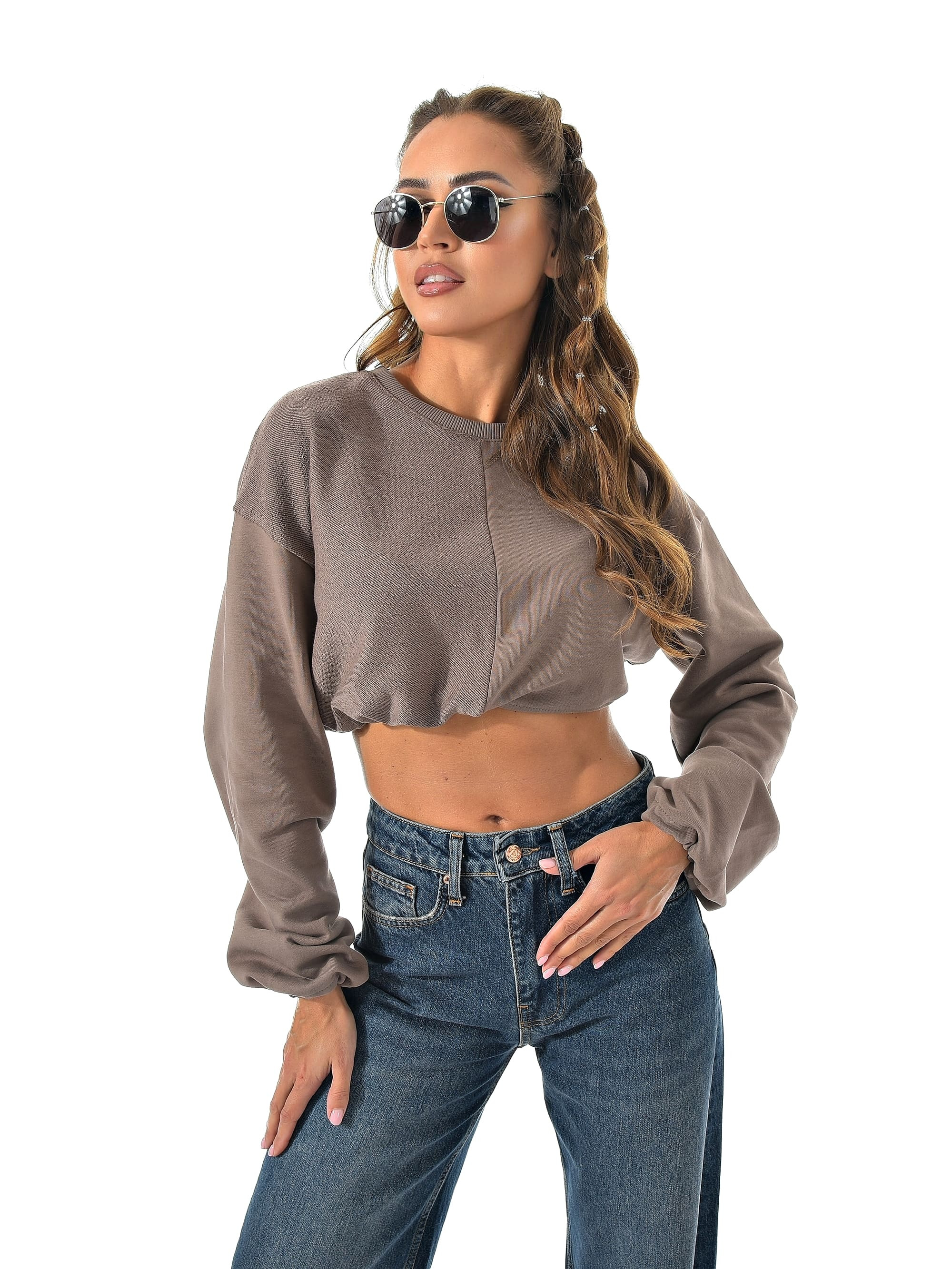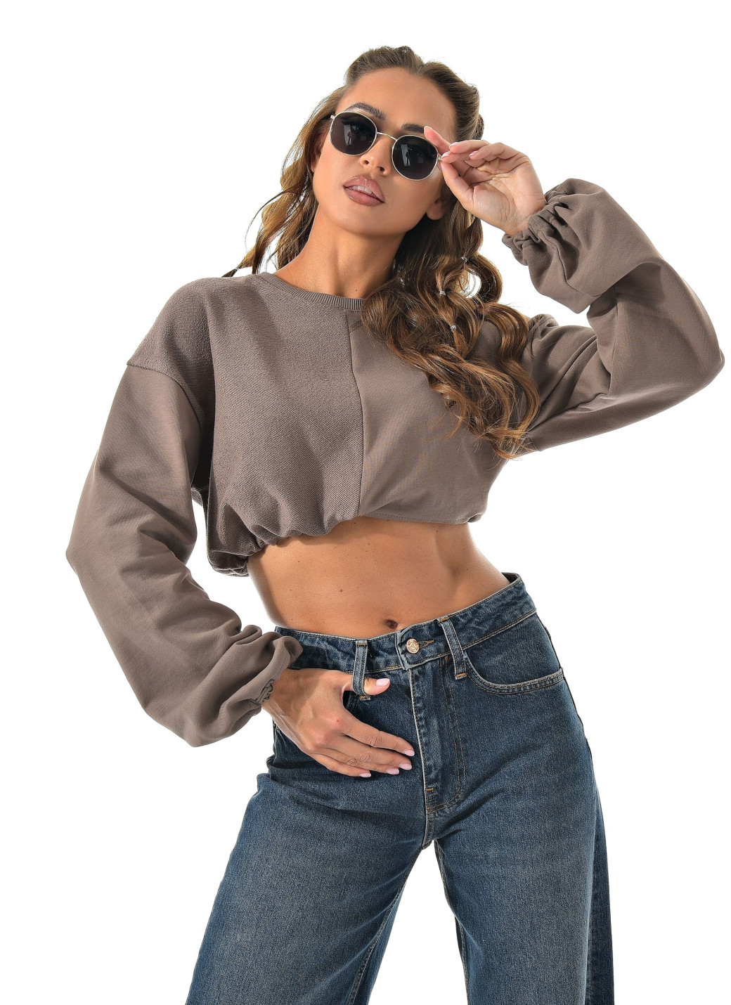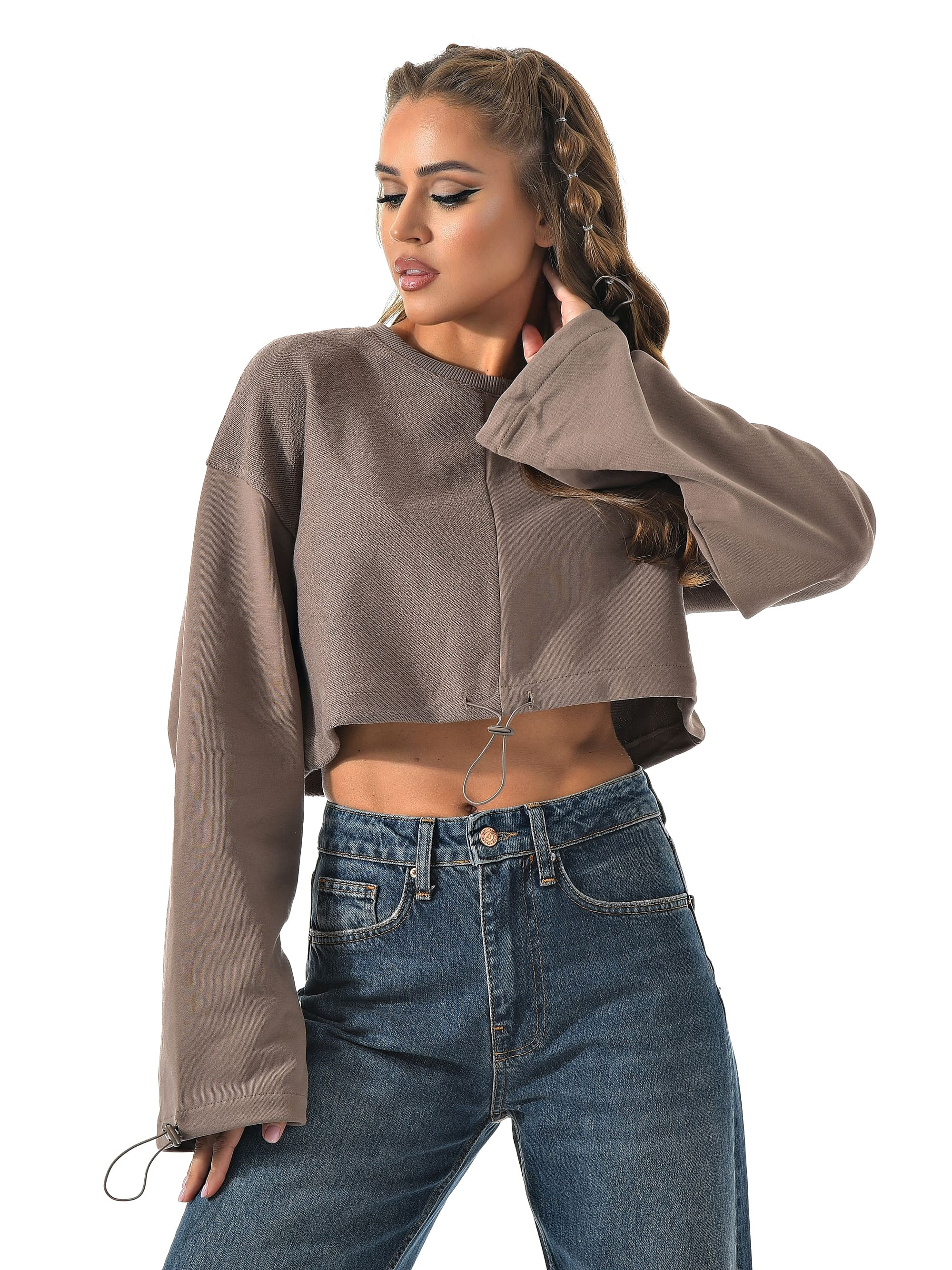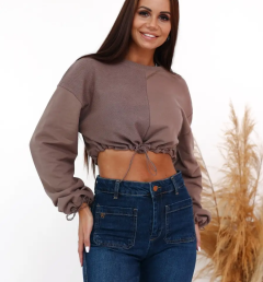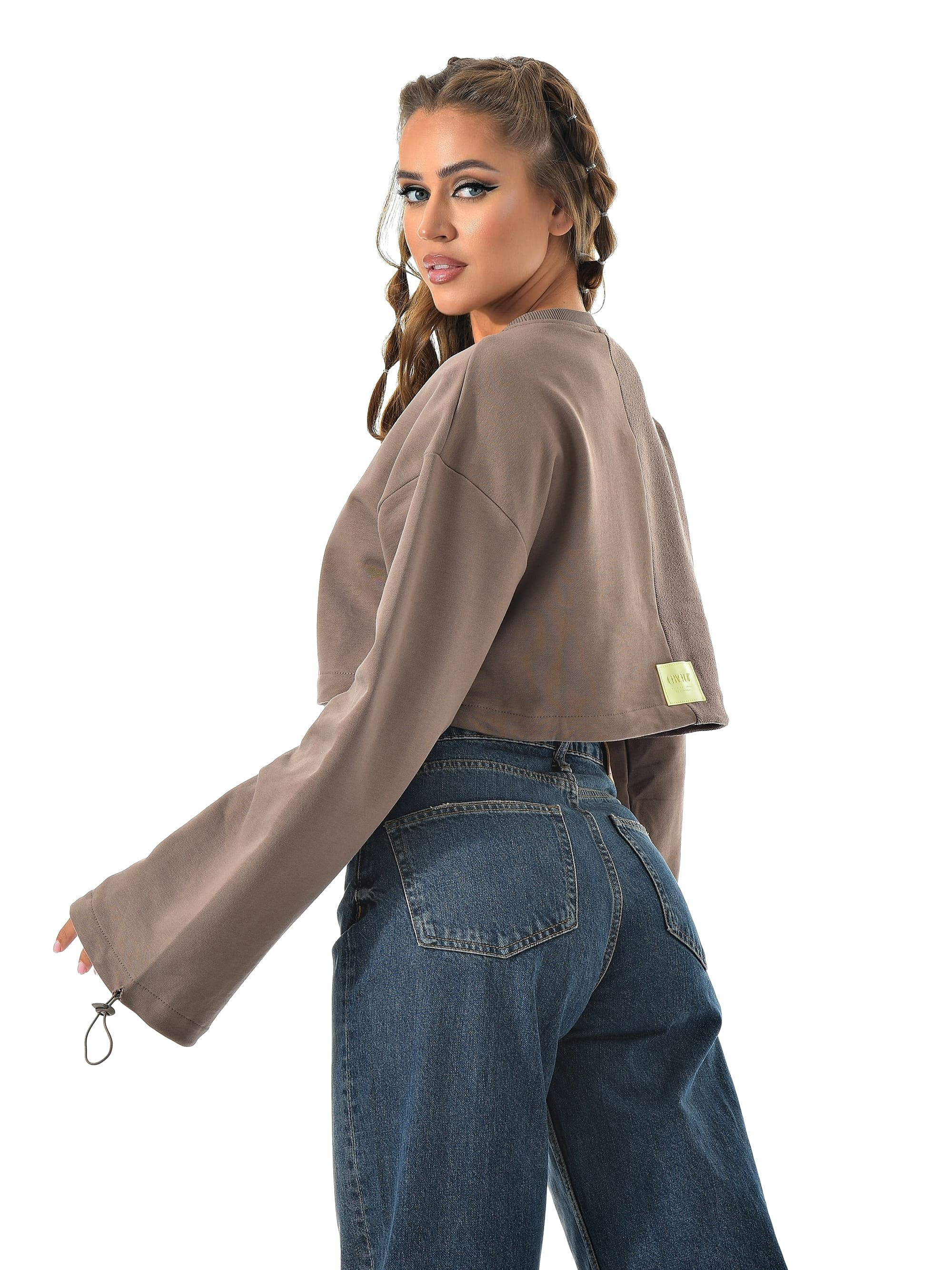 Укороченный свитшот бренда CRACPOT это образец женской молодежной моды удобный стильный. По низу проходит шнурок для смены образов можно затянуть или носить свободно .