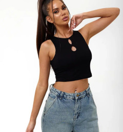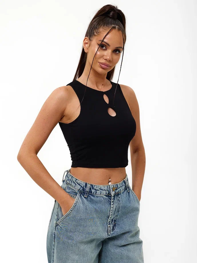 Кроп топ Berrak на широких бретелях, с 2 каплевидными вырезами.