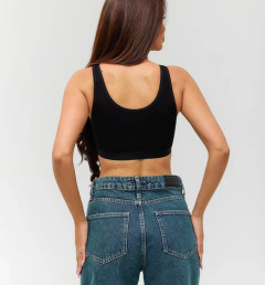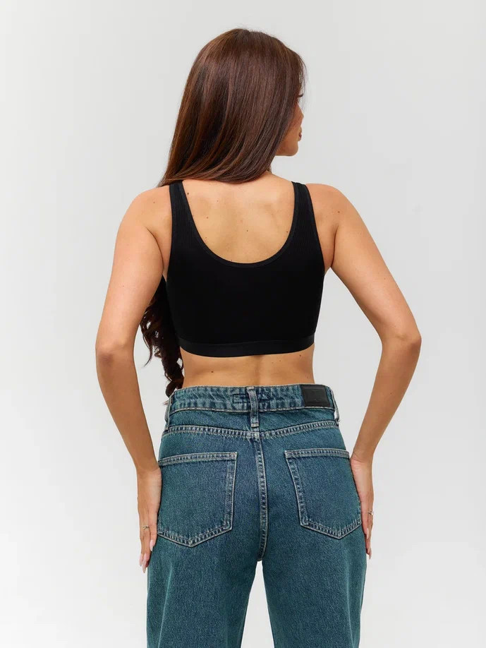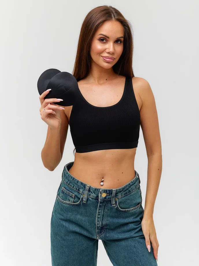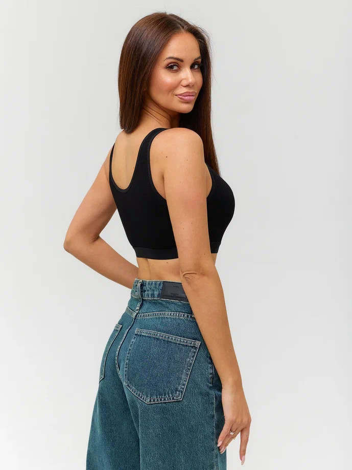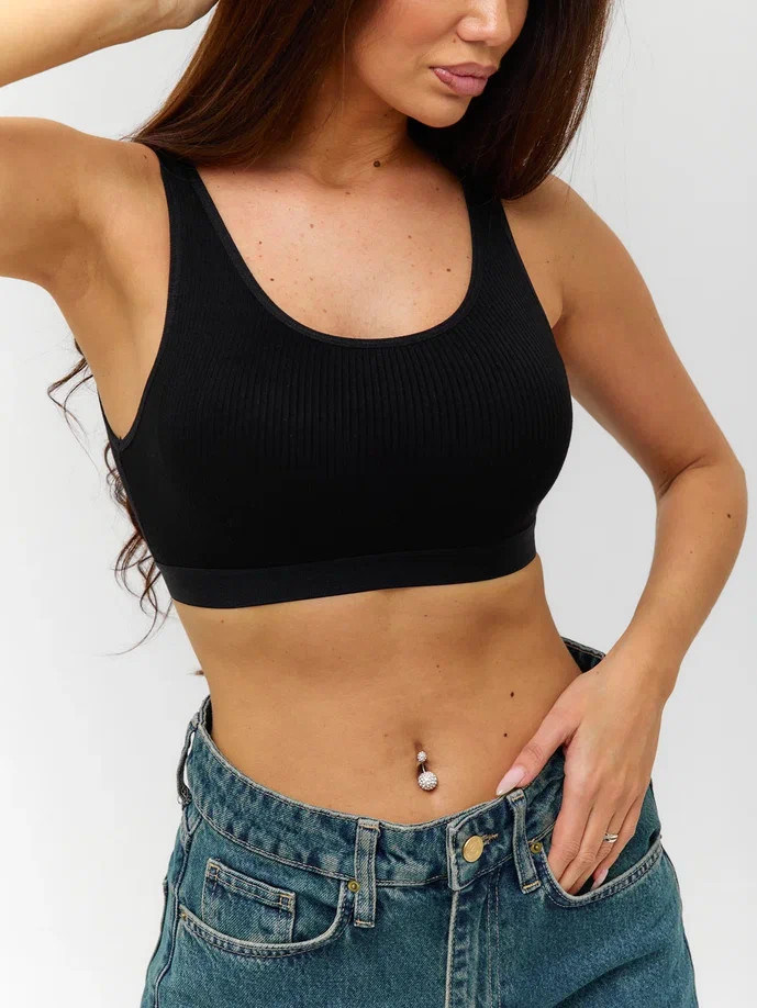 Спортивный топ Berrak черного цвета на широких бретелях, с пушап вставками. Ткань в рубчик.